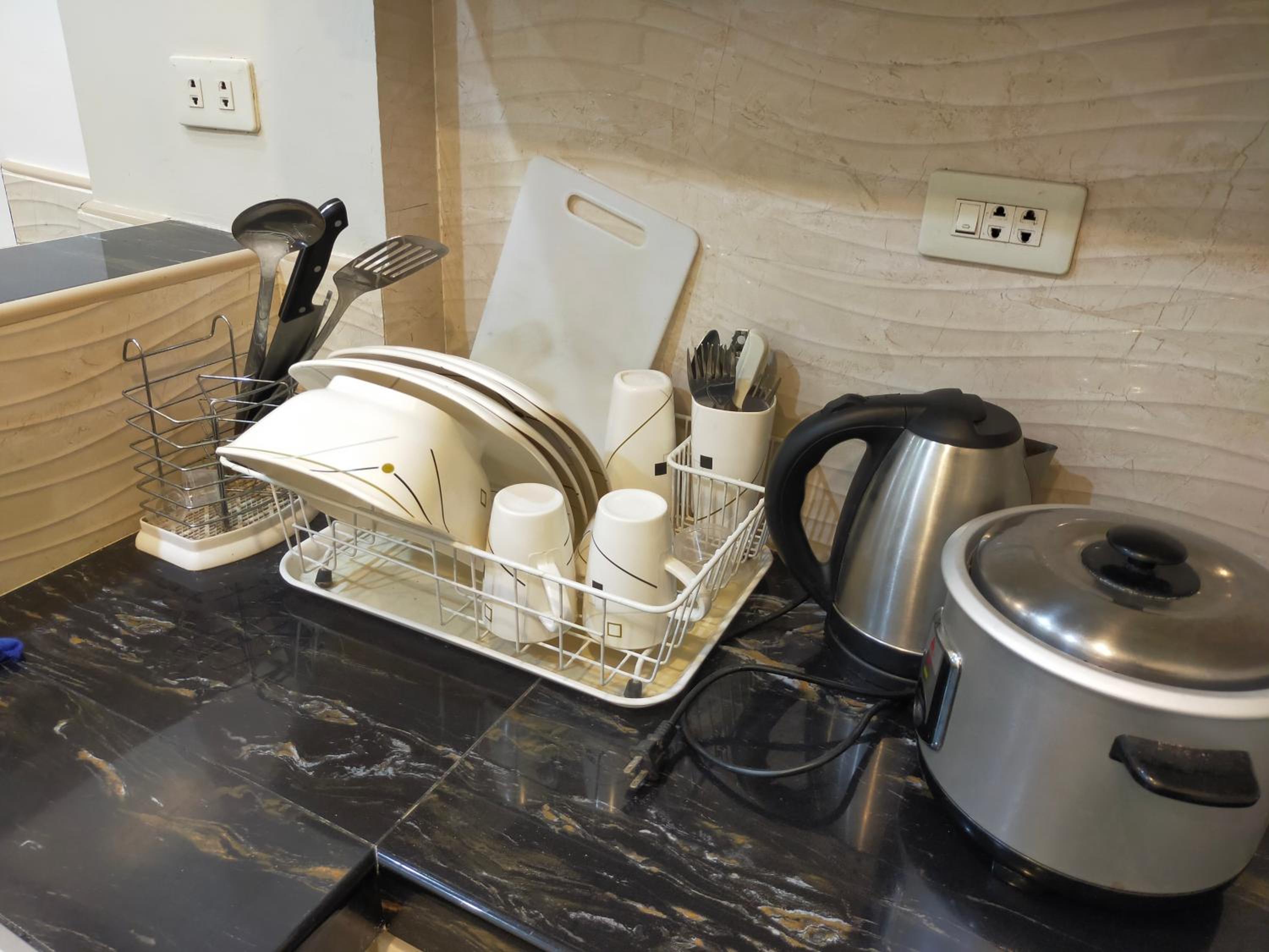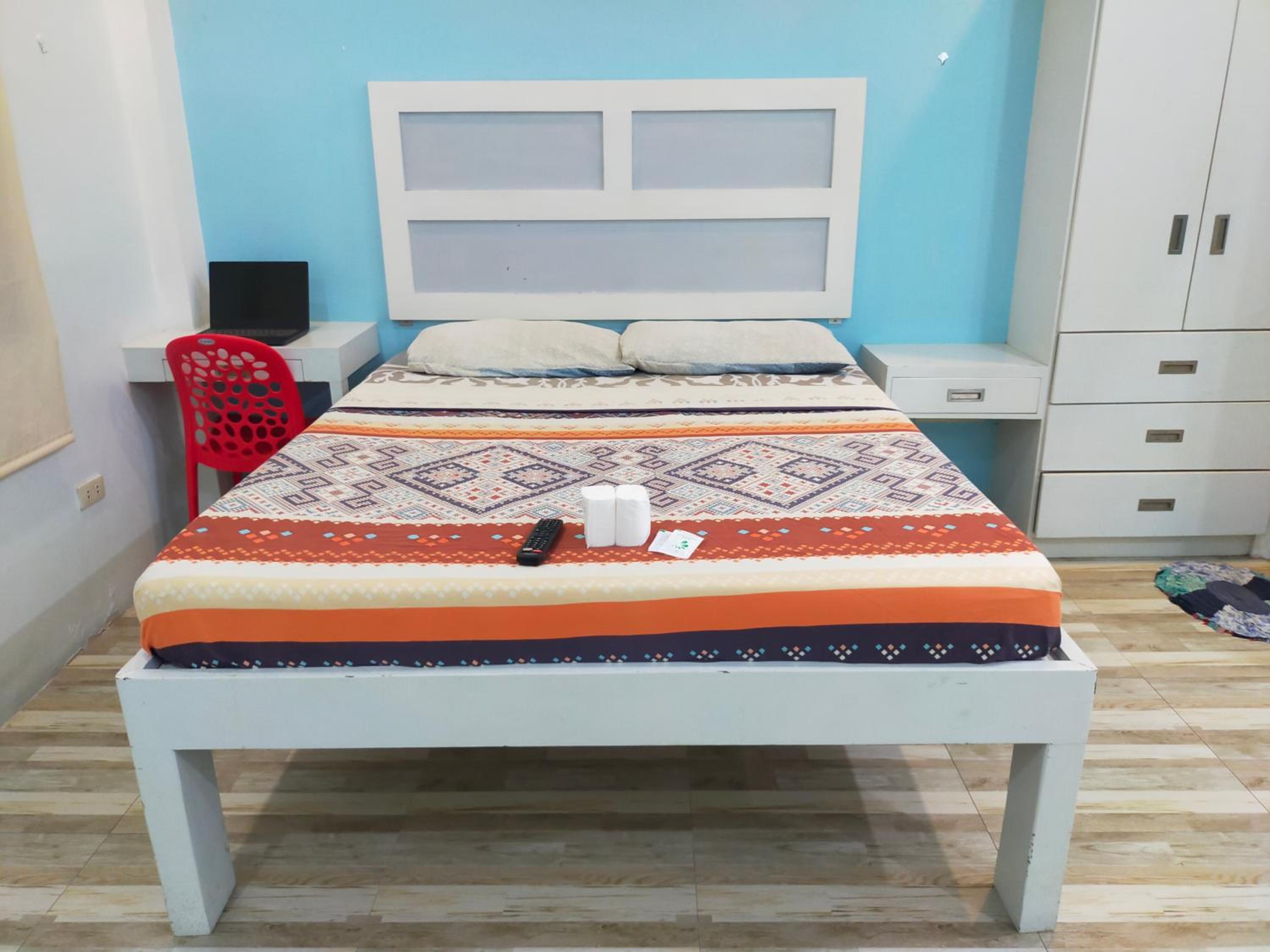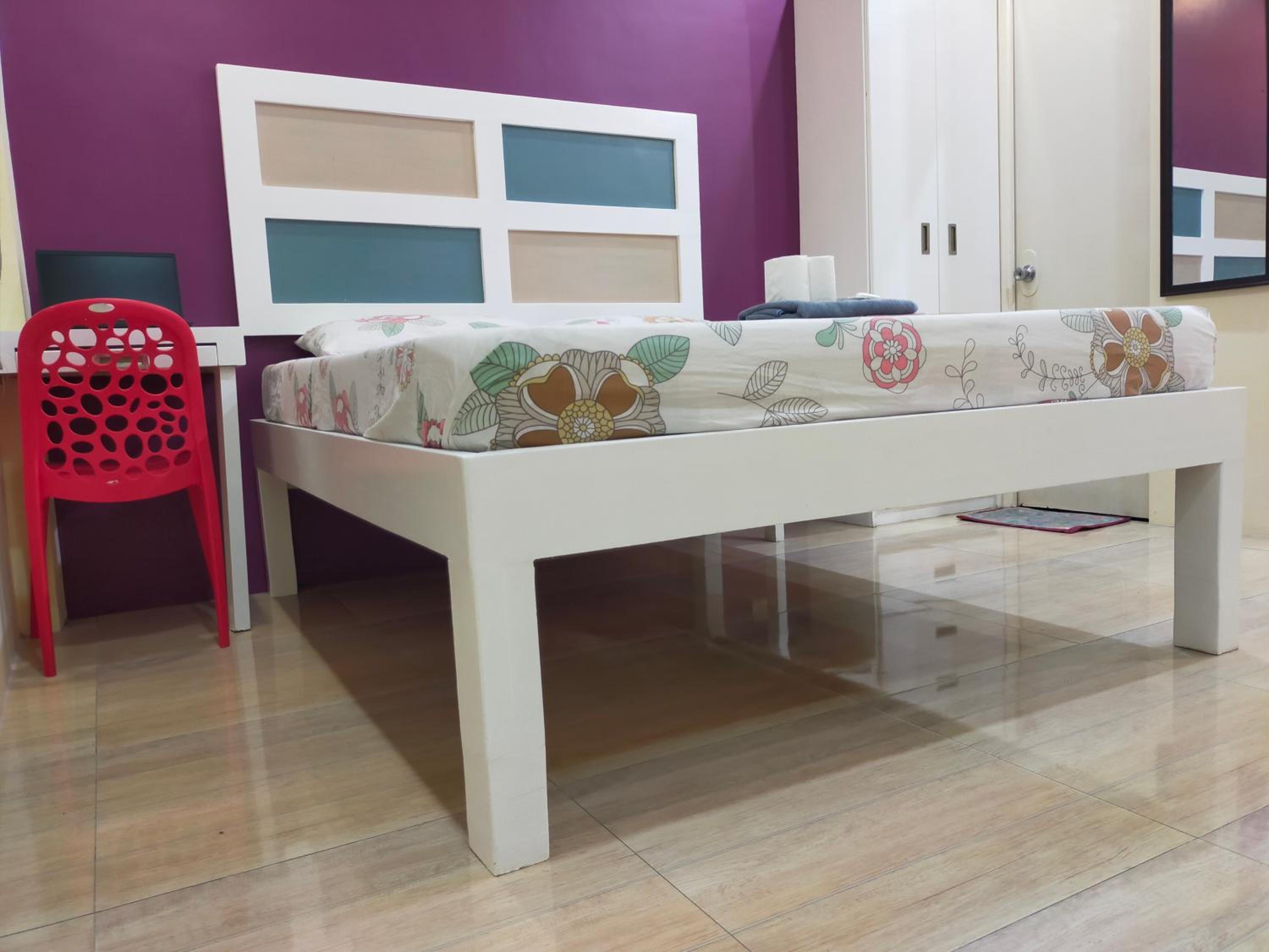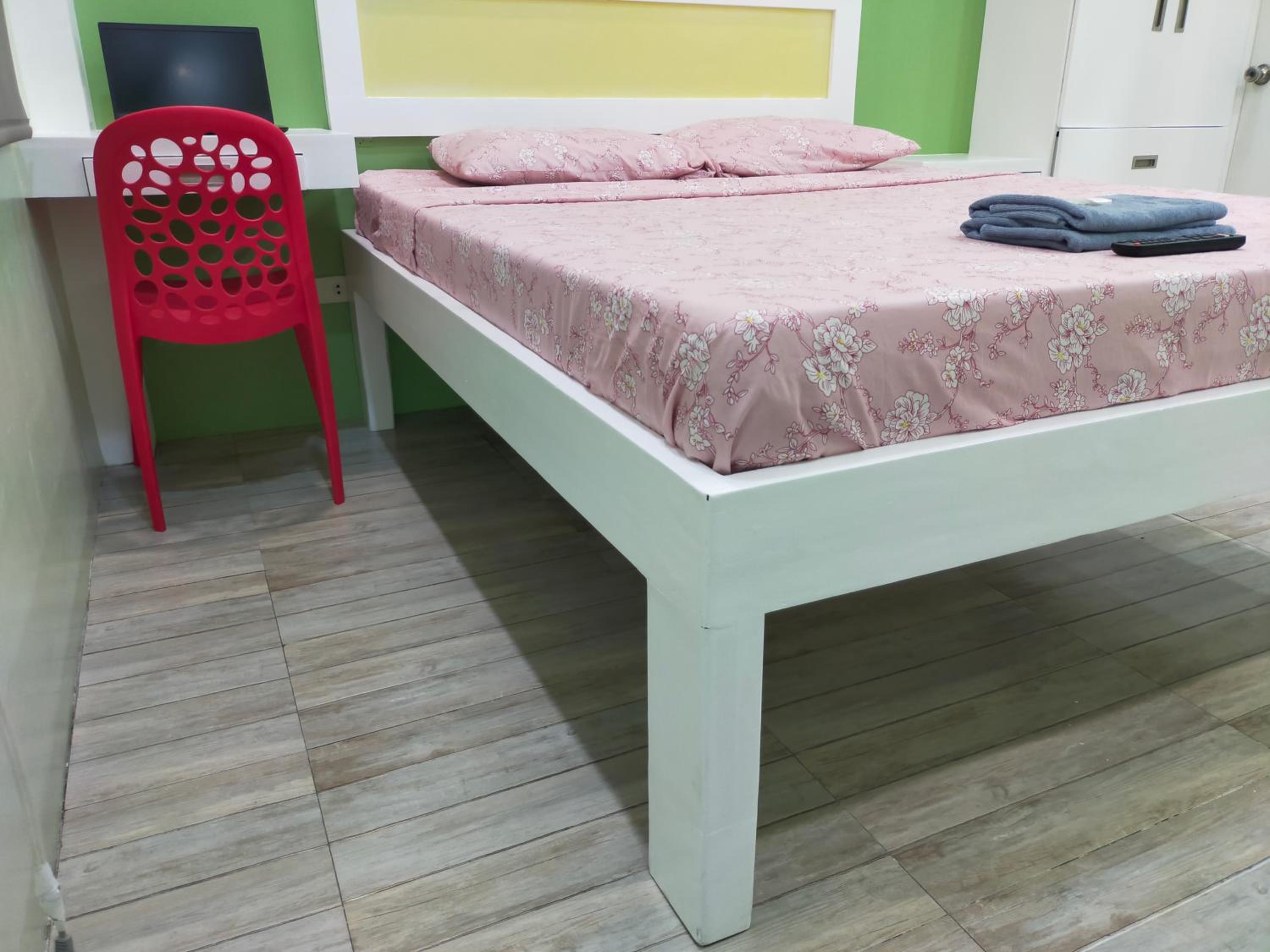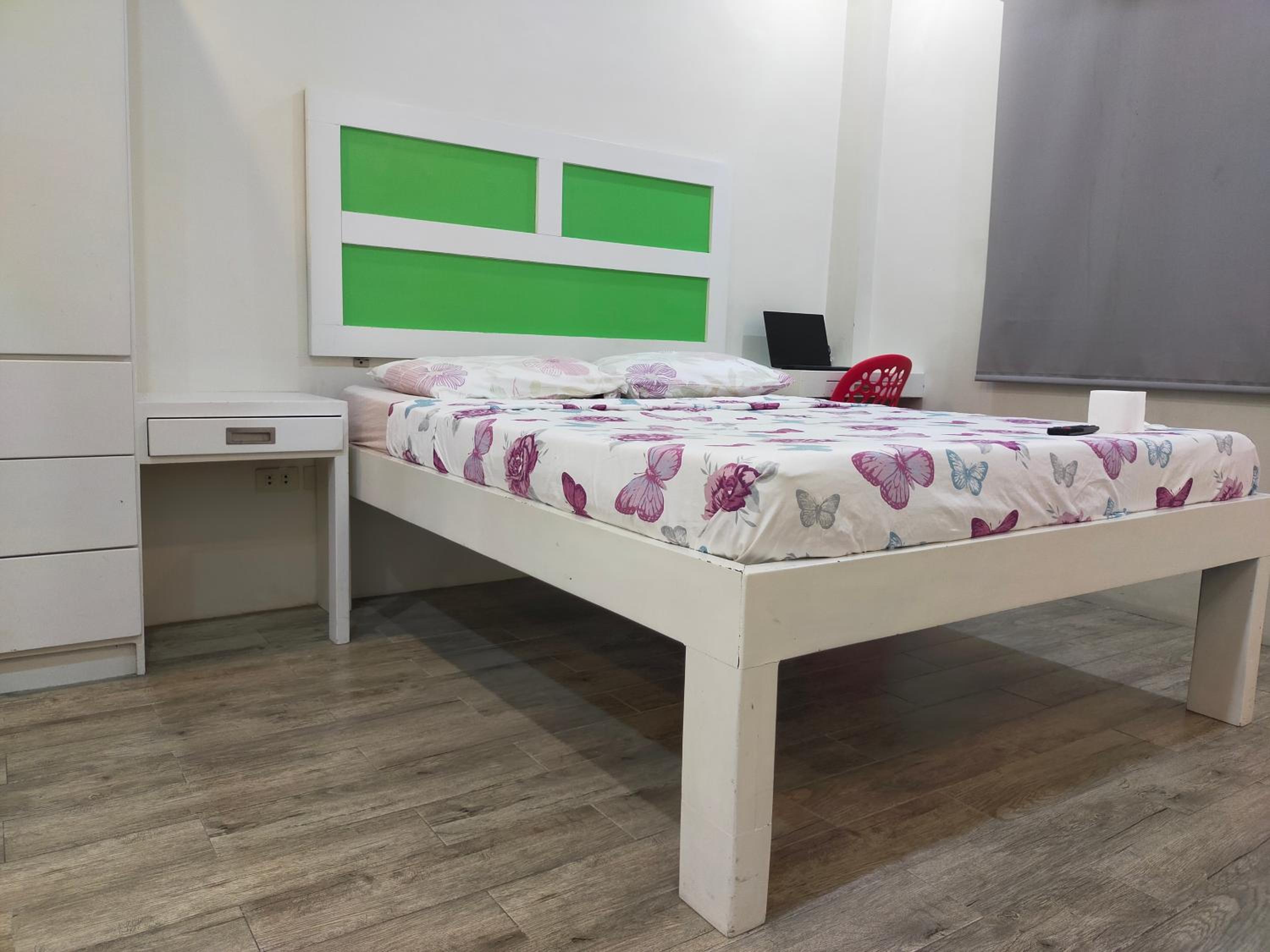 The washer inside my unit was leaking water heavily from a defective tap on the wall, making it unusable since the washer is about a meter from the bed, my baggage on the floor would be all ruined if I left the water run unattended. The room is spacious but they should equip it with a regular reading desk for a laptop. There are only two small bedside stands. Wifi is slow at 72Mbps. Shower water is also running slowly at low pressure probably due to the cheap compact type water heater. The room is not well maintained or prepared for new guests, like there're no trash bags in place for the trash bins in the kitchen or next to the toilet. Bedstands or cabinets appear to be stained, old. One cabinet door is missing a handle. The room needs deep cleaning and some repair.