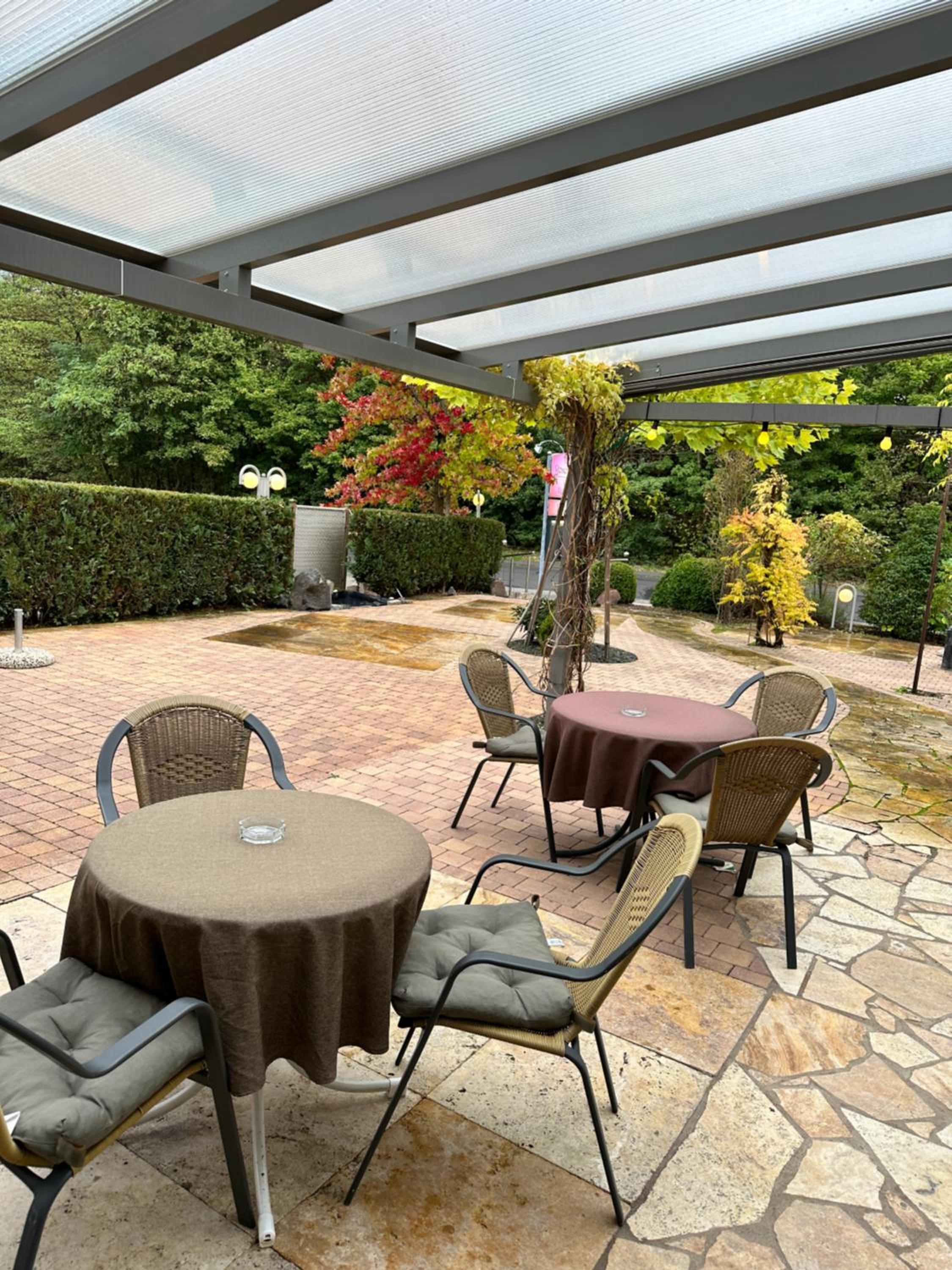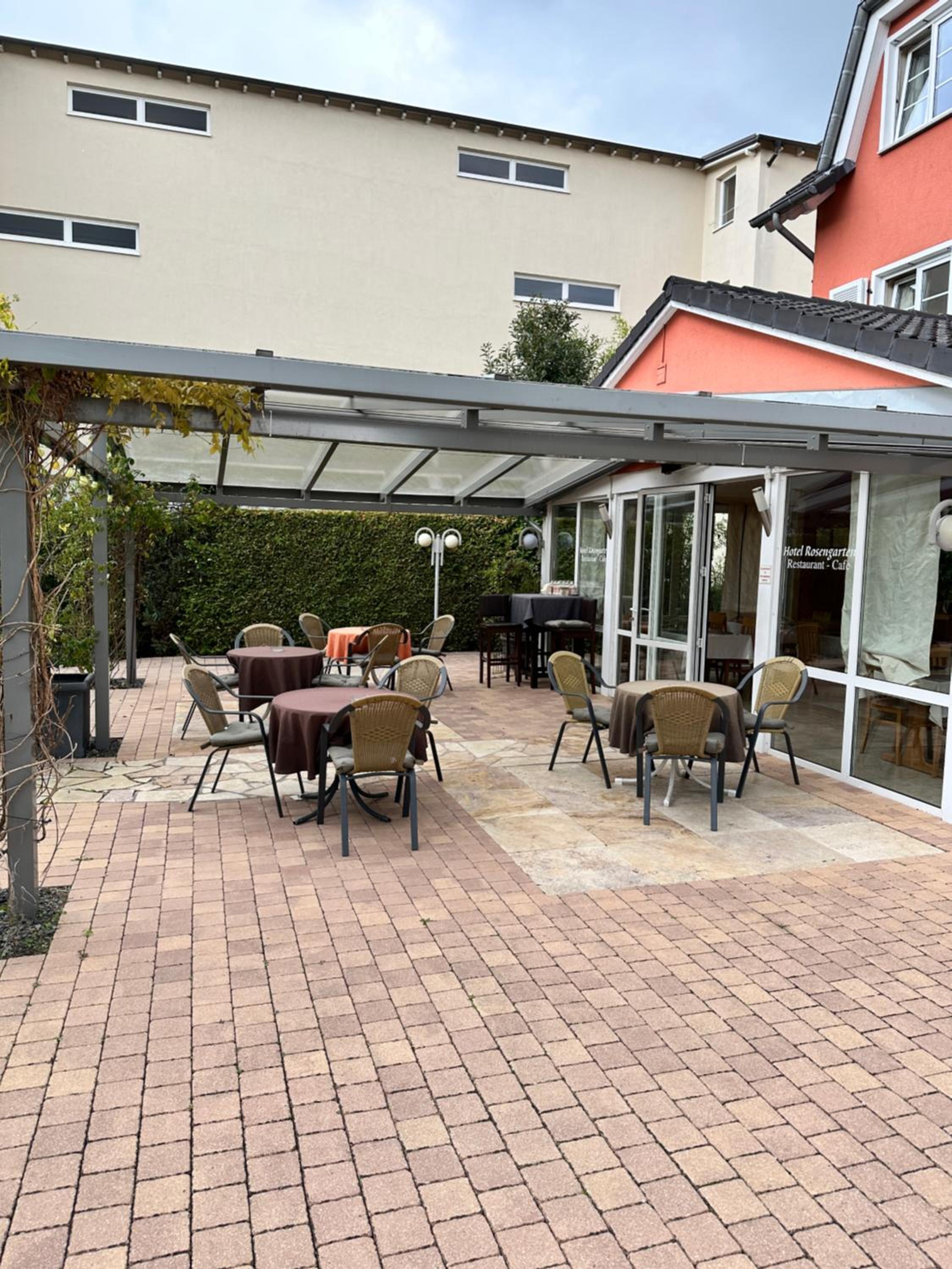 Das Hotel hat eine sehr schöne Terrasse, teils überdacht.