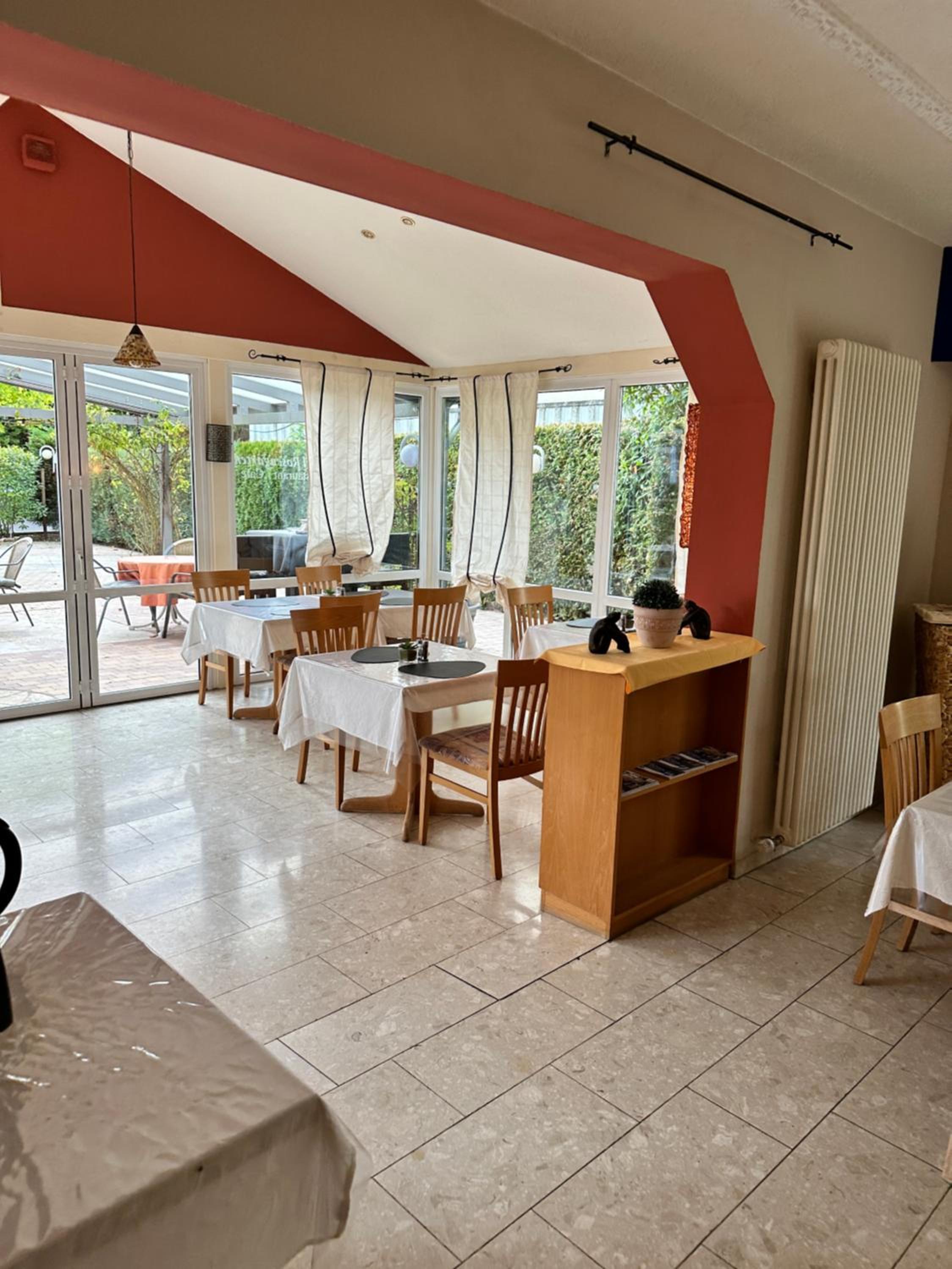 Agréable terrasse, restaurant, bon petit déjeuner