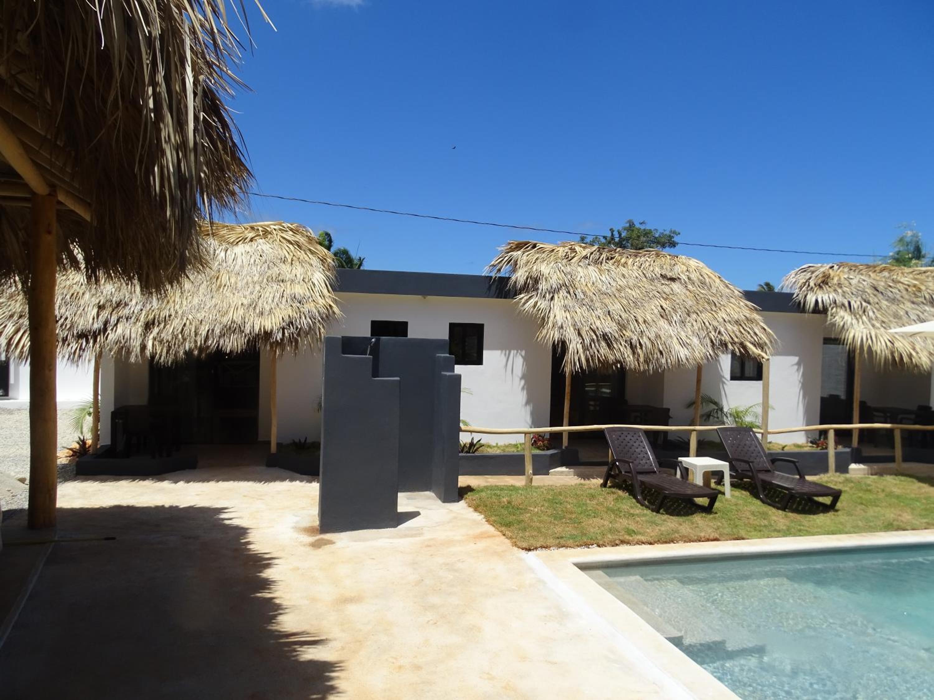 The hotel's location is off the main road and down a small road. The area is near restaurants and within walking distance of Playa Las Galeras. The hotel is pretty new and has about 5-7 bungalows. We were the only guests since it was the down season. The owners were able to accommodate early check-in, but we ended up arriving at check-in time and appreciated the flexibility. We only stayed one night and didn't use the pool. The bungalow is one room with a bathroom. There is no door in the bathroom only a curtain. The shower doesn't have a door or curtain so the water got all over the rest of the bathroom floor. The room has both an AC and fan.