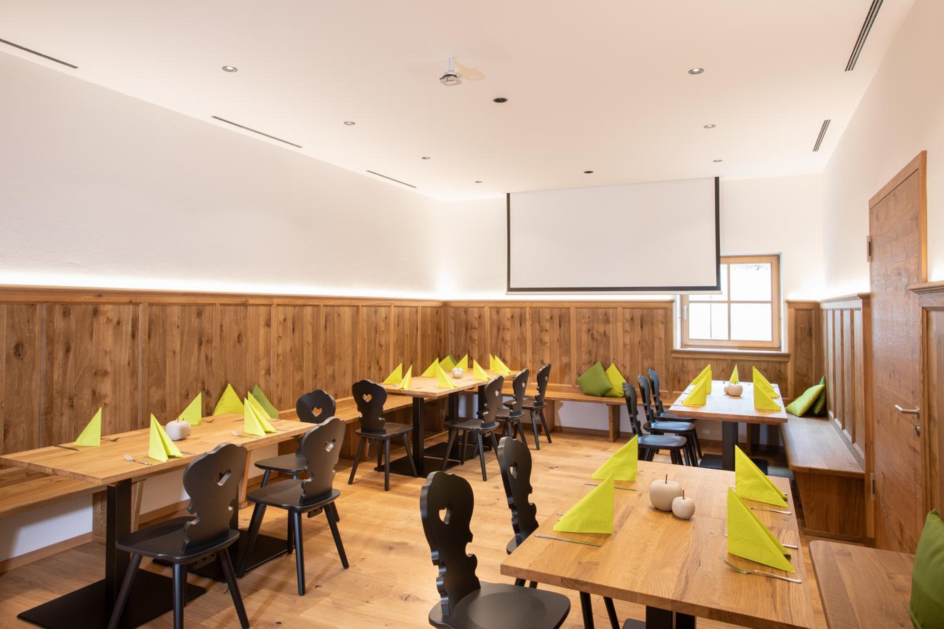 Das Zimmer und Restaurant.