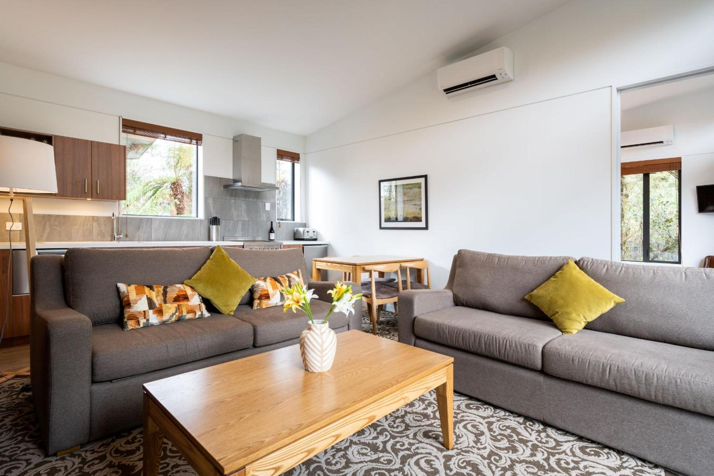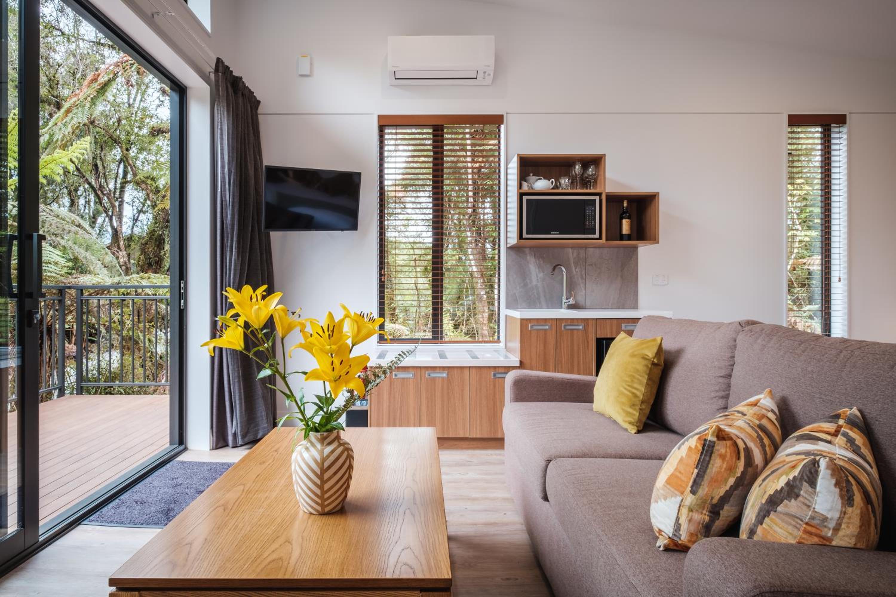 Experience the ultimate comfort at Rainforest Deluxe in Franz Josef. Each room features a private balcony, air conditioning, and a flat-screen TV for your relaxation and entertainment.