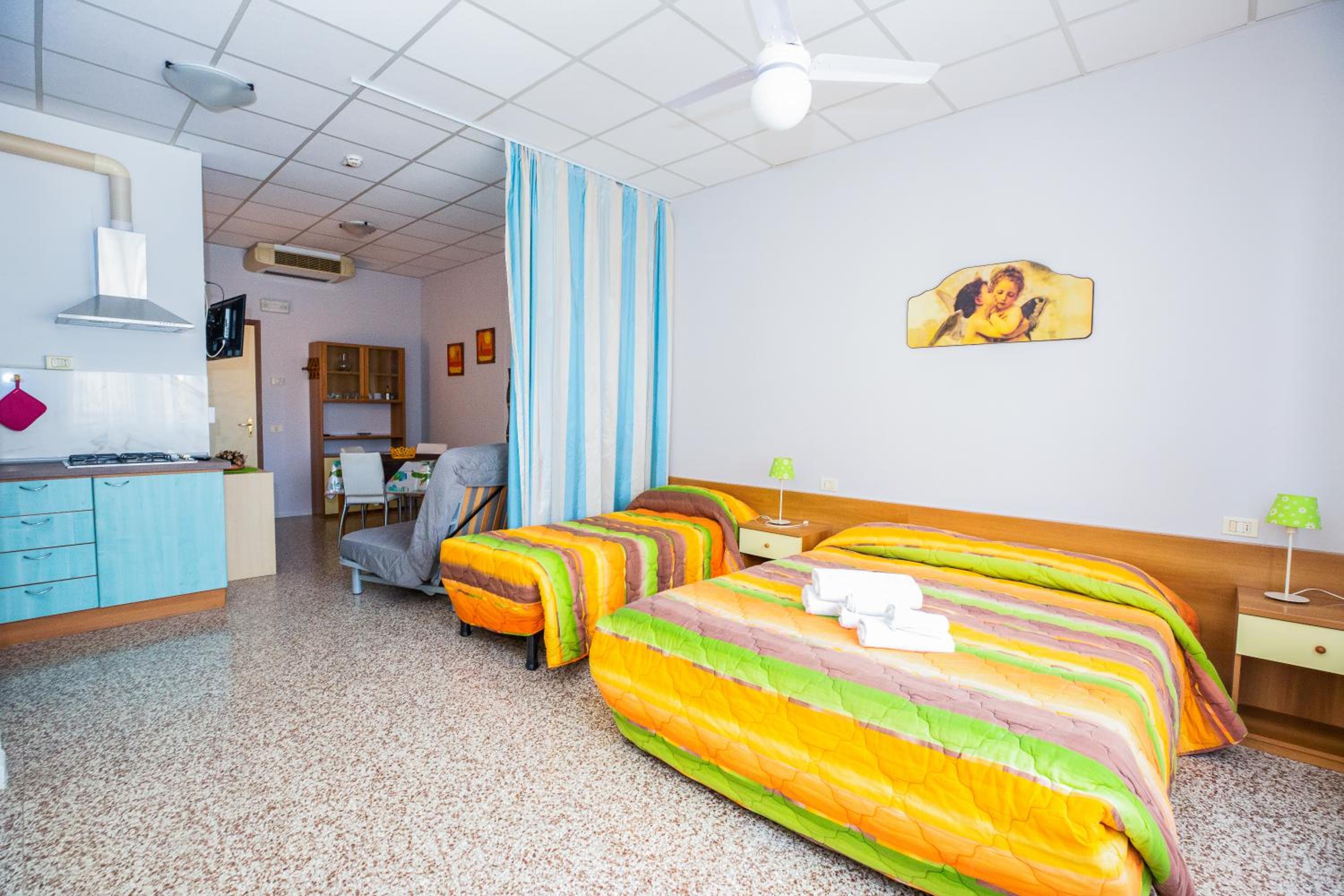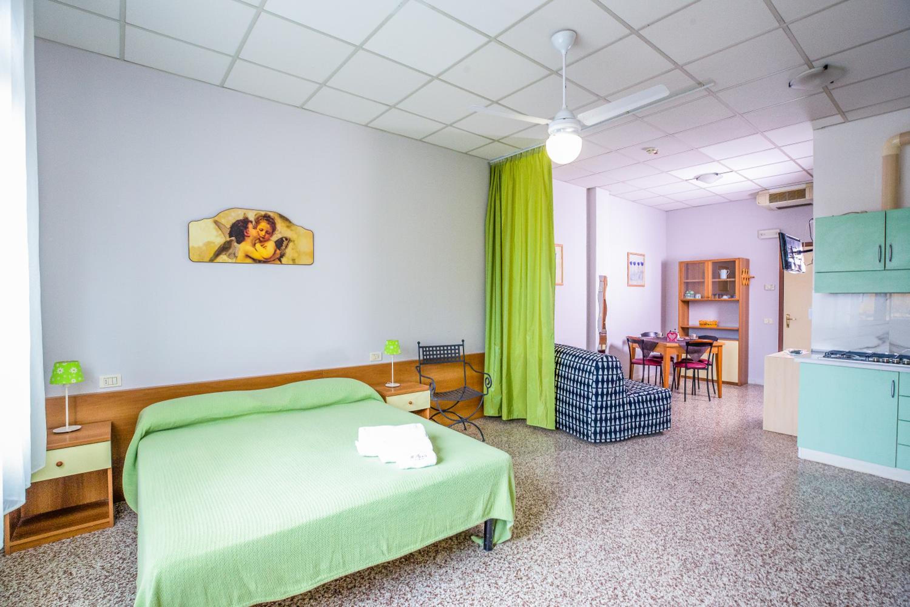 Classico standard della riviera romagnola: appartamenti un po’ datati ma ristrutturati, perfetti per trascorrere qualche notte al mare senza spendere una fortuna. La camera era proprio come me l’aspettavo. La reception è attiva di giorno, mentre di notte si rientra comodamente con le chiavi del portone. L’host ci ha accolti direttamente davanti alla porta ed è stato molto disponibile. Comodissimo anche il parcheggio privato gratuito.