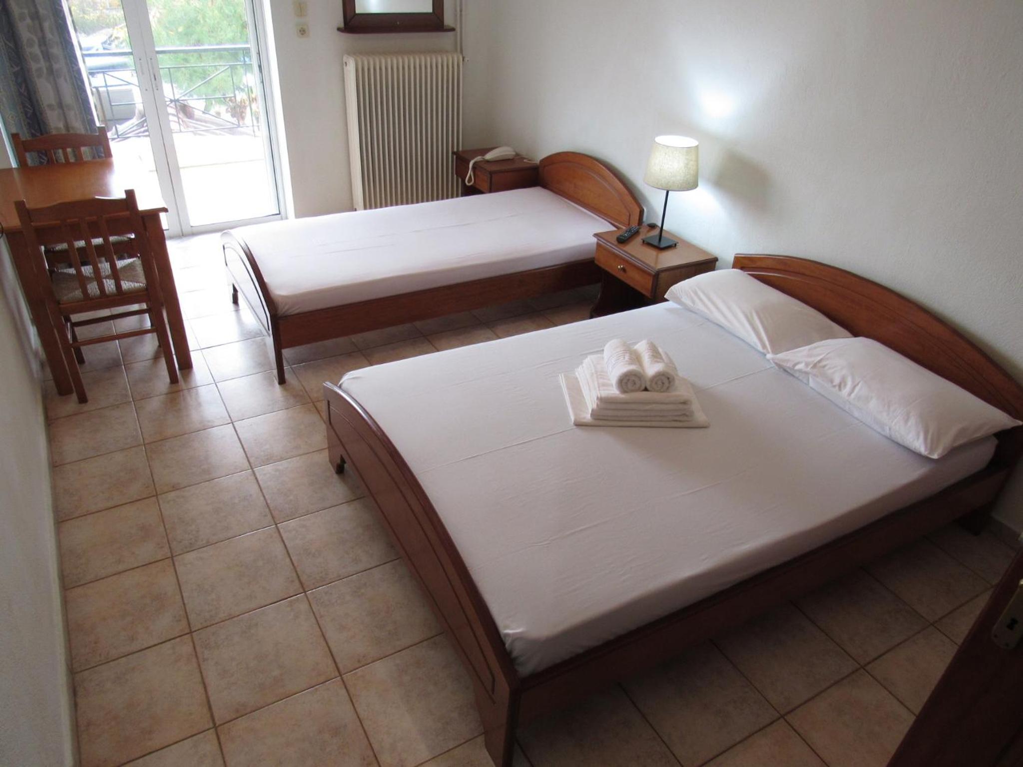 Pokoj čistý, kuchyňka s konvicí, klima, výtah do vyšších pater, terasa, parkování před hotelem, bez snídaně, možnost koupě pizzy, pití atd.