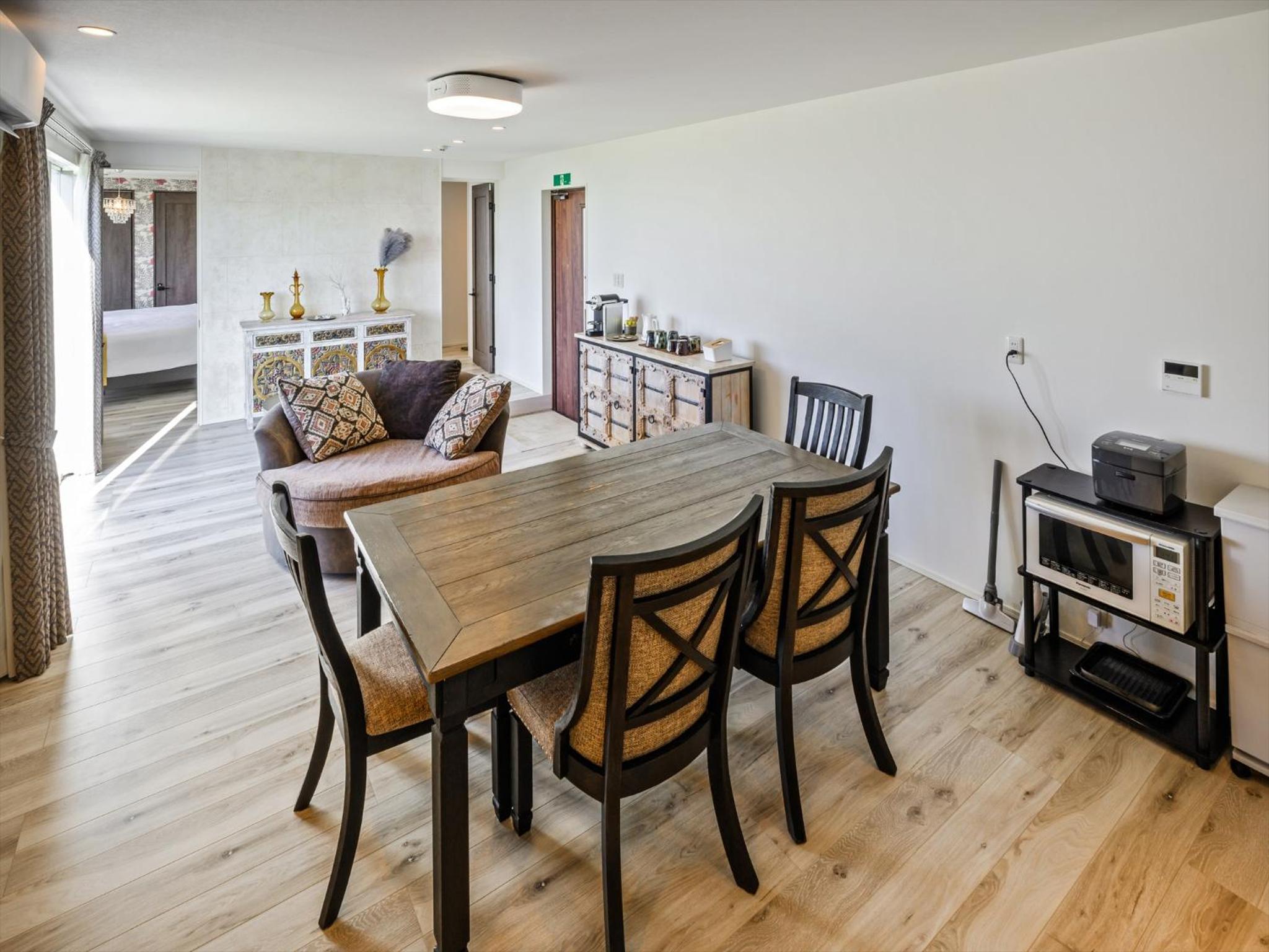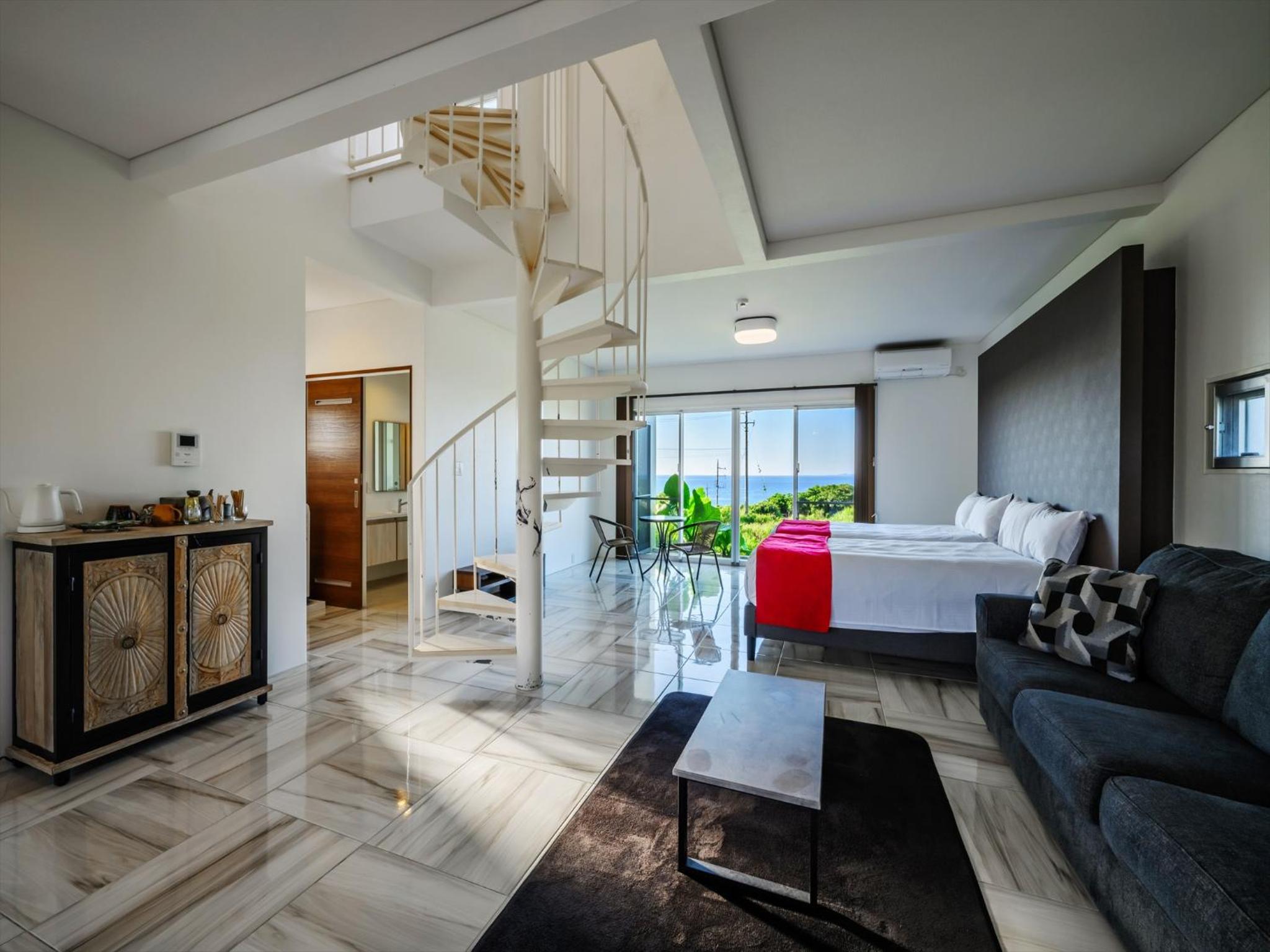 We stayed in the spacious, well-decorated (both inside and outsite), clean, and full-equipped two-bedroom suite. Every room including living room has large windows with ocean view. Love the amenities they offer (Yumejin products, local natural skincare brand). Excellent location - only few mins walk to the famous Heart Rock Beach.