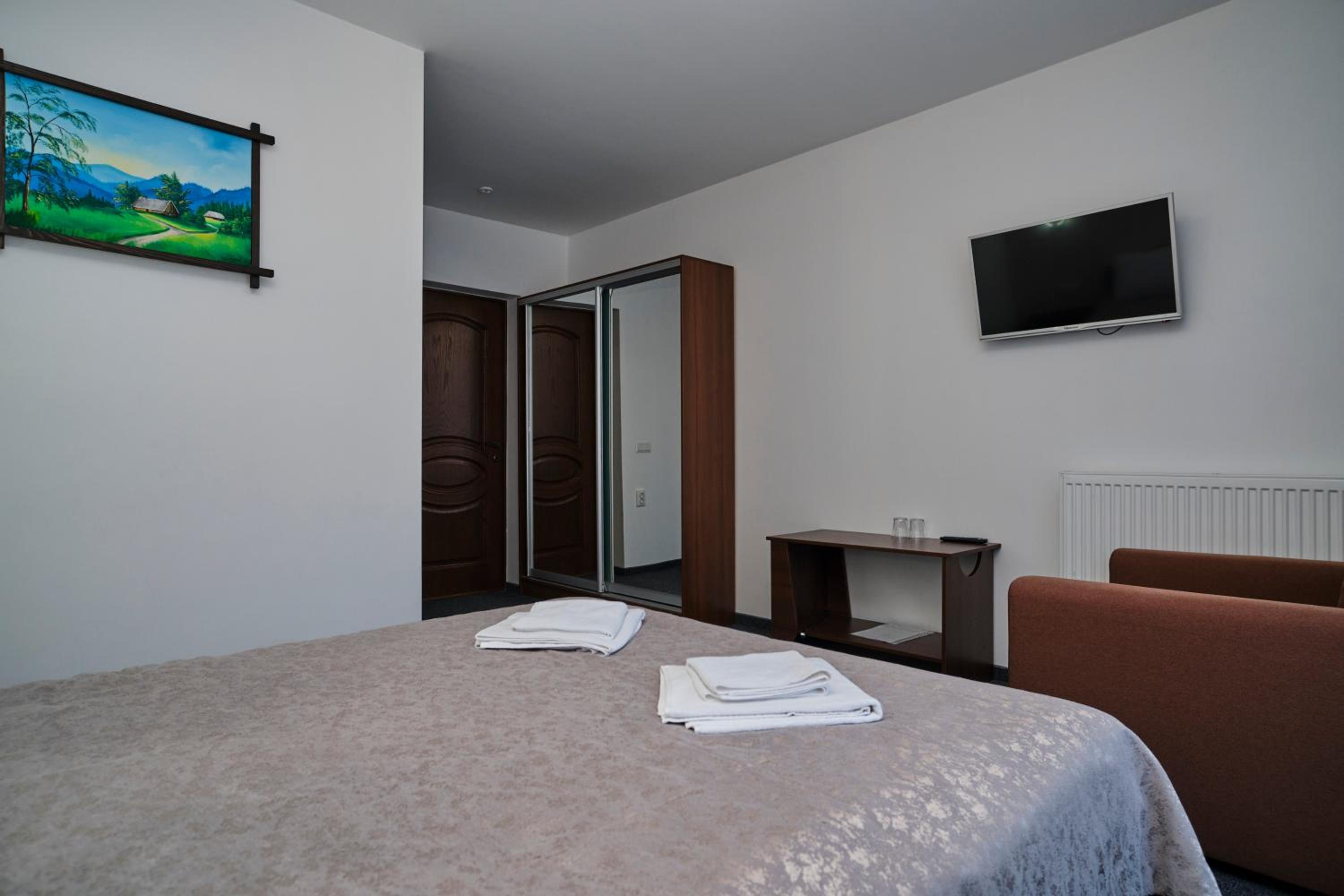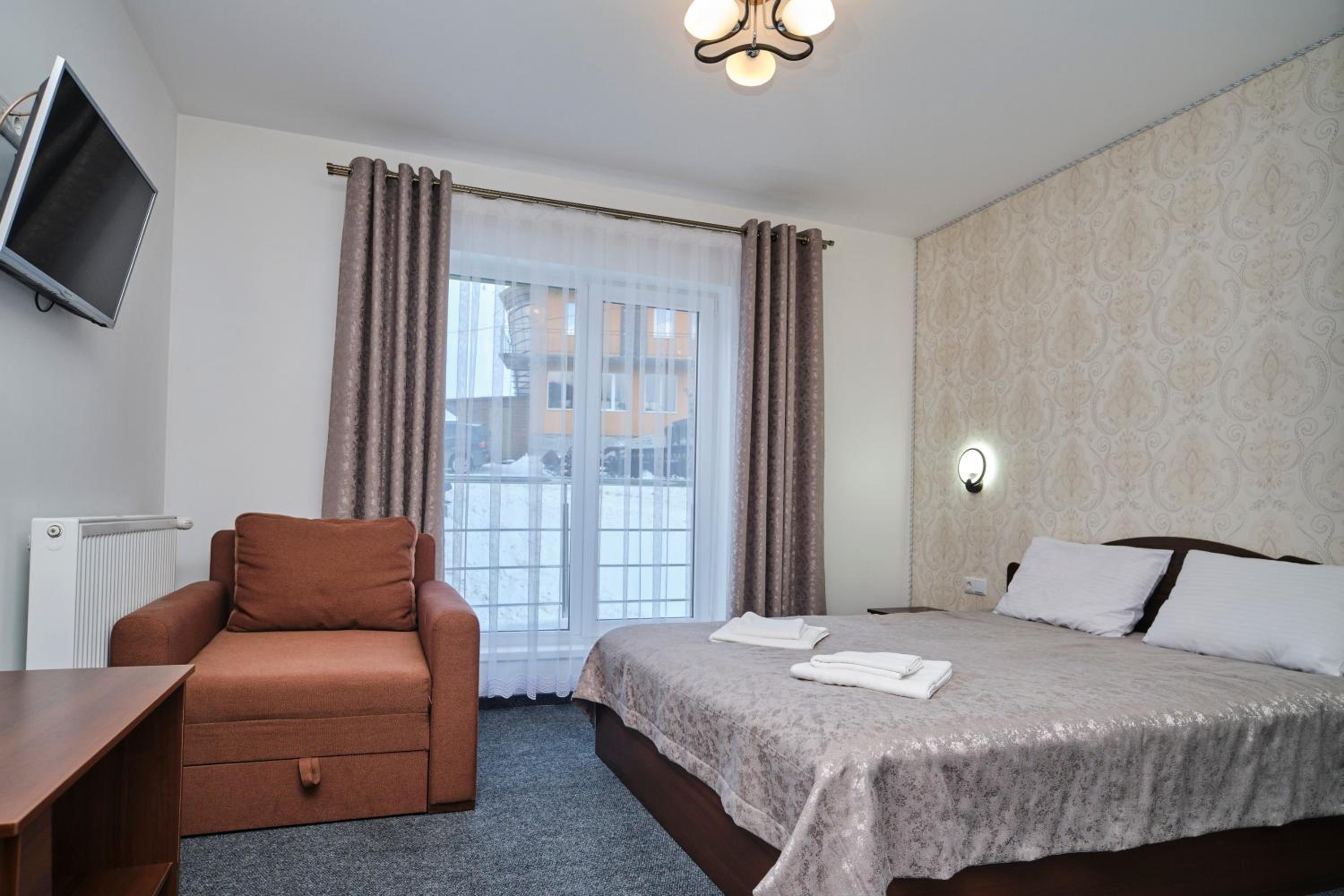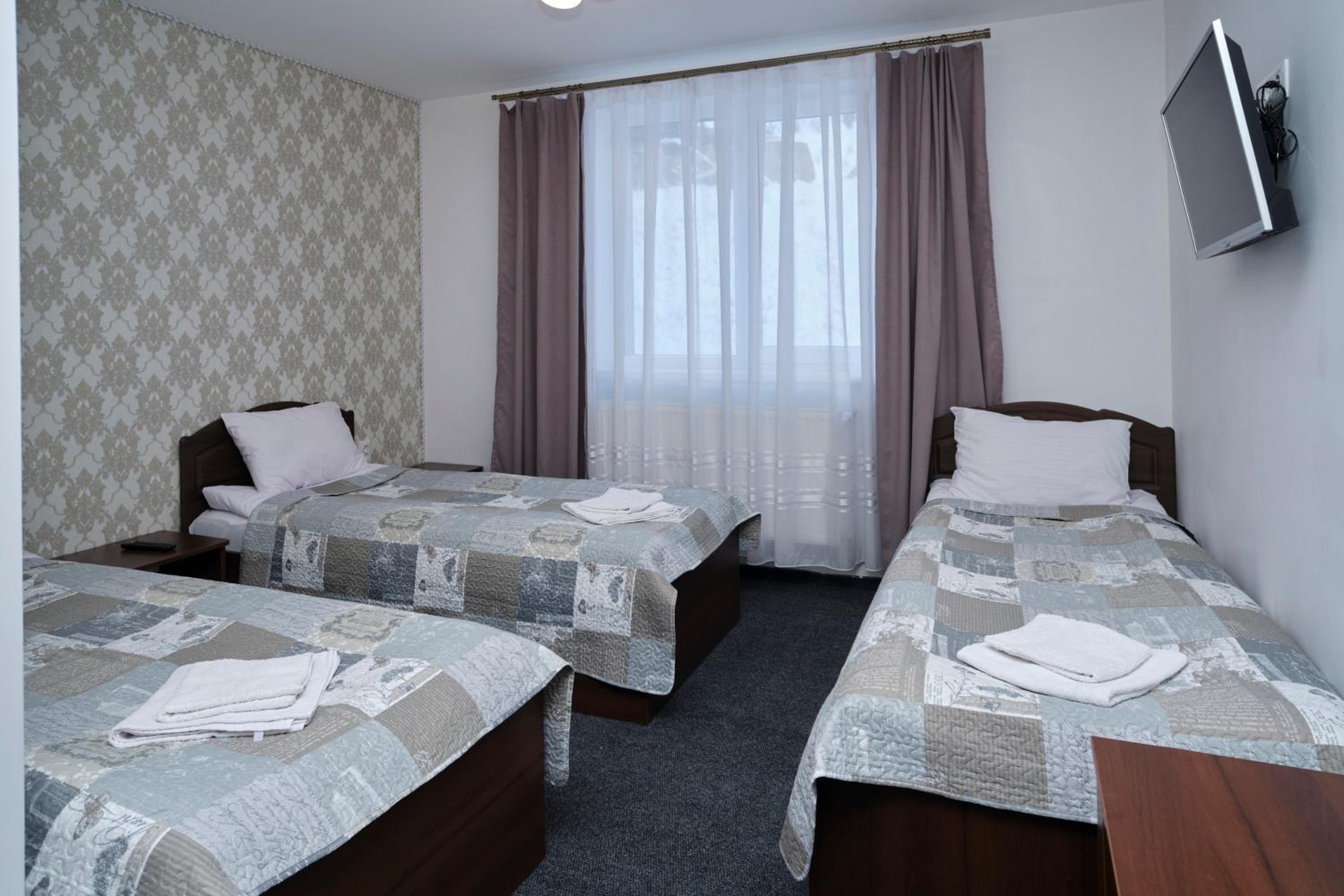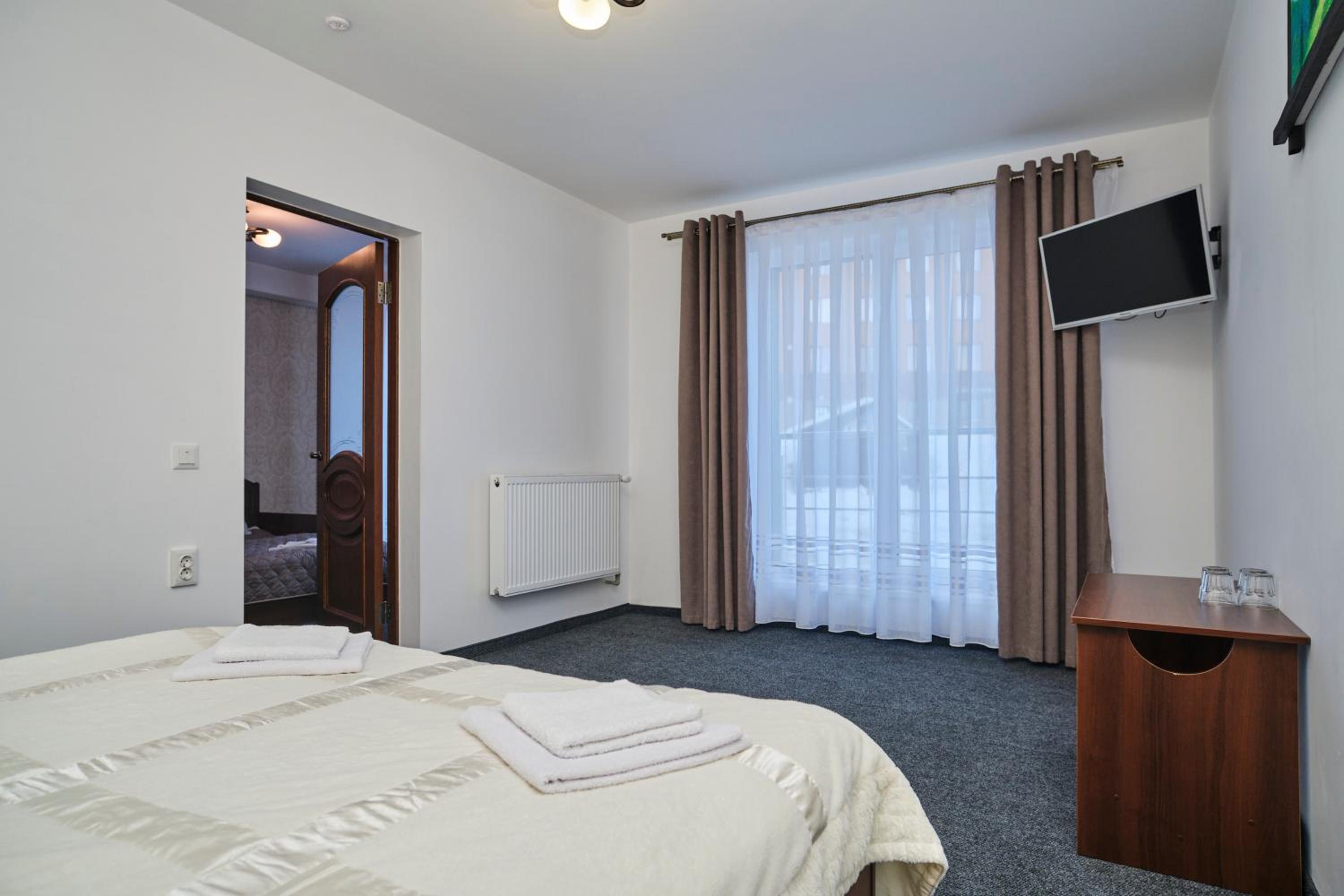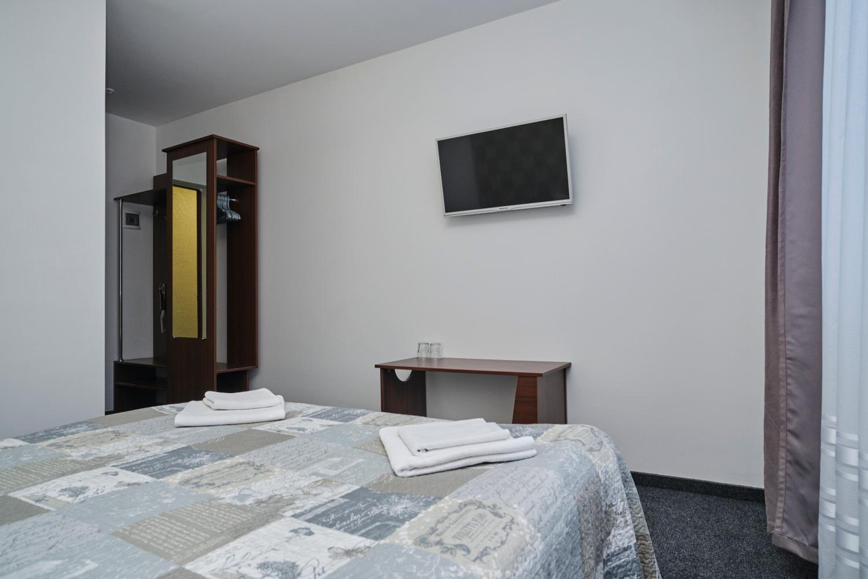 Each room at the hotel is furnished with essential amenities such as a flat-screen TV, private bathroom, and cozy bedding, ensuring a comfortable stay for guests.