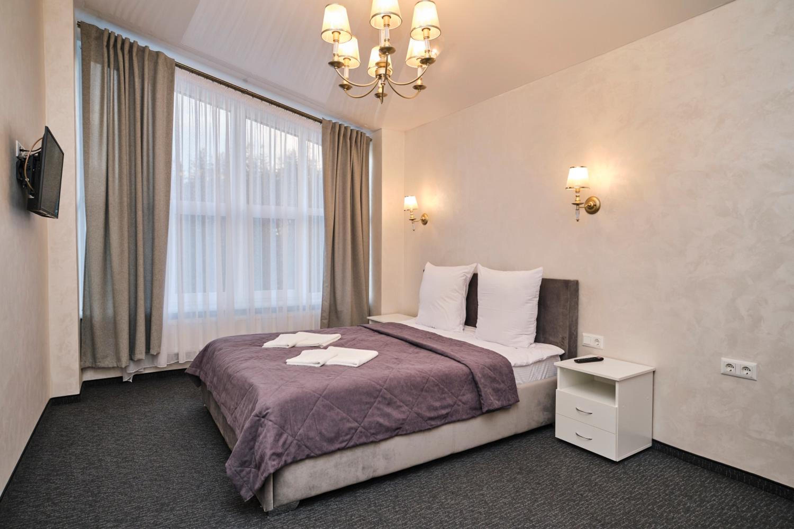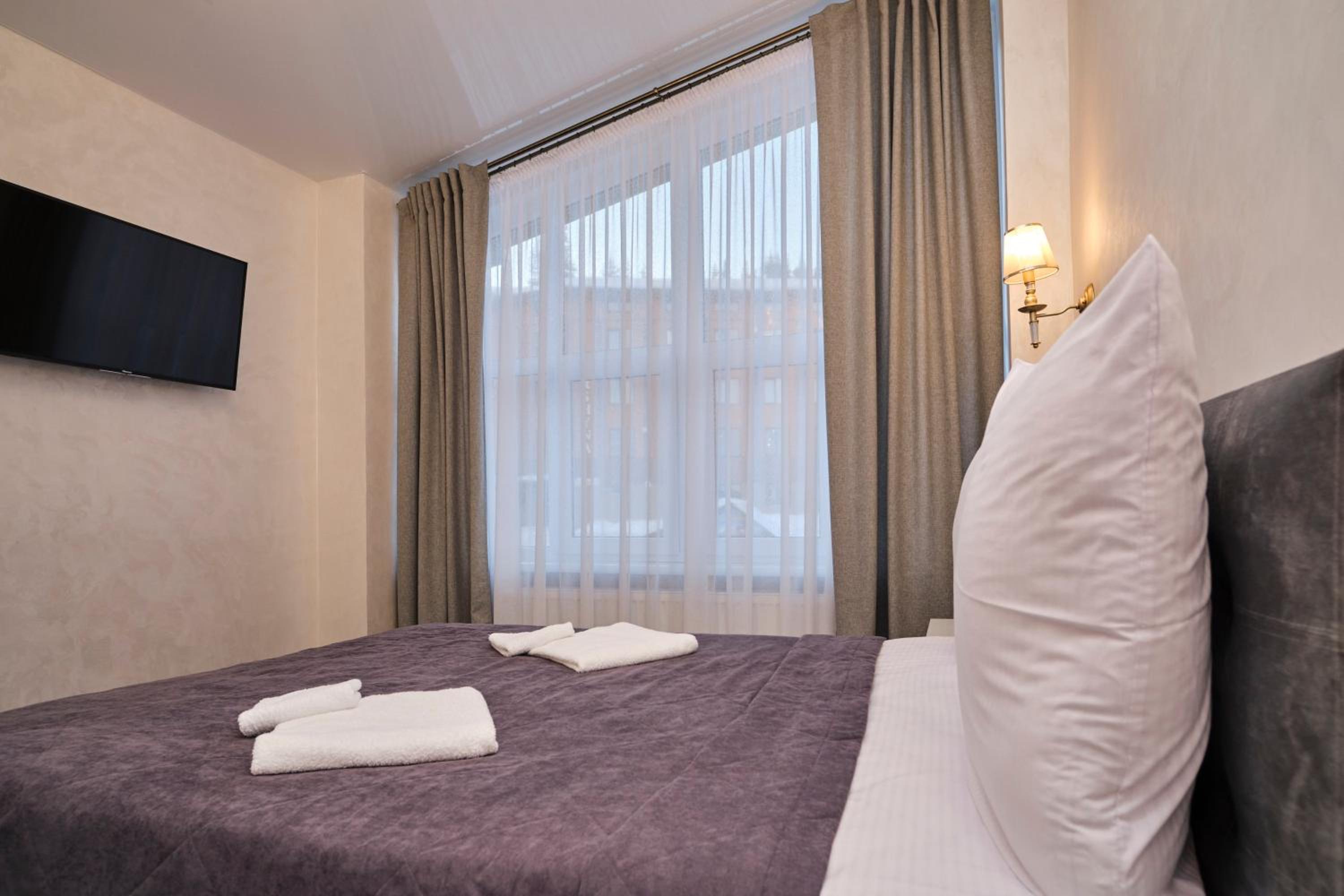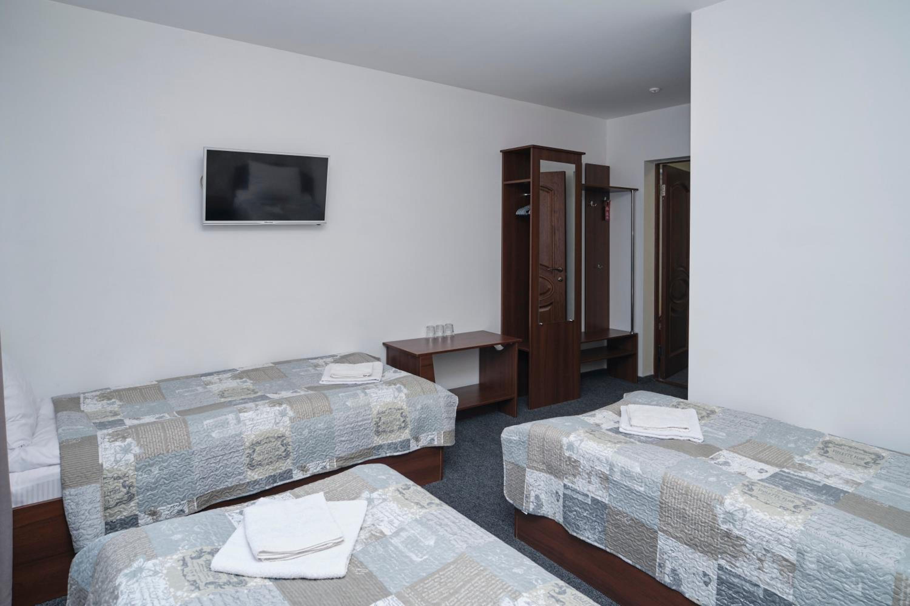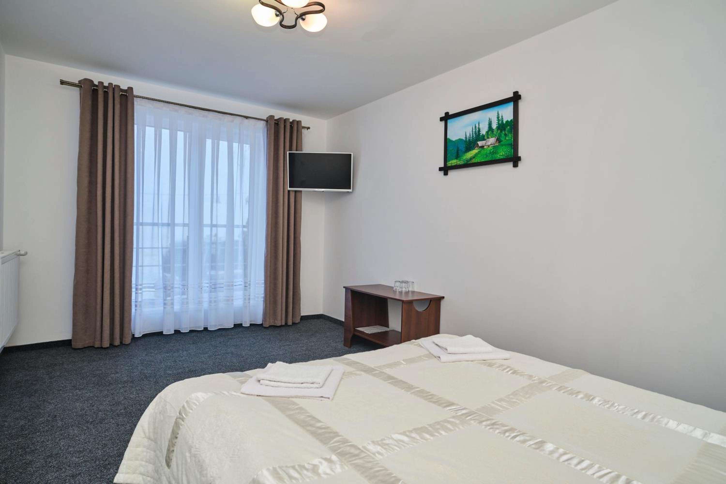 Each room at the hotel is furnished with essential amenities such as a flat-screen TV, private bathroom, and cozy bedding, ensuring a comfortable stay for guests.