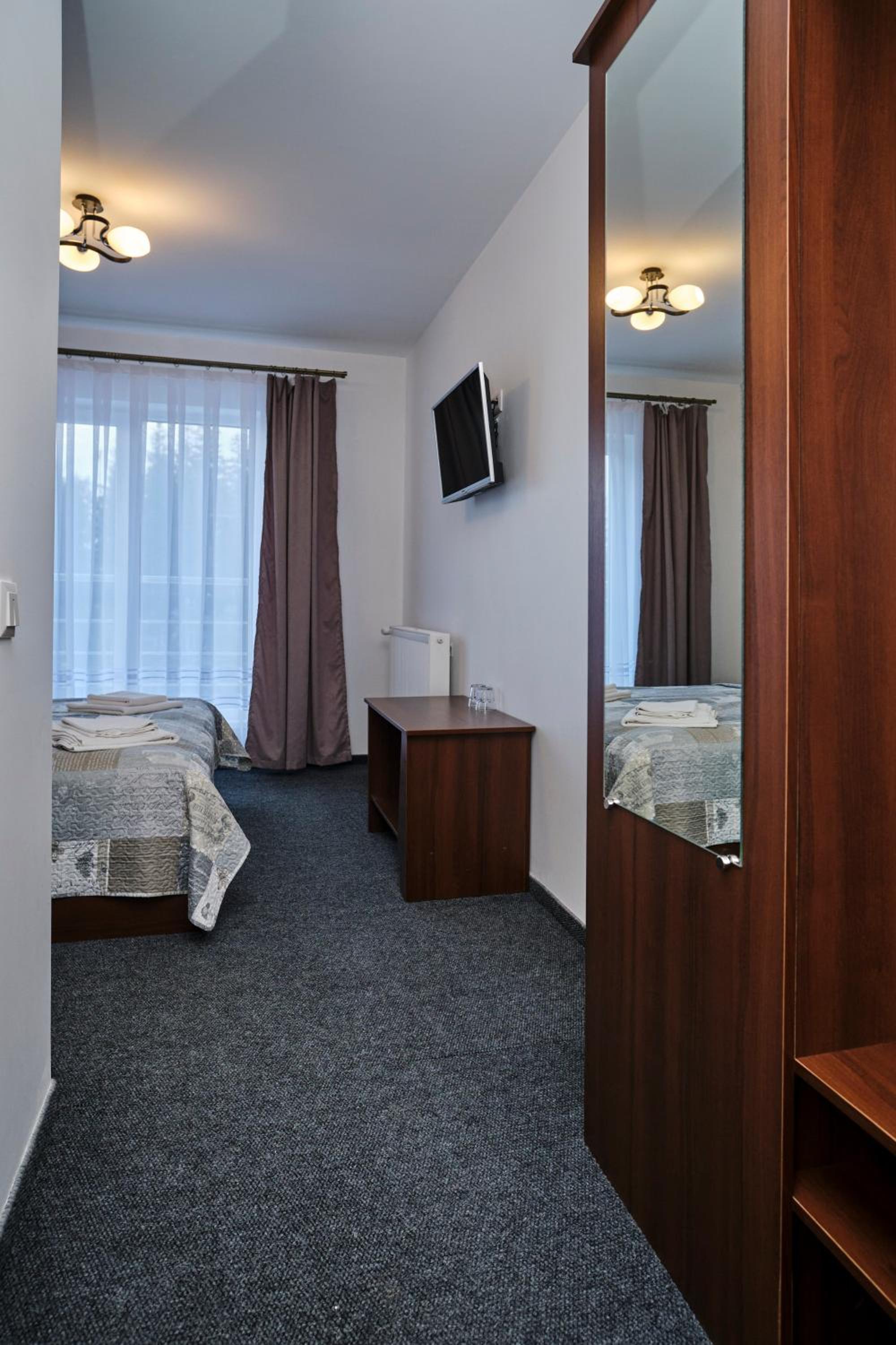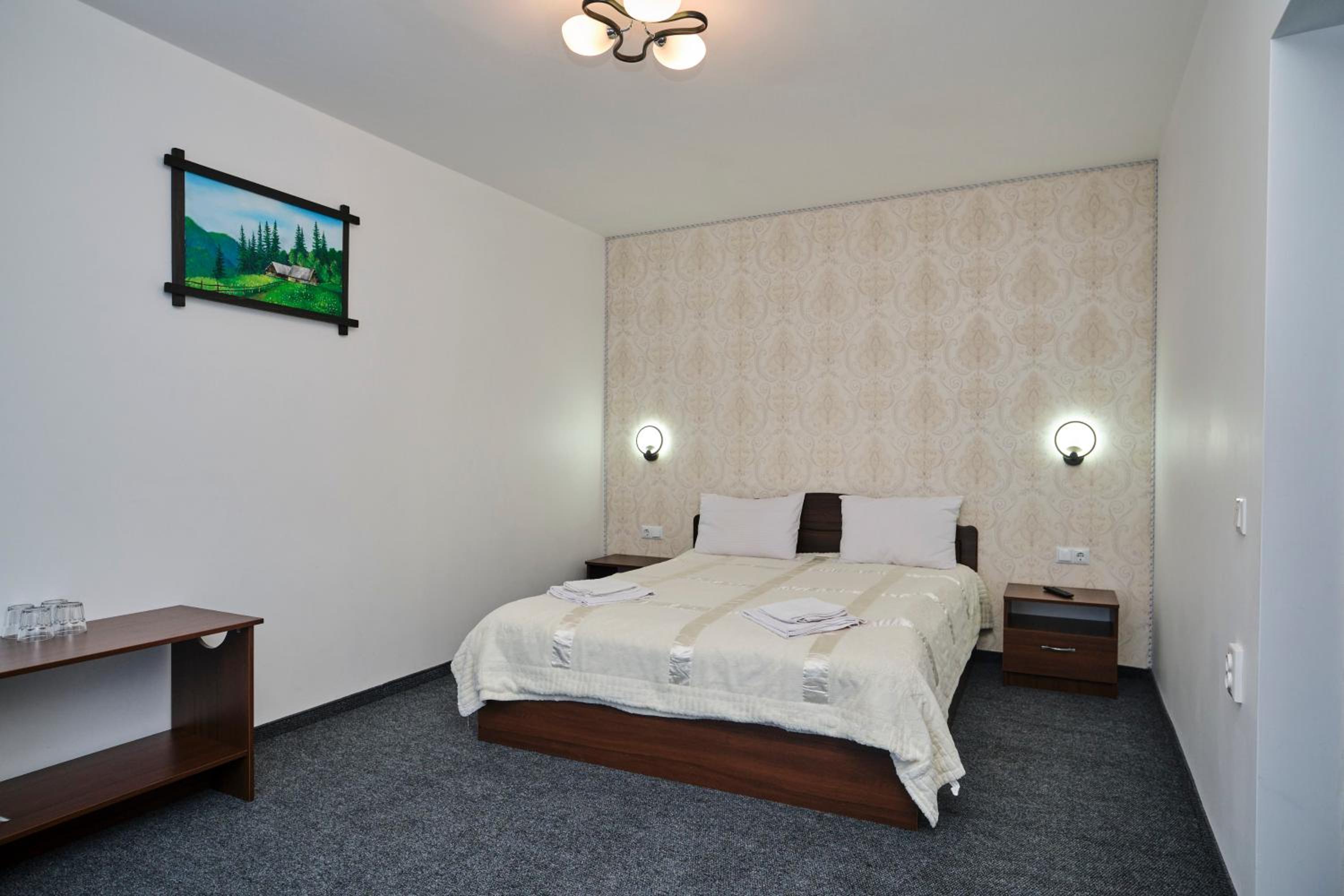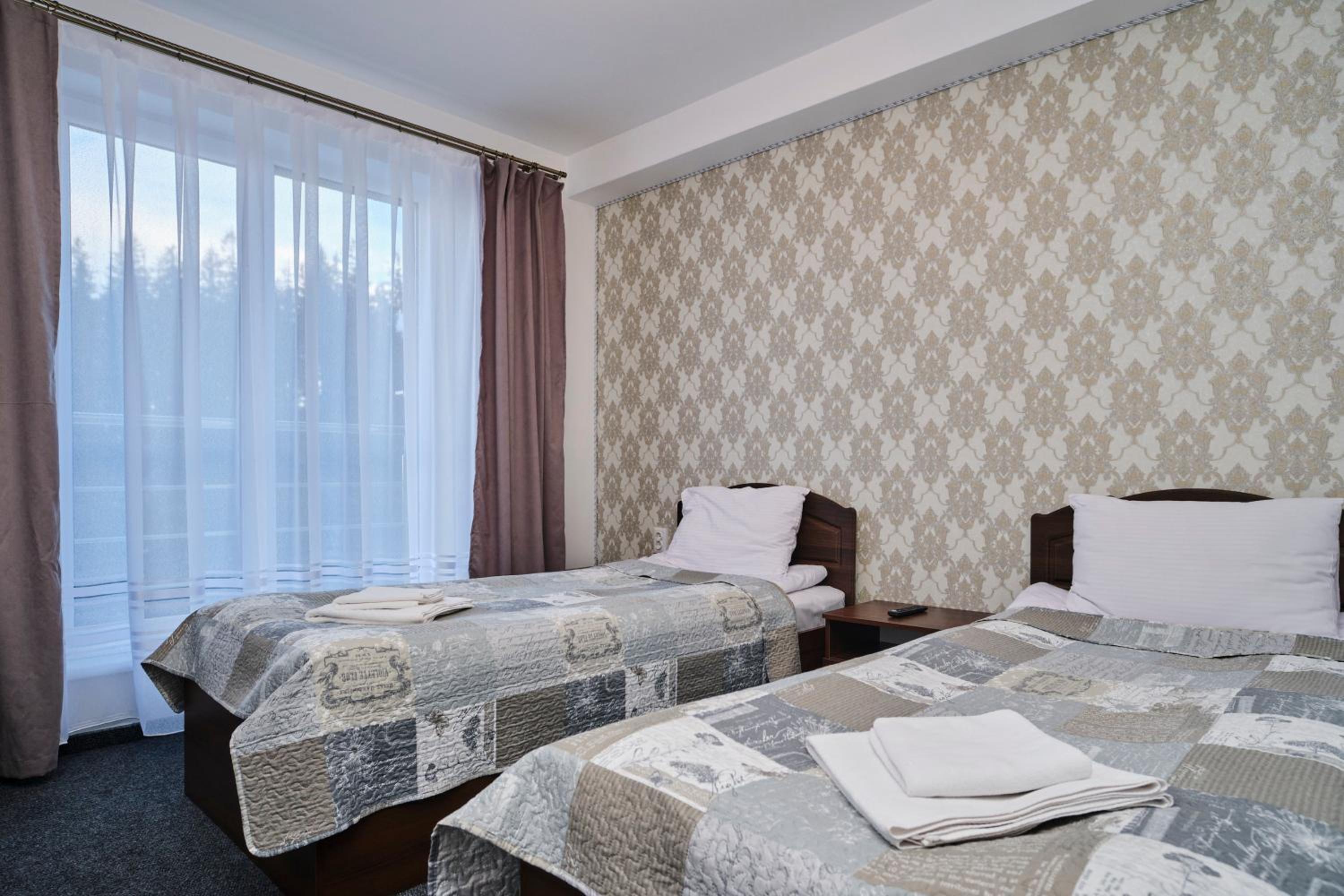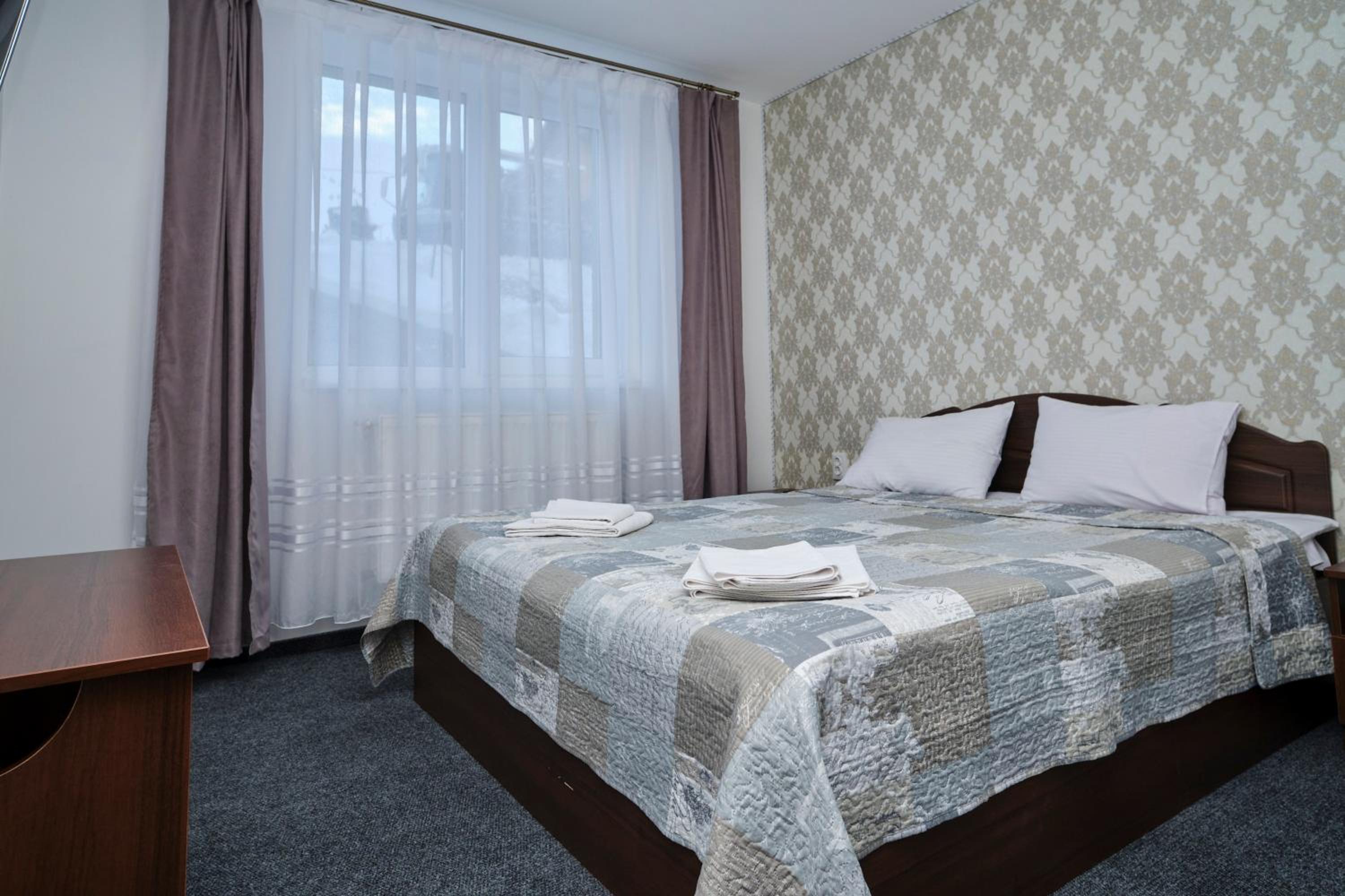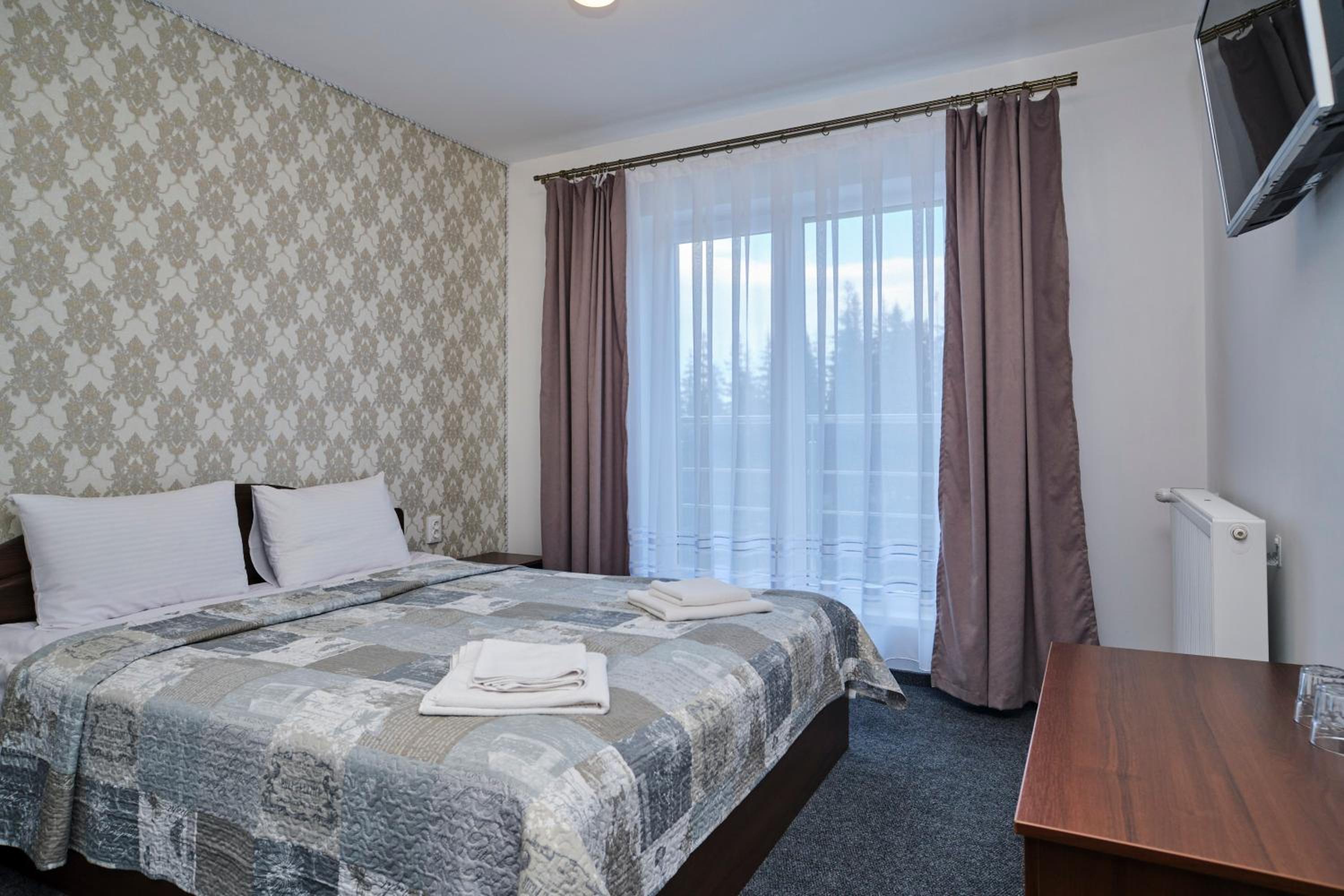Each room at the hotel is furnished with essential amenities such as a flat-screen TV, private bathroom, and cozy bedding, ensuring a comfortable stay for guests.