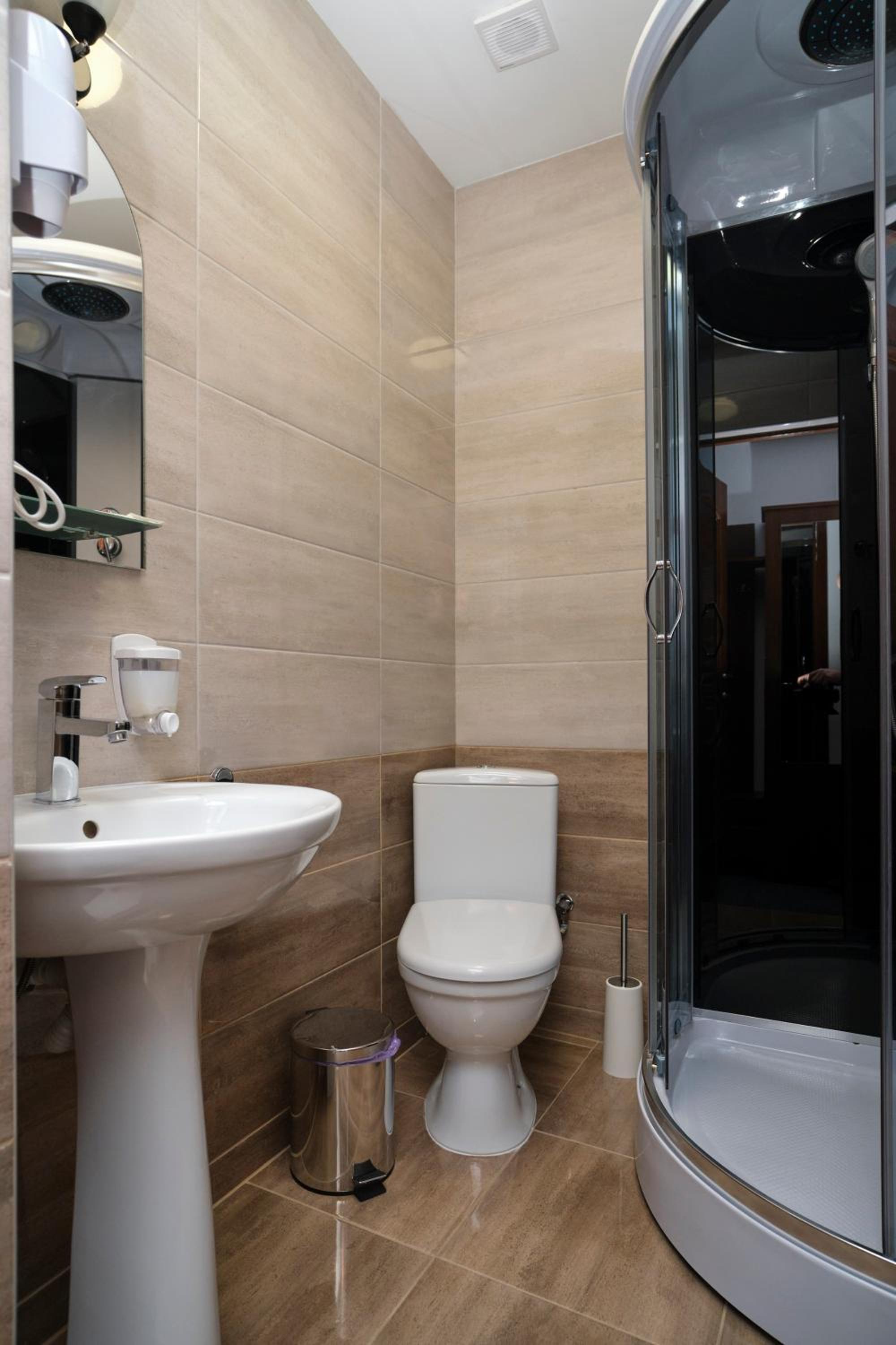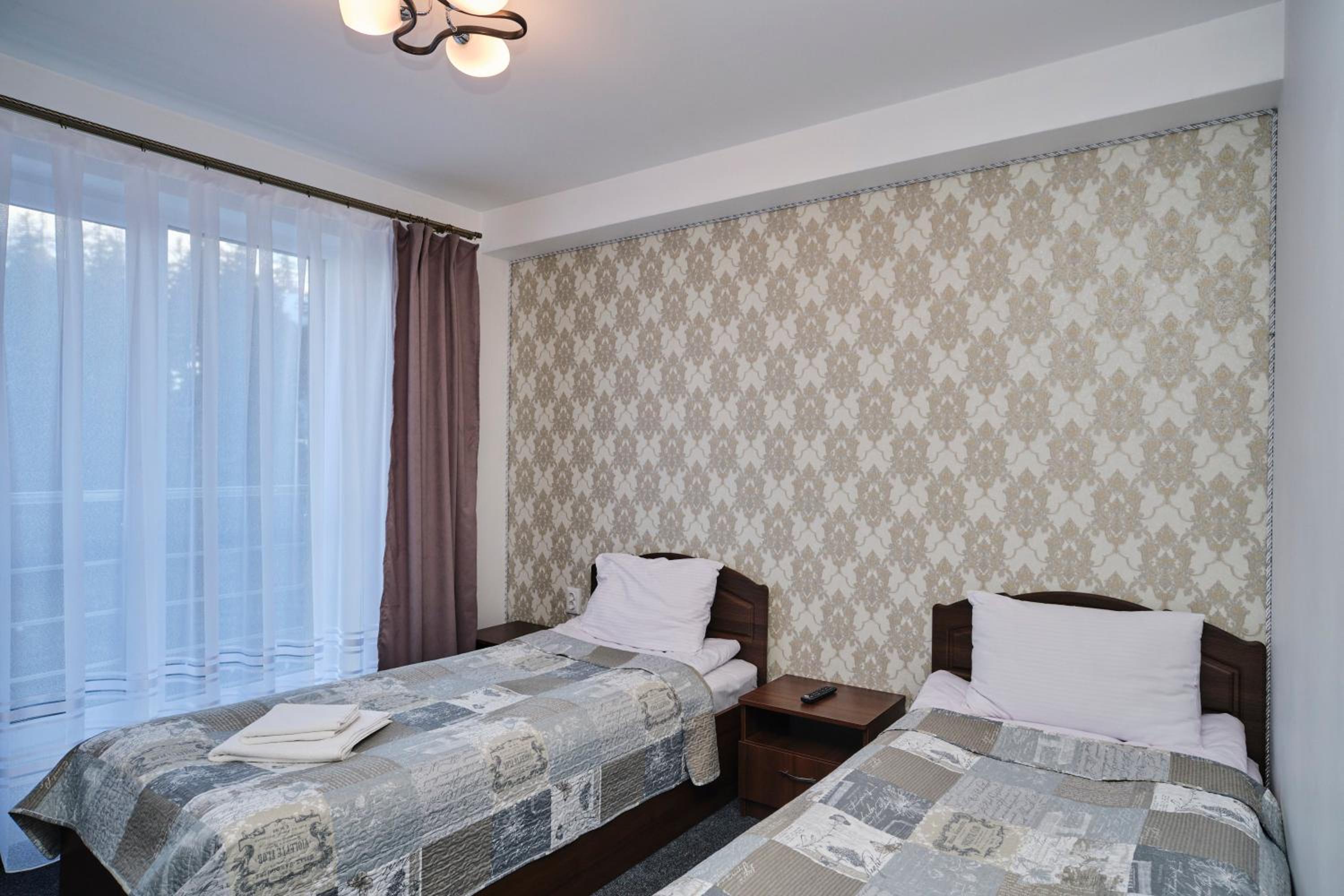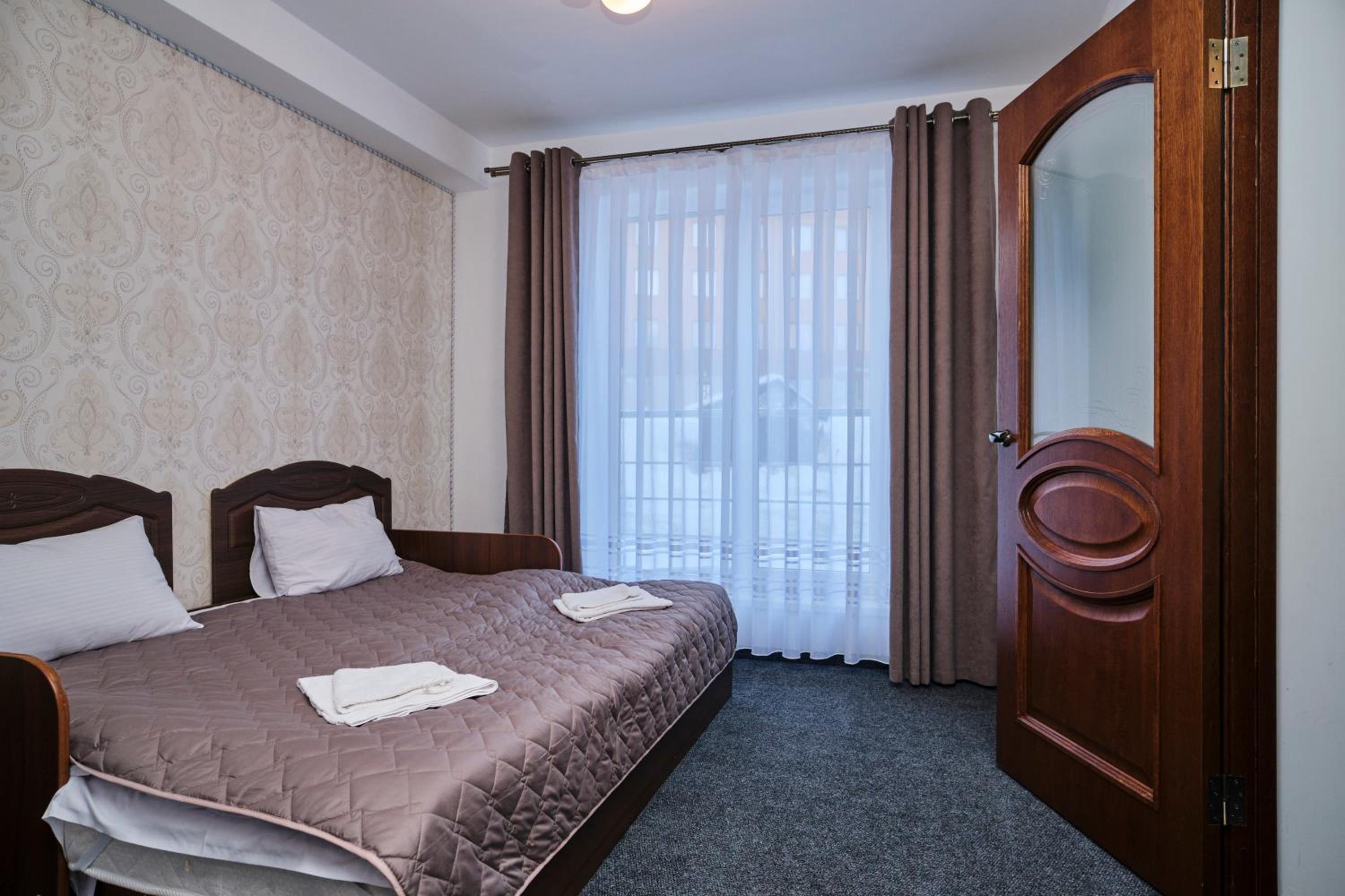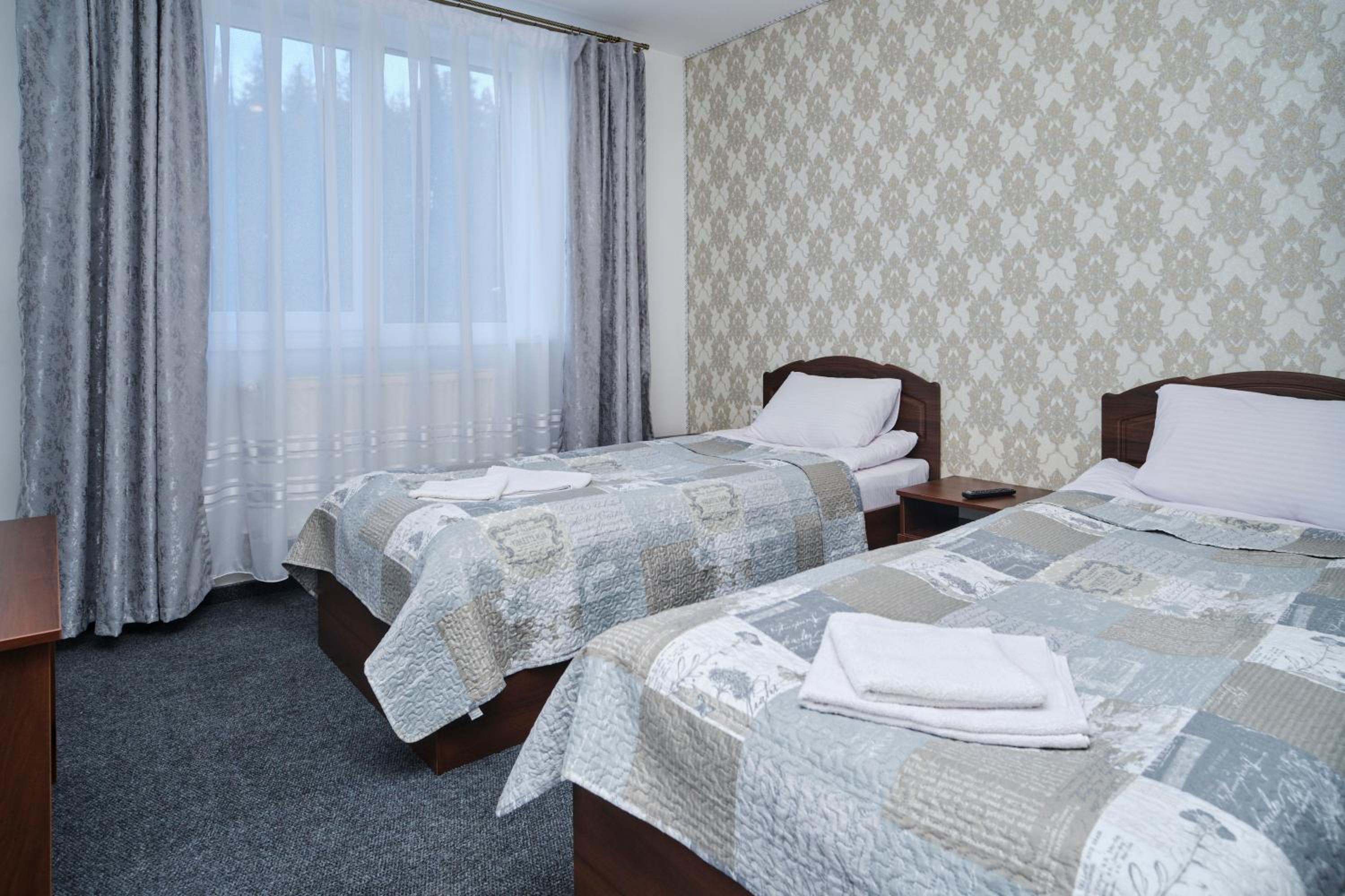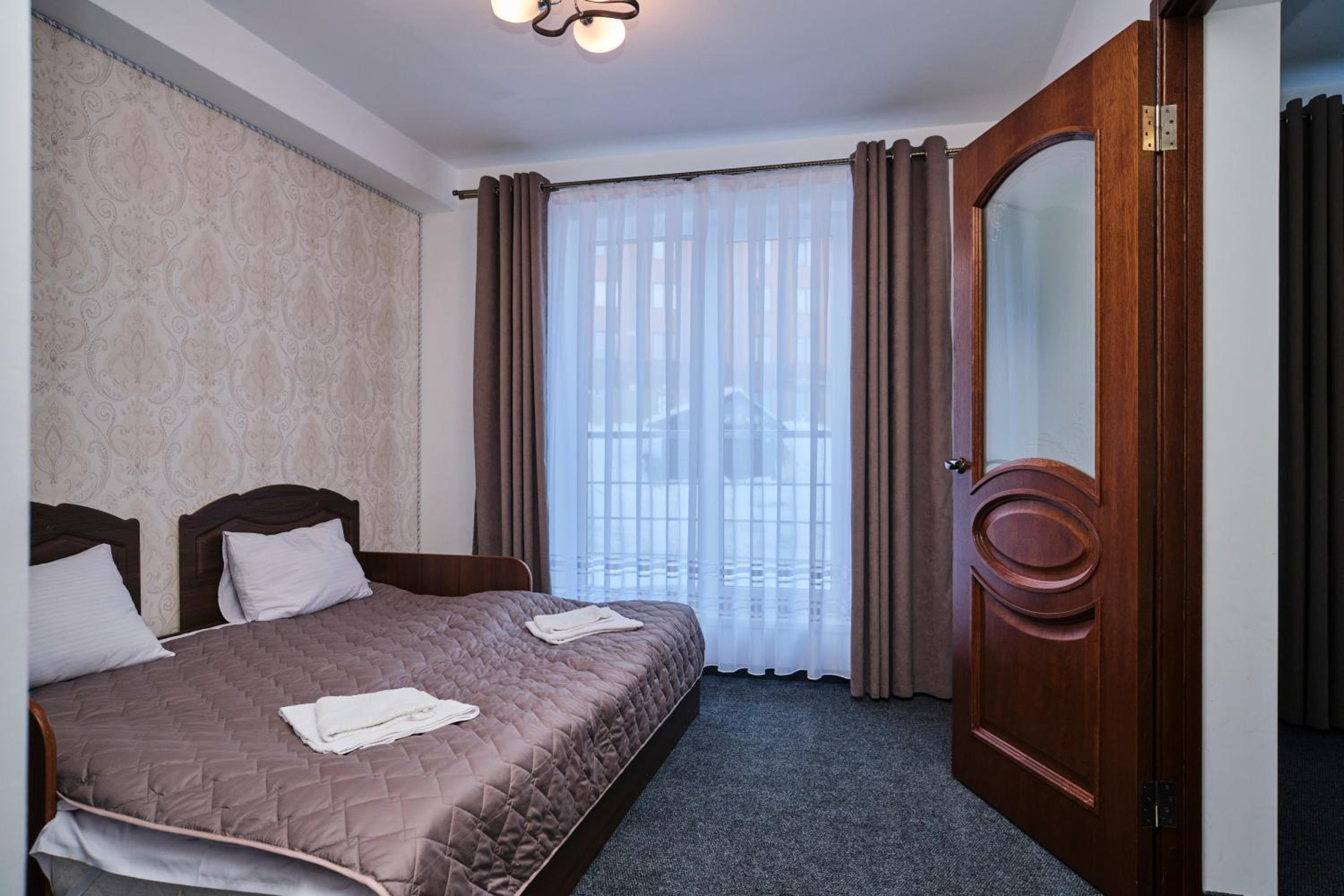 Each room at the hotel is furnished with essential amenities such as a flat-screen TV, private bathroom, and cozy bedding, ensuring a comfortable stay for guests.