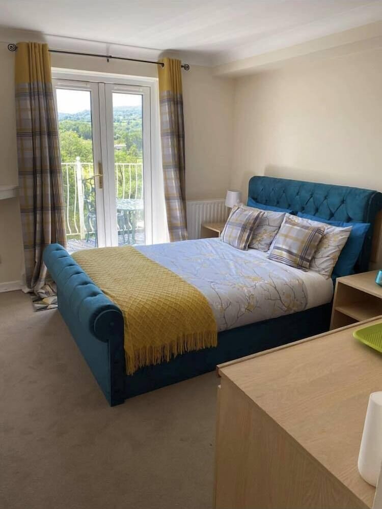 Stunning views from balcony over the Usk towards the beacons opposite. Very handy for Abergavenny. Under new management so it will be 5* across the board in due course I'd imagine. Free cooked breakast too.