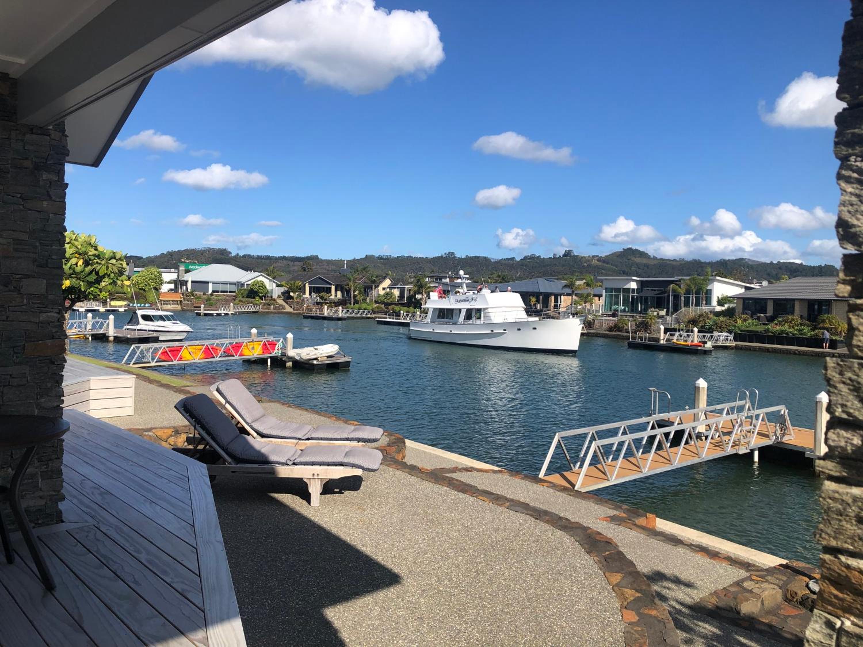 Wir waren in einer Zeit in Neuseeland, als aufgrund von Unwettern viele Straßen, unter anderem die zu unserer Unterkunft, gesperrt waren. Mit unserer Gastgeberin waren wir ab dem Vortag in Kontakt, um zu erfahren, ob es eine Möglichkeit gibt, die Unterkunft zu erreichen. Diese Kommunikation war bereits sehr freundlich, hilfreich und zuvorkommend. Und genauso haben wir unsere Gastgeberin und Ihren Mann auch kennengelernt: sehr herzlich, hilfsbereit, mit sehr guten Tipps und sehr angenehmen Gesprächen. Die Unterkunft ist sehr sauber, liebevoll eingerichtet und liegt in einer traumhaften Gegend an einem Kanal. Man kann den Grill benutzen und auf der Terrasse frühstücken und essen. In der Küche steht alles zur Verfügung, was man zum Frühstück benötigt. Das Auto kann direkt davor geparkt werden.