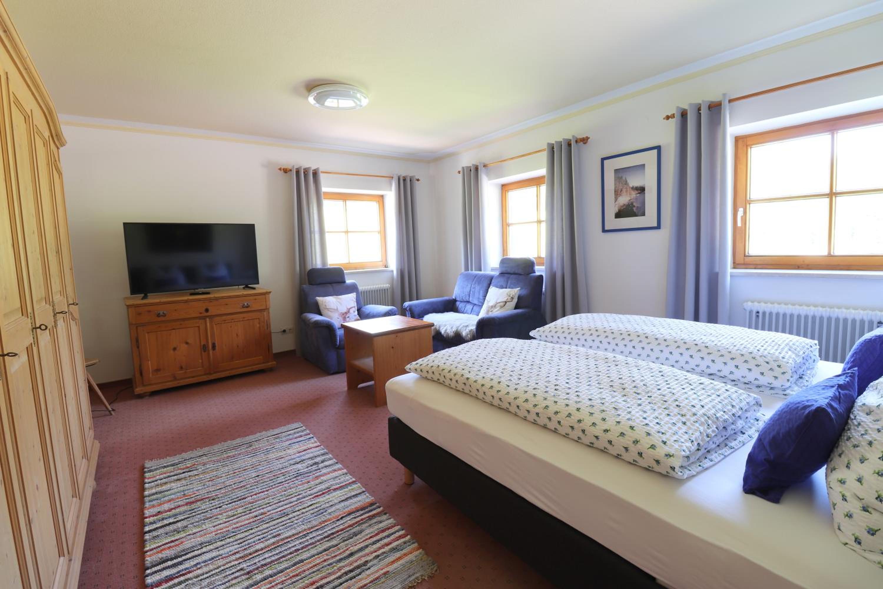 Die großen Zimmer. Wir hatten zwei Zimmer, jeweils mit zwei Einzelnetten, Fernseher und Sofa. Mit Bad. Sehr sauber