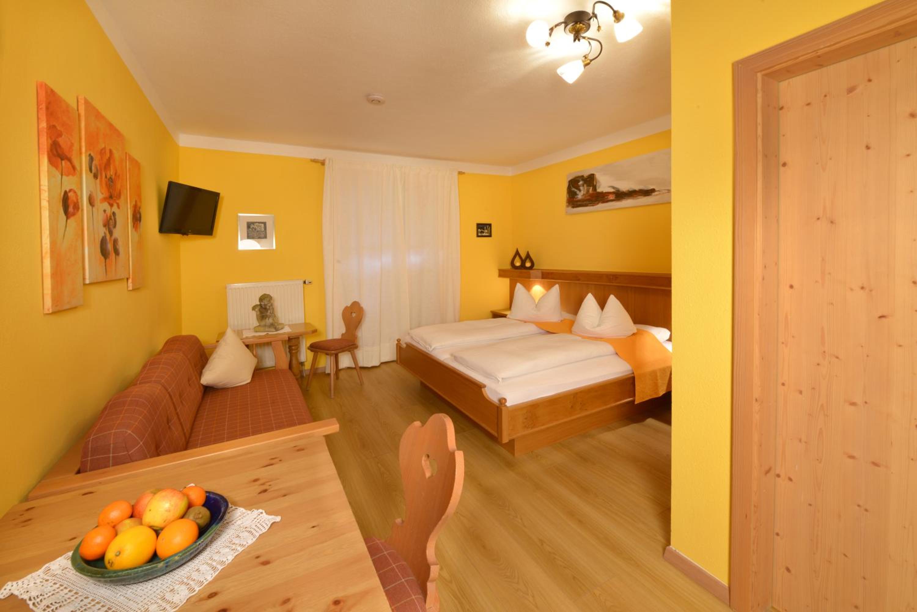 Cozy Rooms and Apartments: Experience the comfort of spacious rooms and apartments with balconies, cable TV, and traditional wooden furniture. Apartments feature fully equipped kitchenettes.