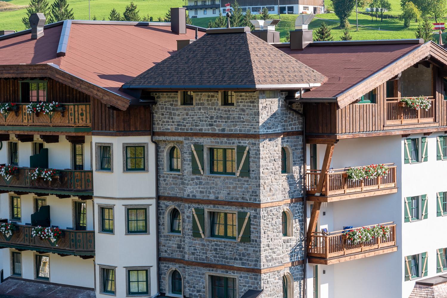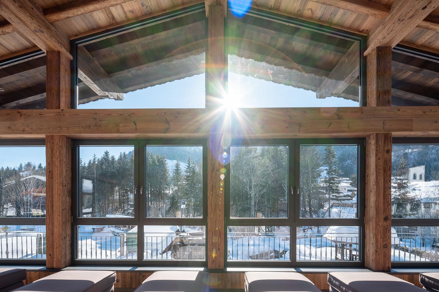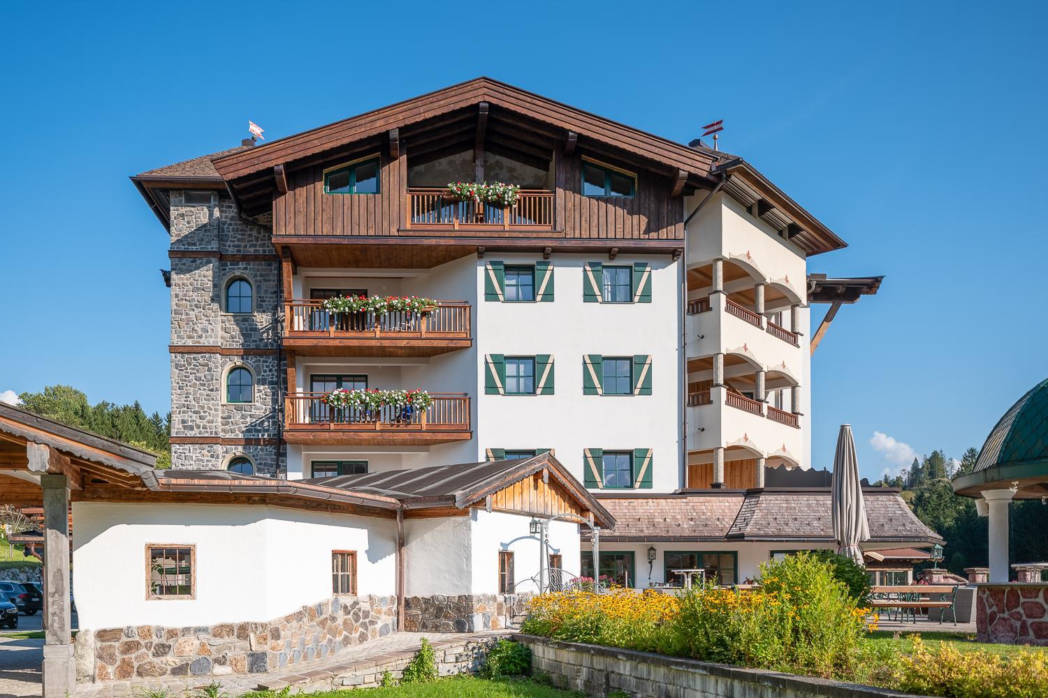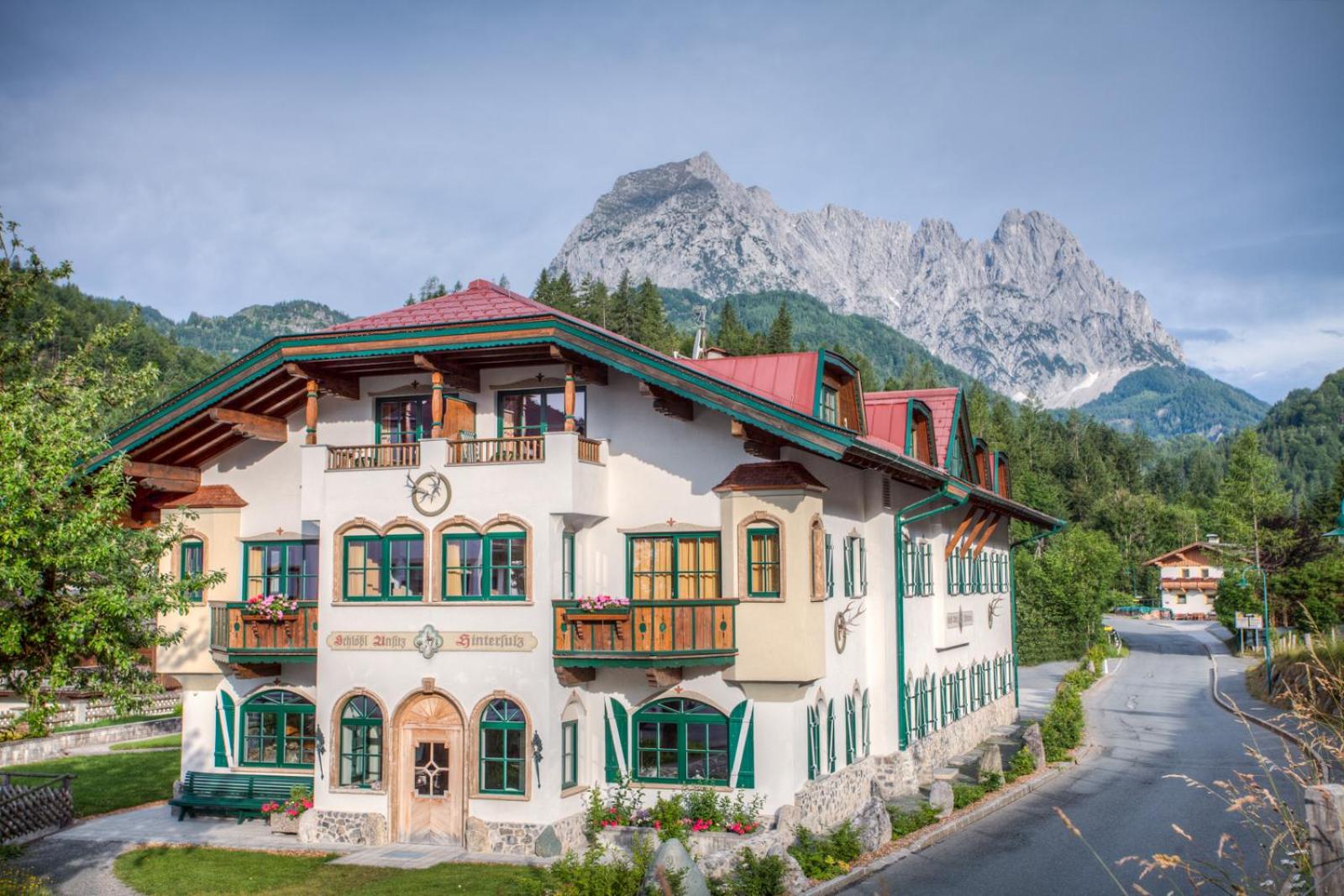 Gasteiger Jagdschlössl offers a charming setting with picturesque views of the Wilder Kaiser and Kitzbühel Alps, perfect for a romantic getaway.