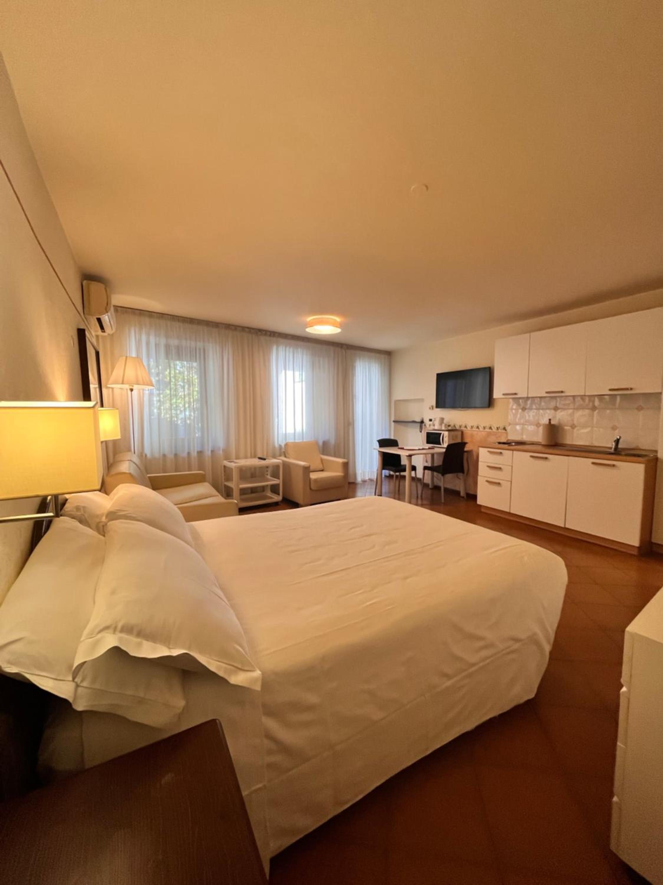 Enjoy the convenience of private parking on site, along with a bar, restaurant, and terrace at Hotel America nearby. Bed linen is provided in all units for a comfortable stay.