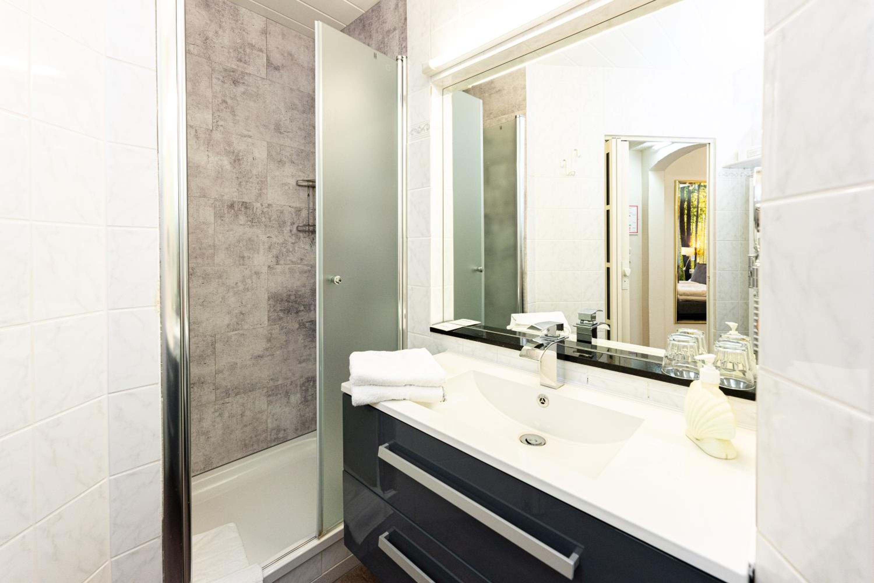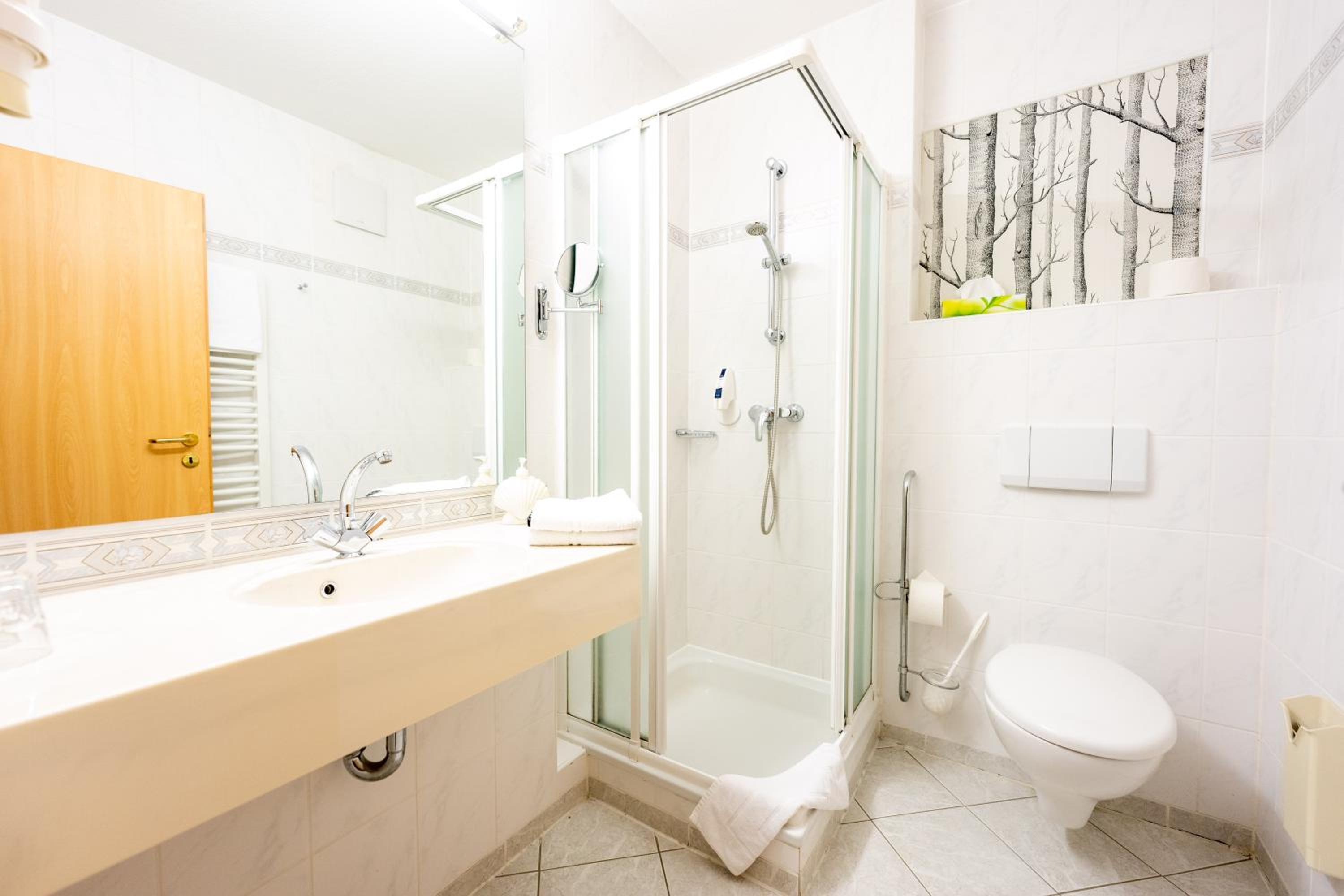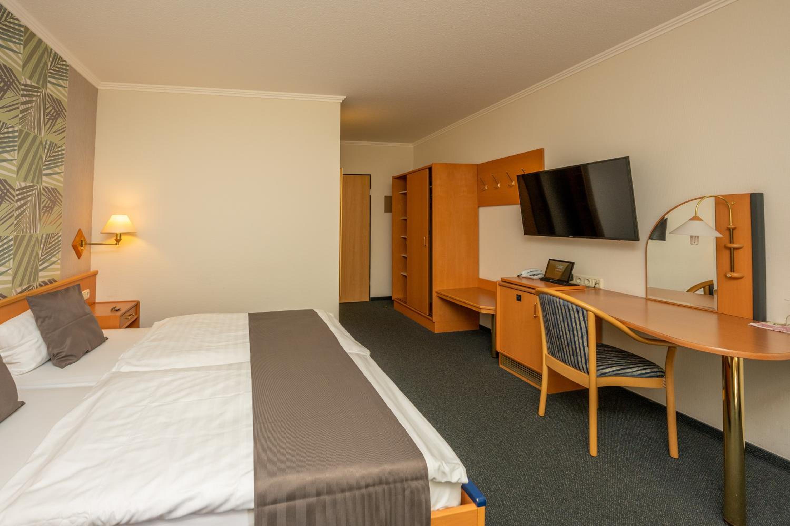 Each room at Waldhotel Kurfürst is thoughtfully designed with a flat-screen TV, private bathroom, and plush amenities. Some rooms feature a serene patio with garden vistas, ensuring a peaceful stay.