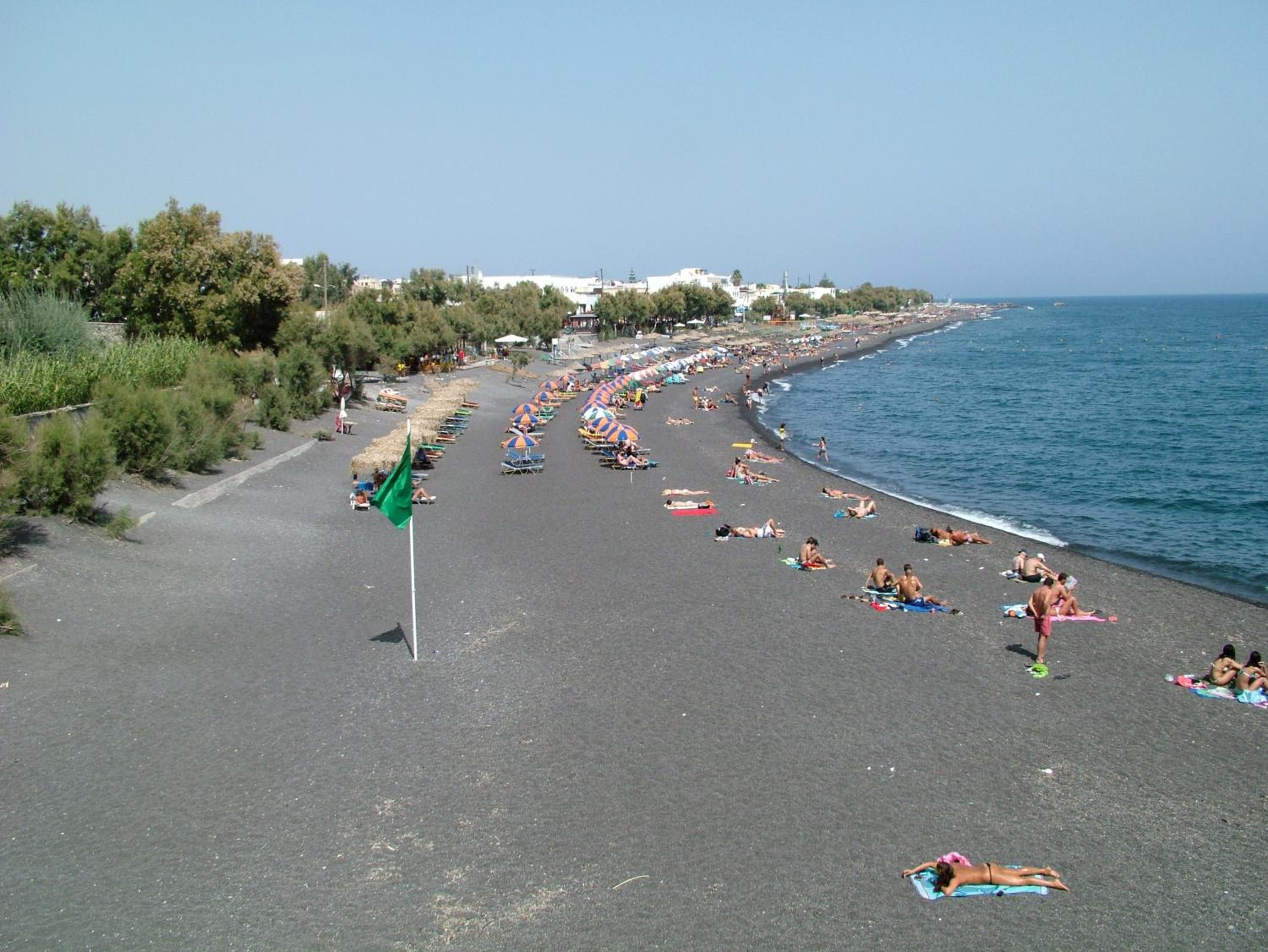 Zacharakis Studios, located just 30 meters from the black sandy beach of Kamari in Santorini, offers a prime spot for beach lovers and those seeking convenience. With shops, beach bars, and a 24-hour supermarket at arm's reach, guests can indulge in a perfect seaside getaway.