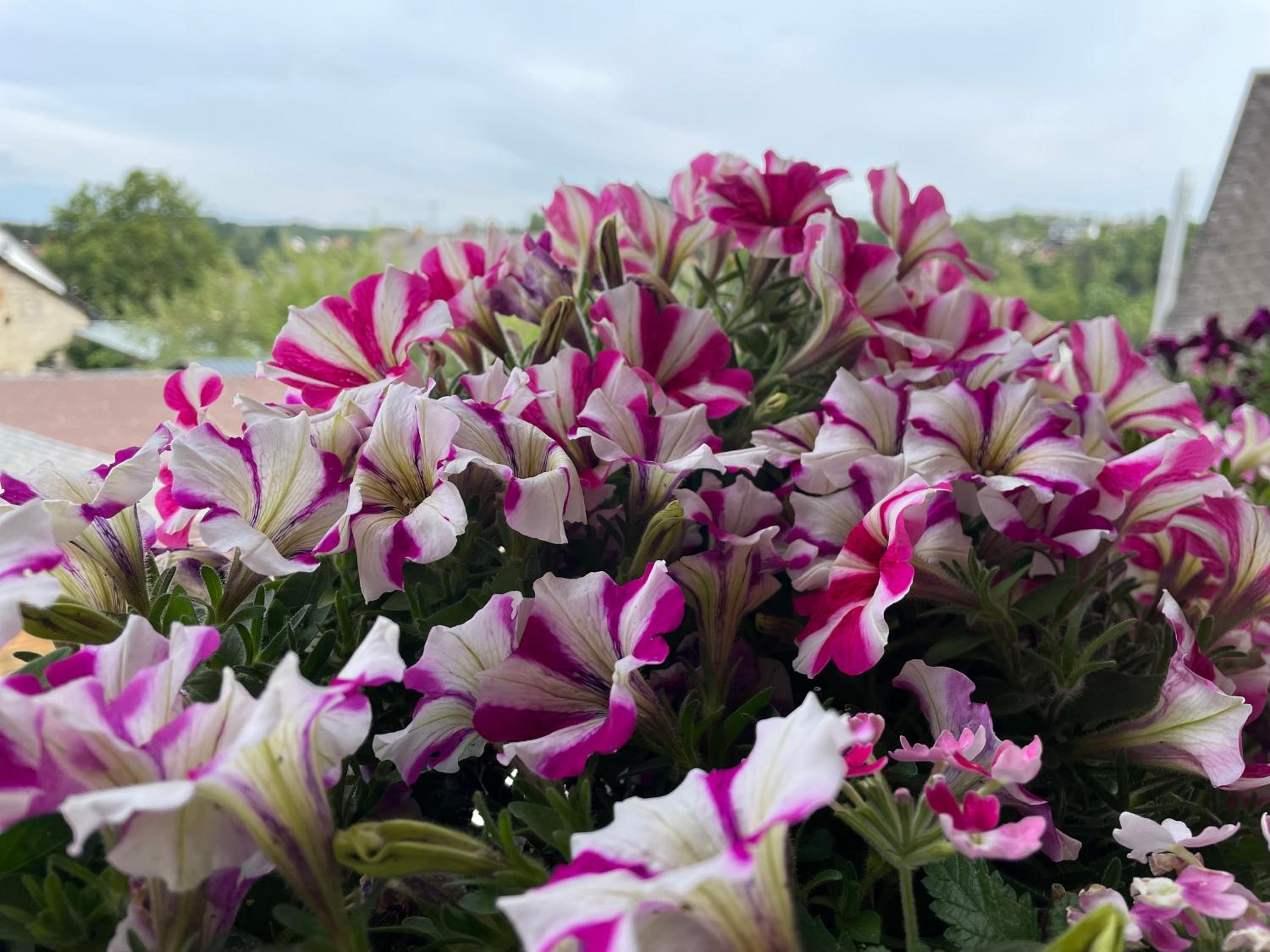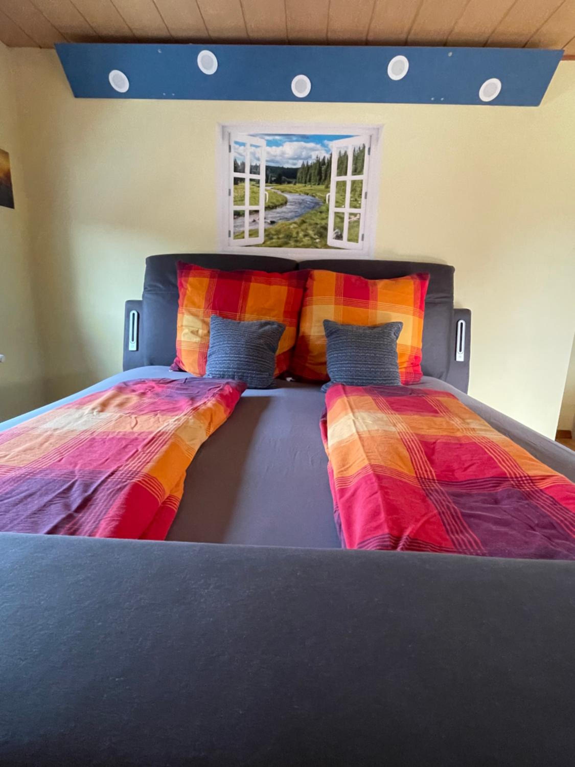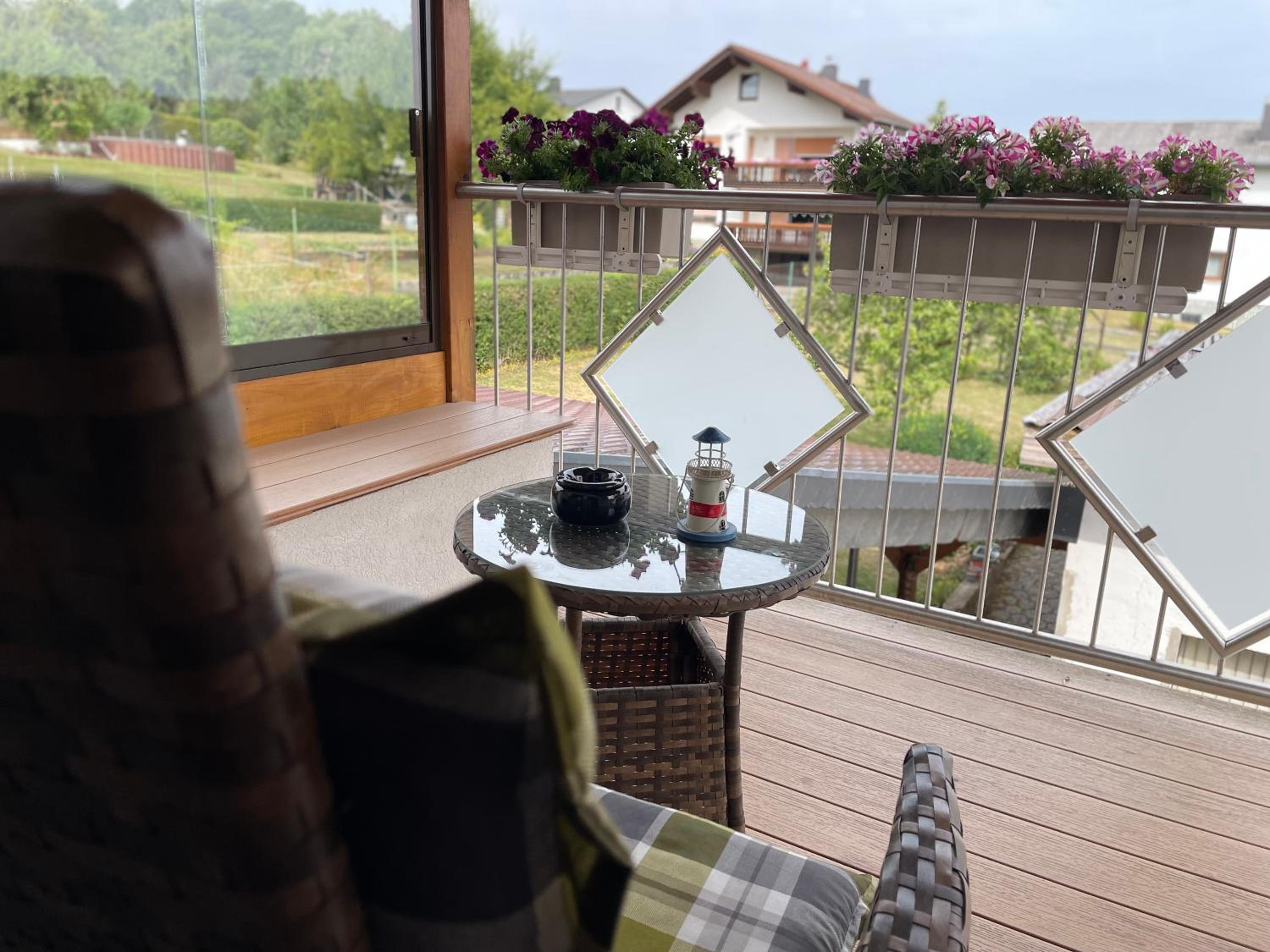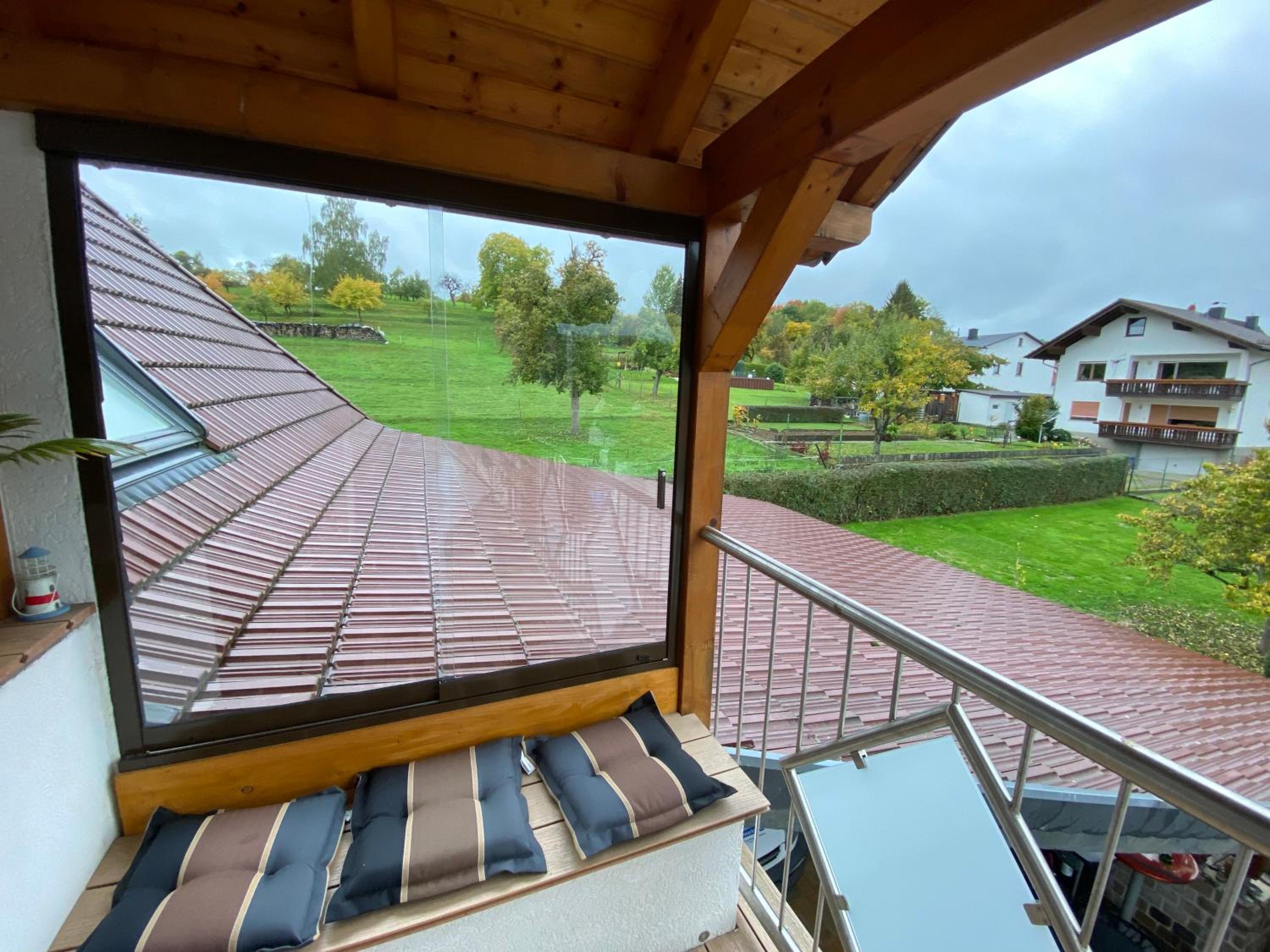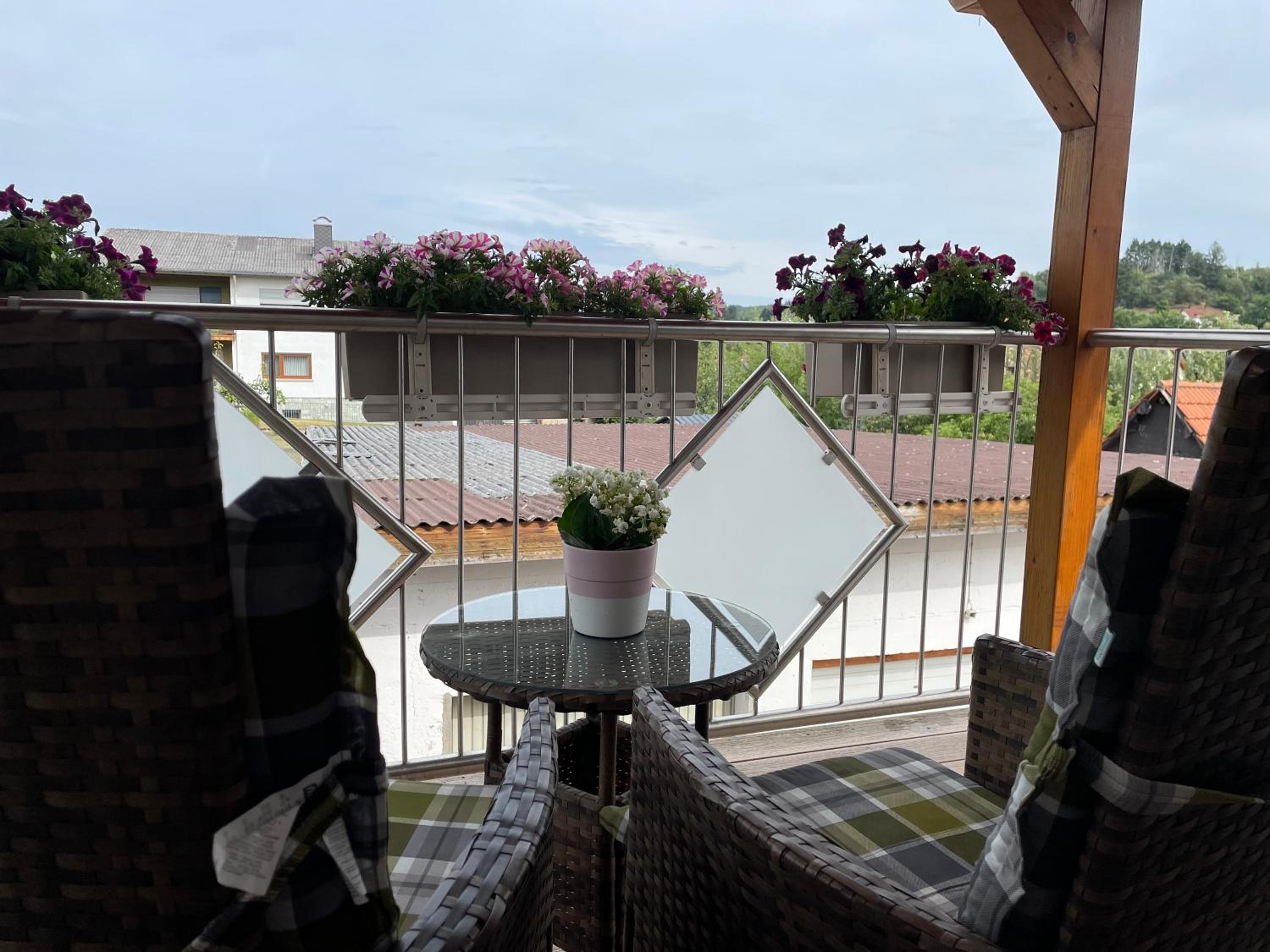 Sehr schöner Balkon mit Blick ins Grüne und ein sehr gemütliches Bett mit Fernseher 📺 😍👍