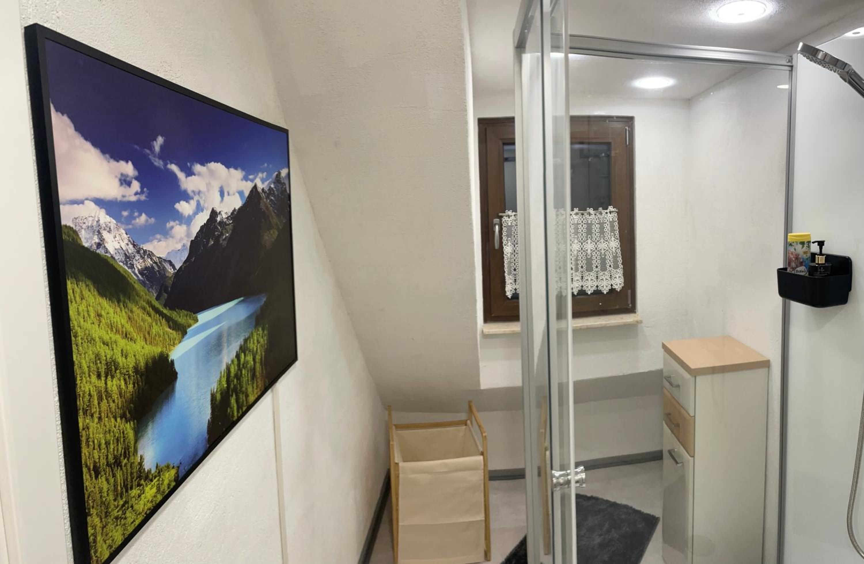 Kleines Bad, kleine Toilette, nur Smart TV Empfang ( keine Antenne ) Fön fehlt