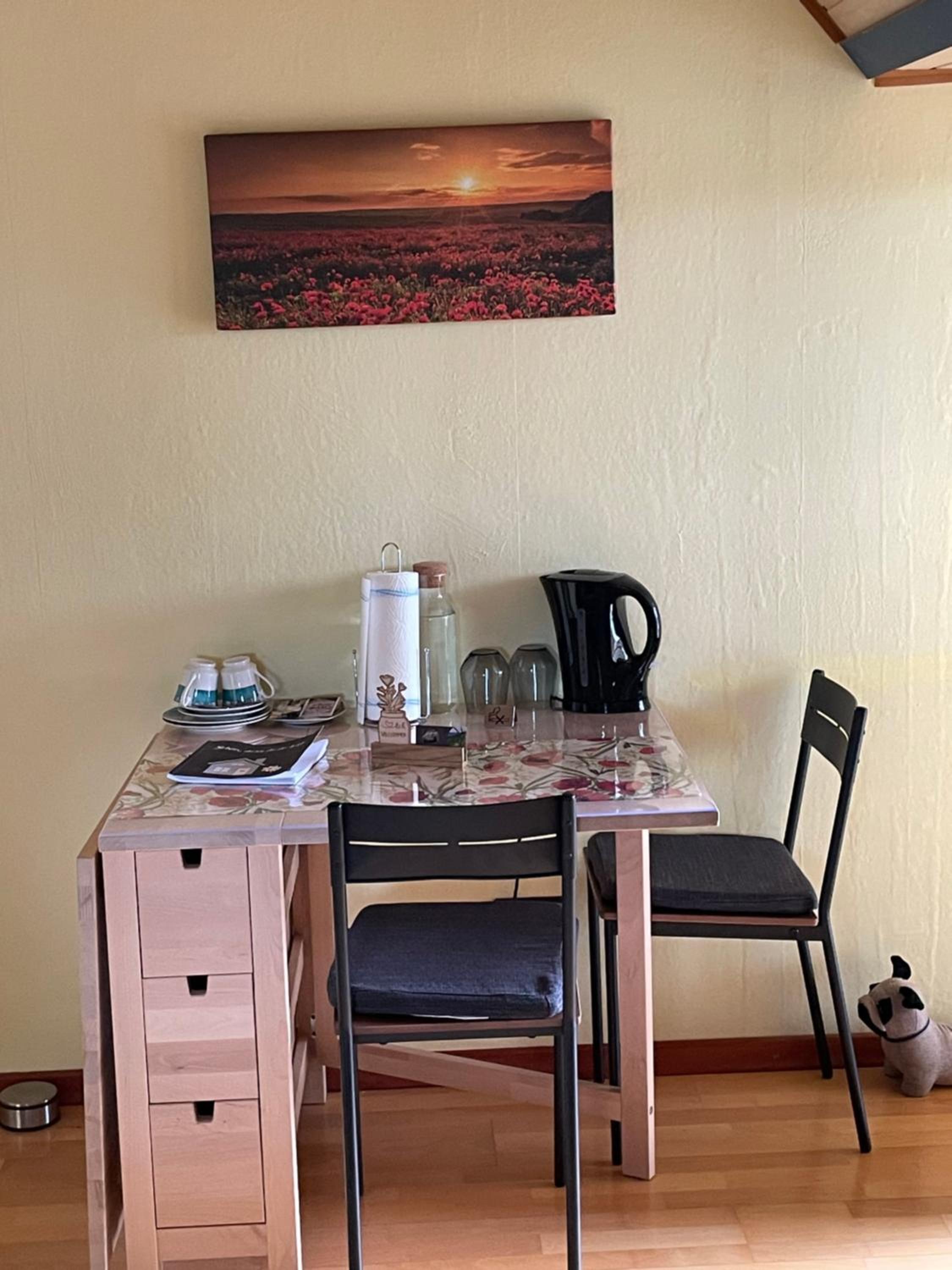 The house is located in a quiet, green area. We were happy about the kettle, tea and coffee. The spacious covered balcony is very nice for sitting outside. Extremely comfortable bed.