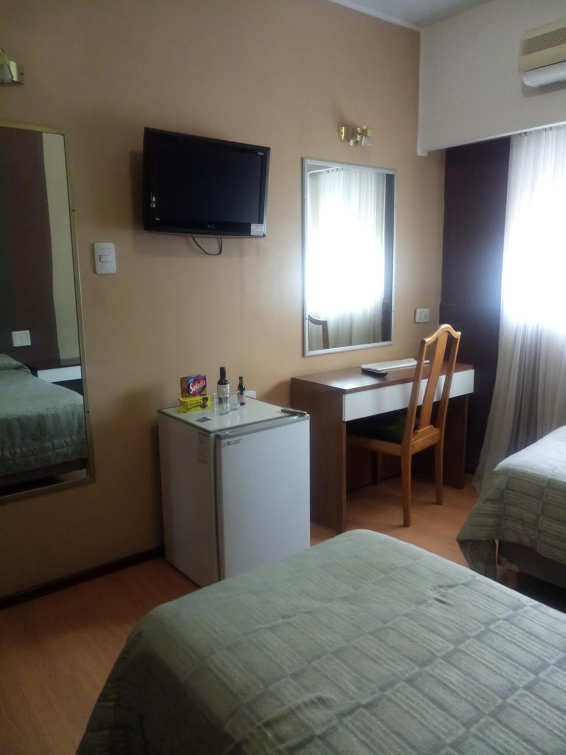 The AC in the room worked but had its front panel removed so at that point we had to unplug it from the wall to turn it off, shock hazard to say the least. Parking is not comfortable, charged separately and CASH ONLY, isn't open 24hs so you might find yourself locked out of your car during the weekend. Room was in bad shape, keys don't work properly, mini fridge was not functional, WIFI worked only after complaining to front desk and was pretty spotty. Breakfast is in another hotel across the street and not at all "continental", only coffee and croissants.