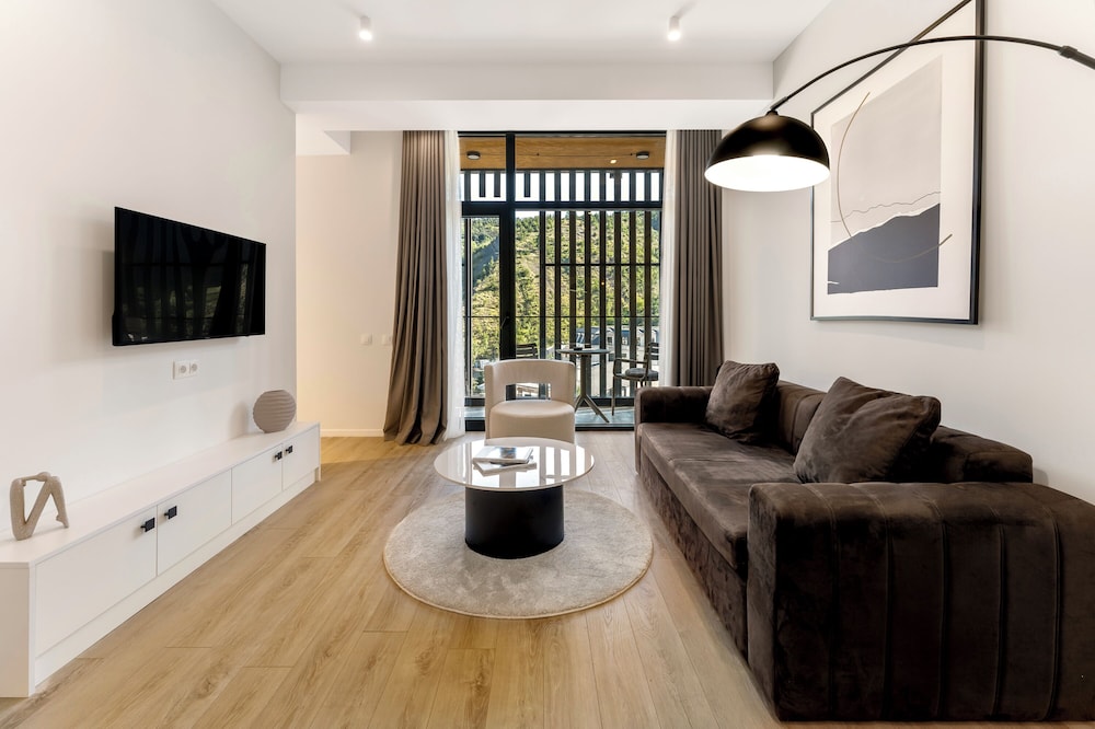 The accommodations are thoughtfully designed, featuring spacious, modern apartments that are both comfortable and aesthetically pleasing. spot to relax while overlooking Tbilisi’s picturesque landscape.