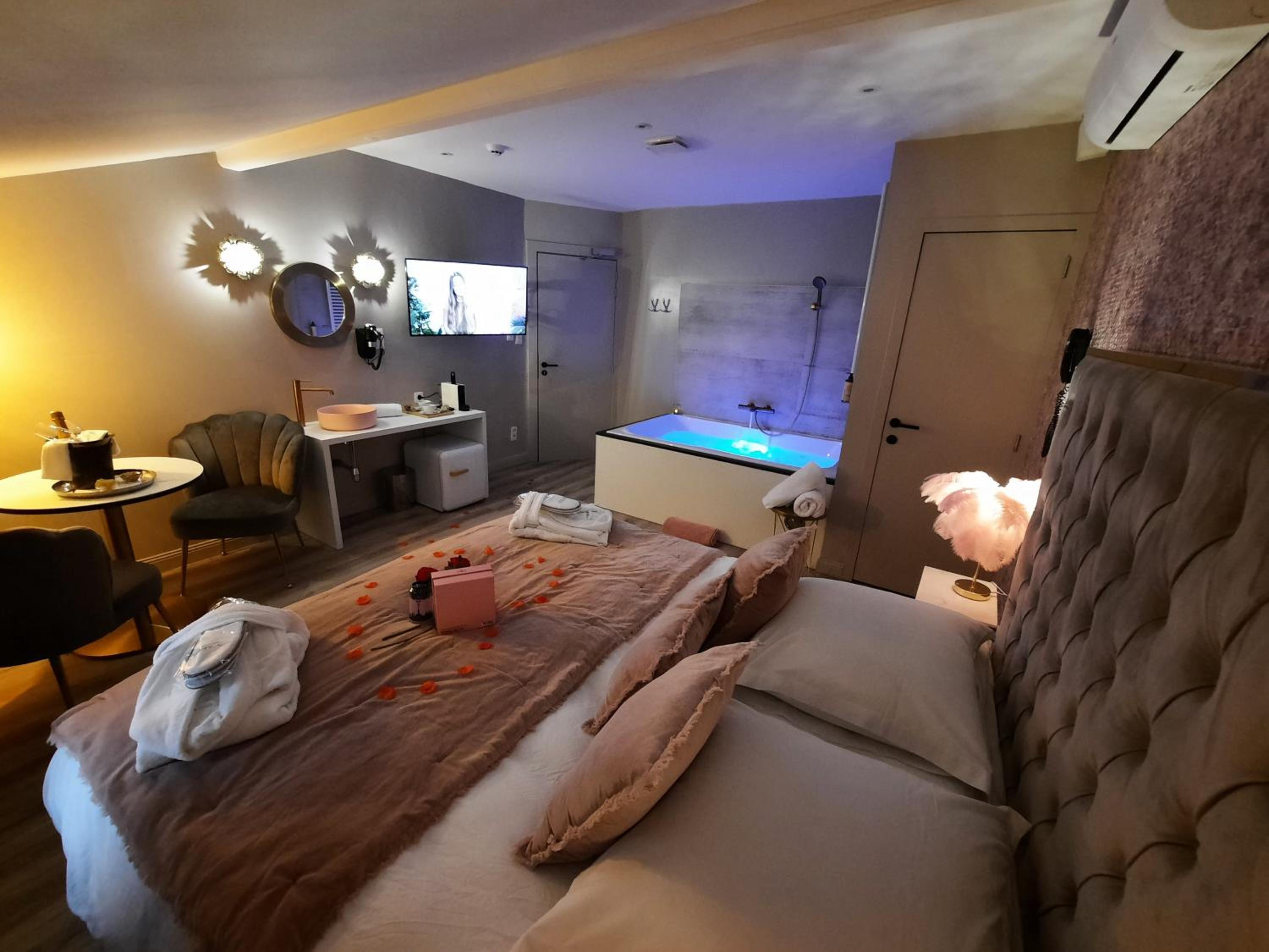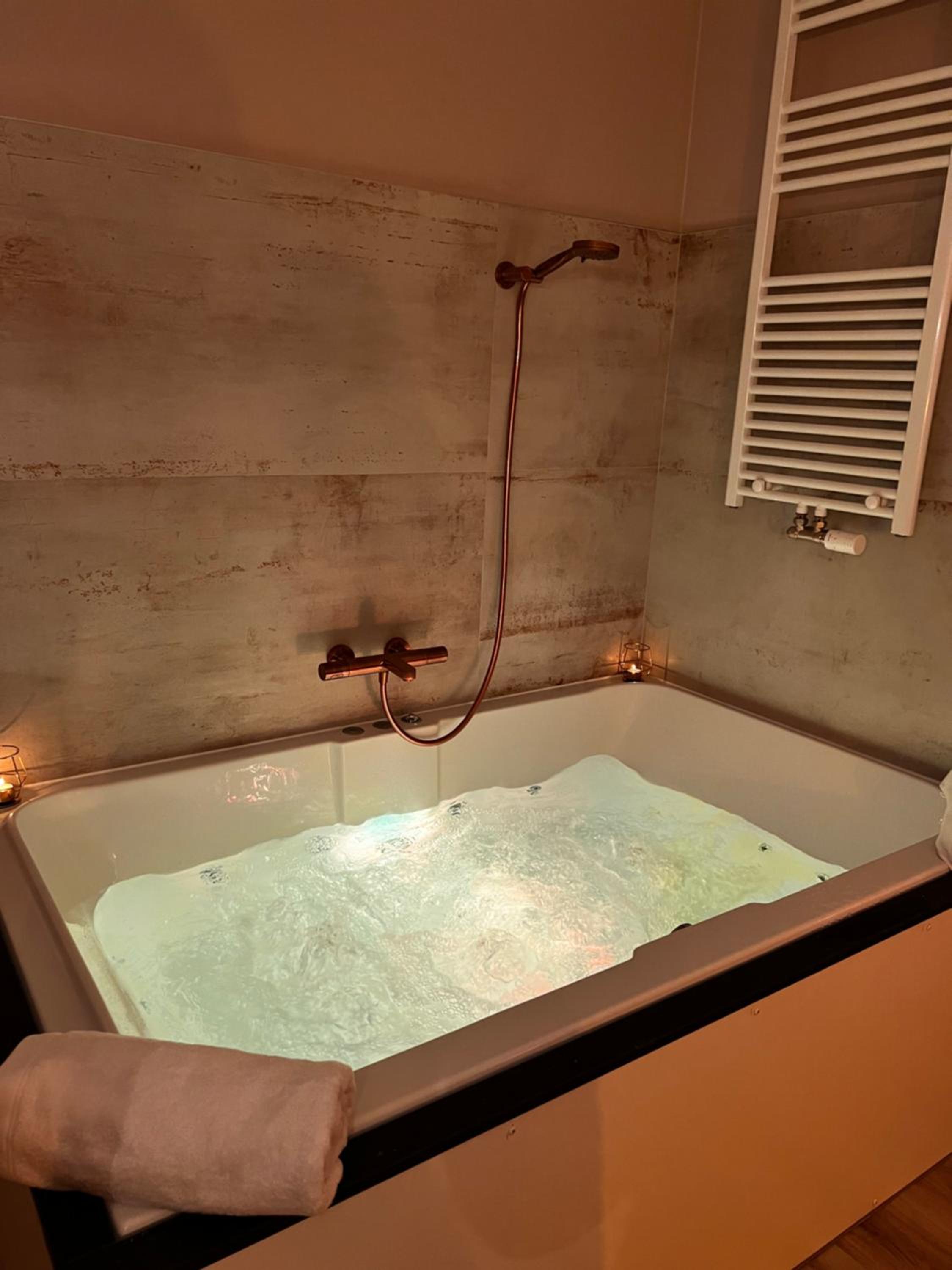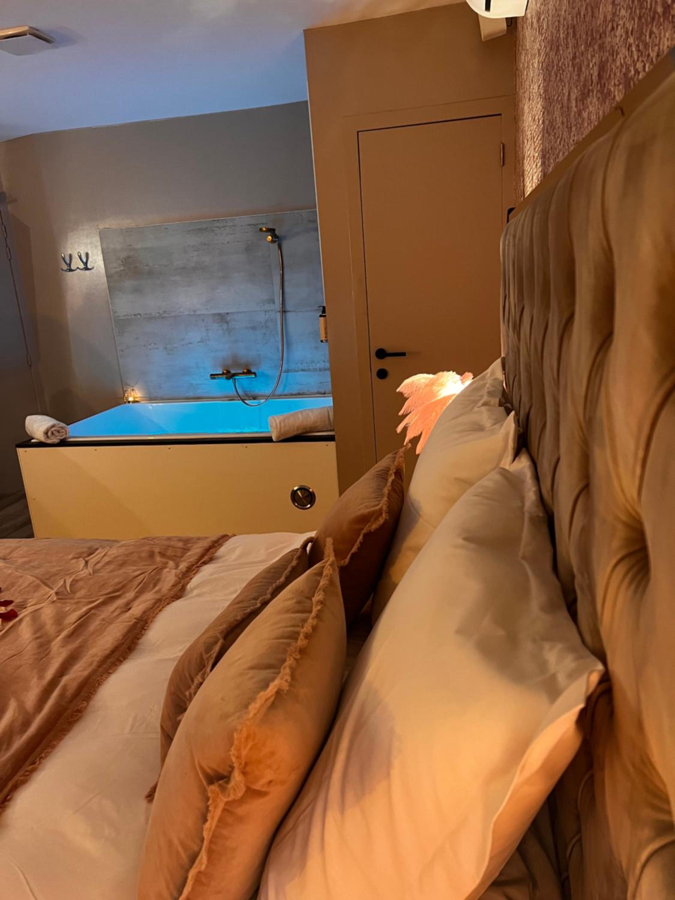 La baignoire balnéo et le lit
