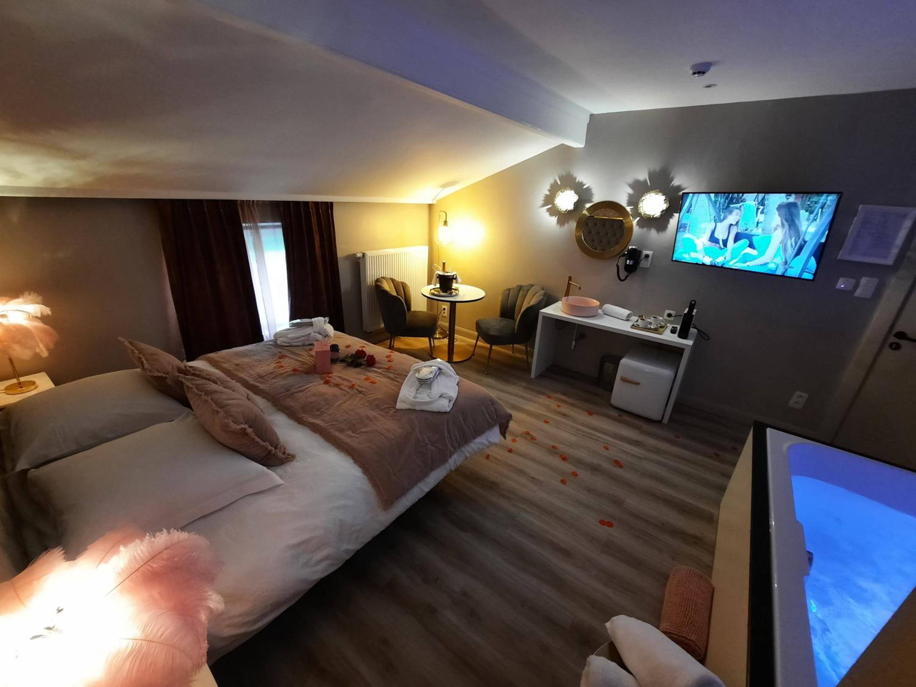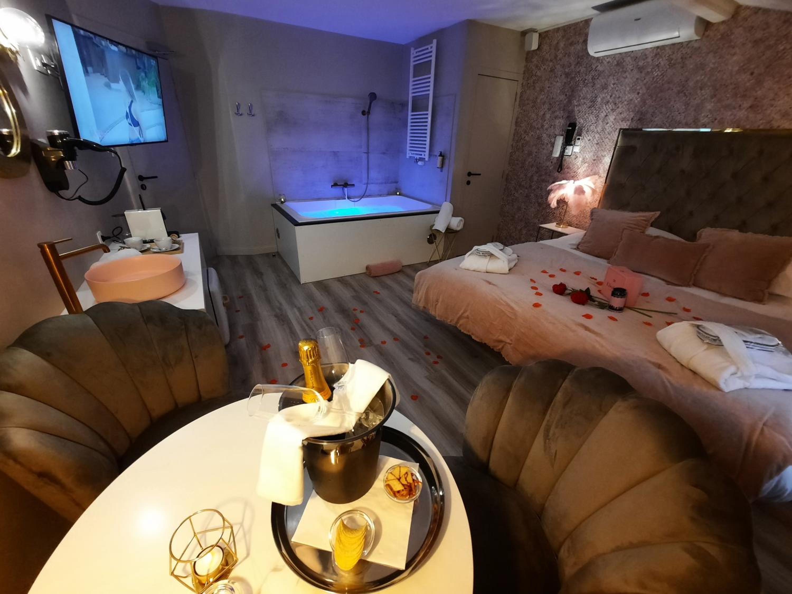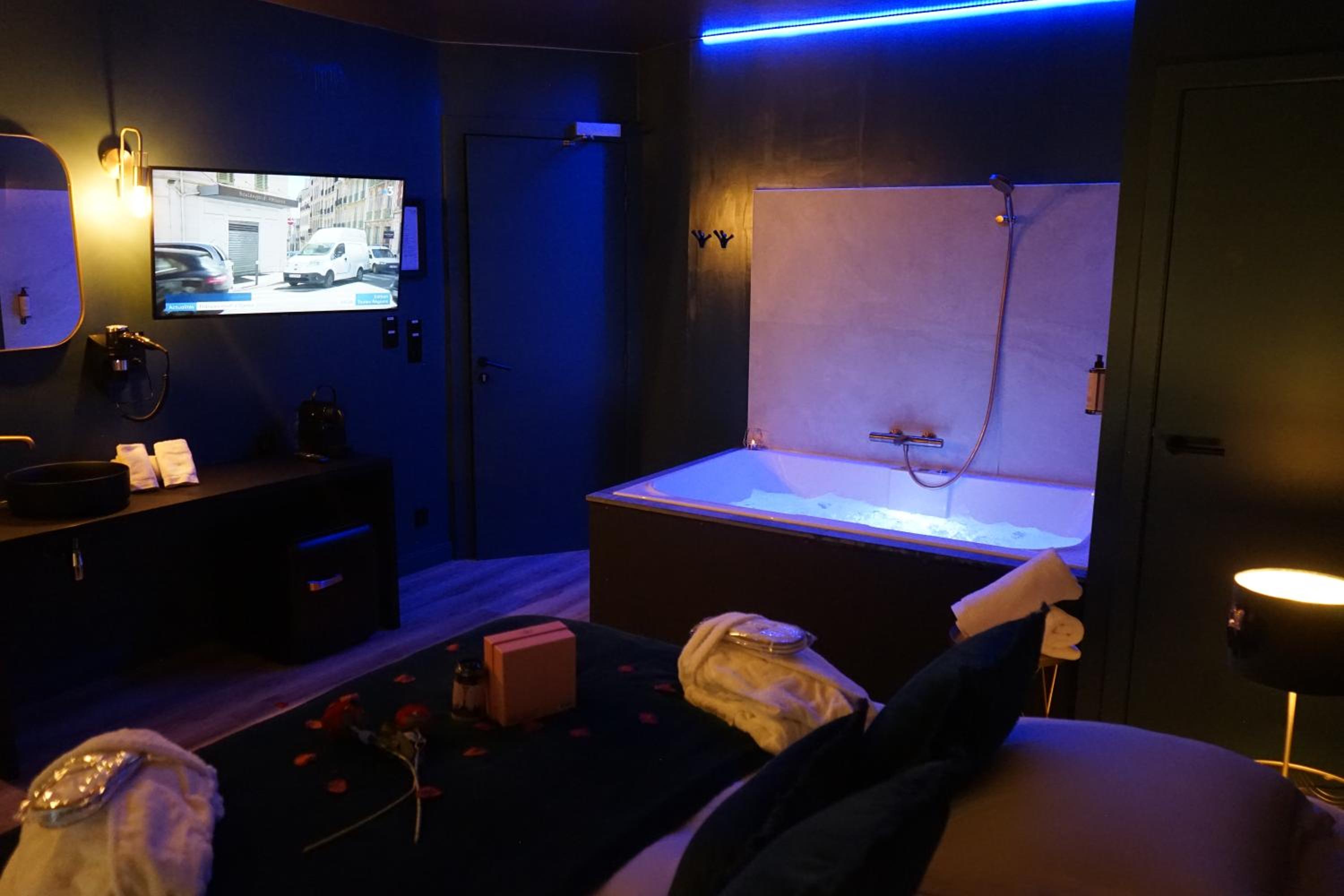 La baignoire balnéo et le lit
