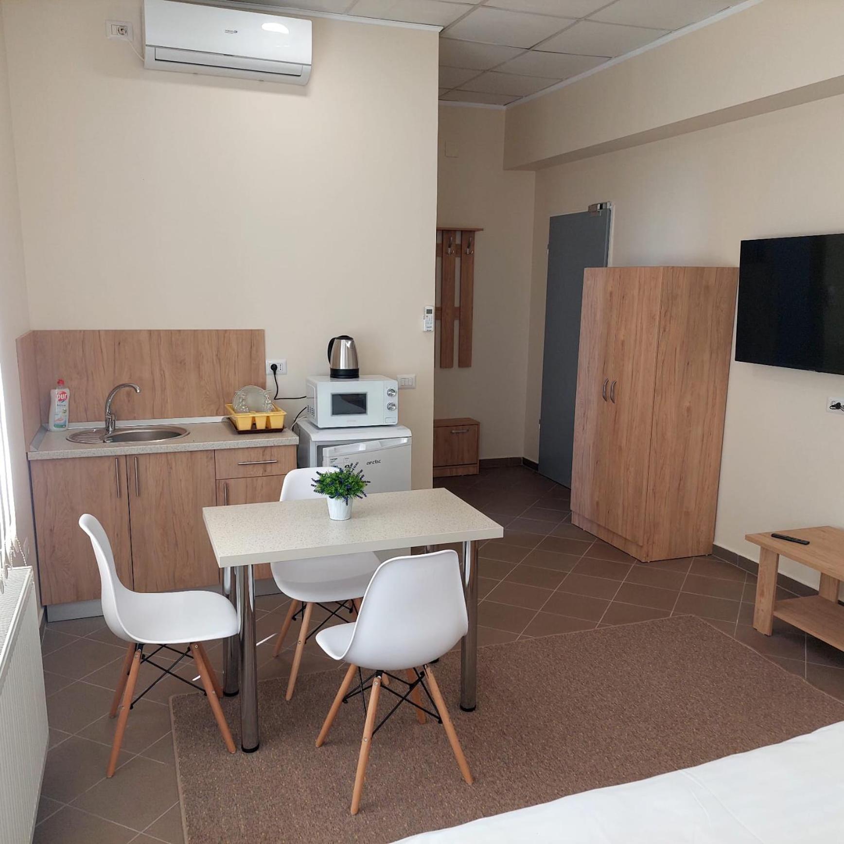 Modern Amenities: Enjoy air conditioning, flat-screen TV, and fully equipped kitchenette in our units.