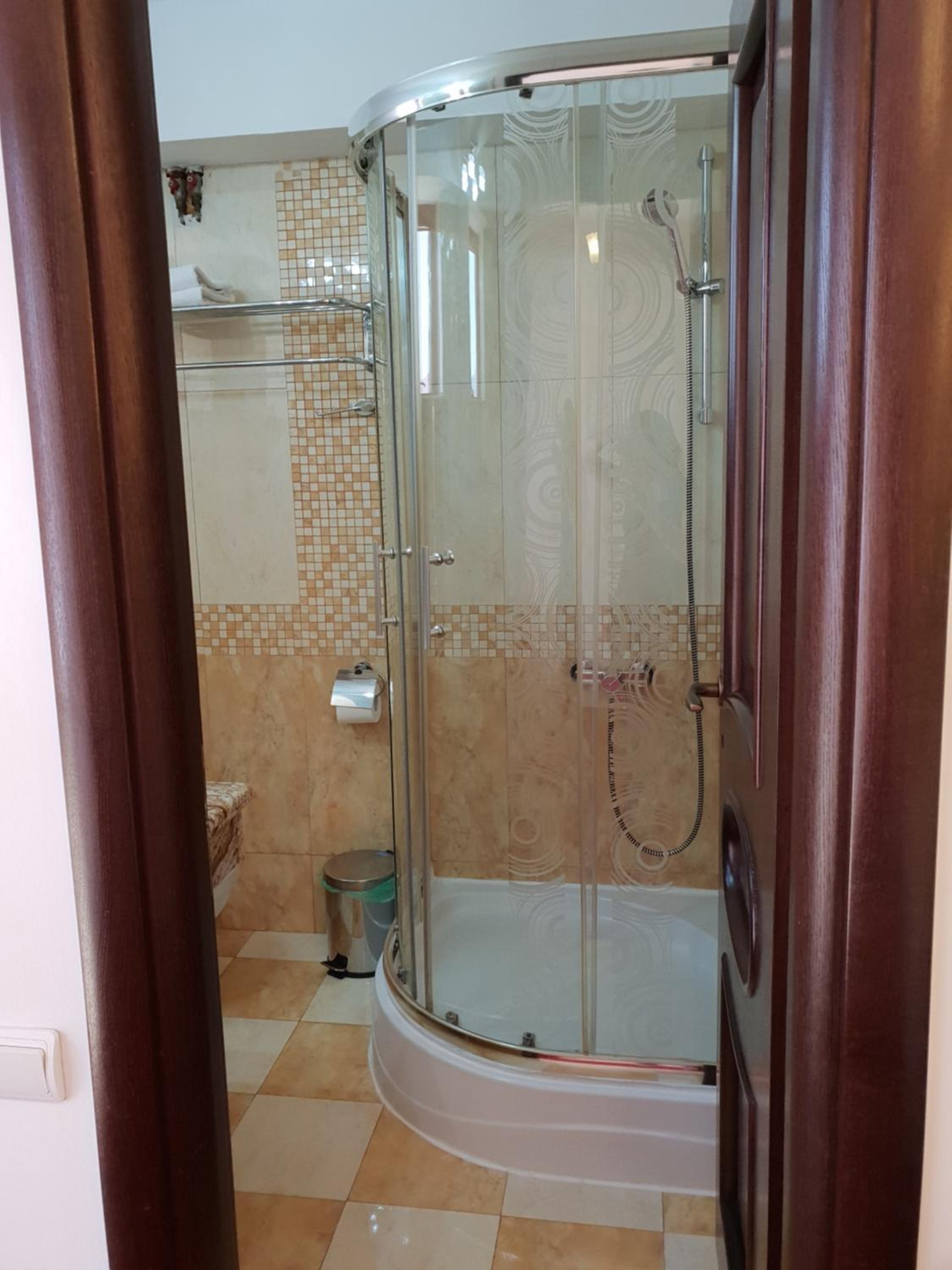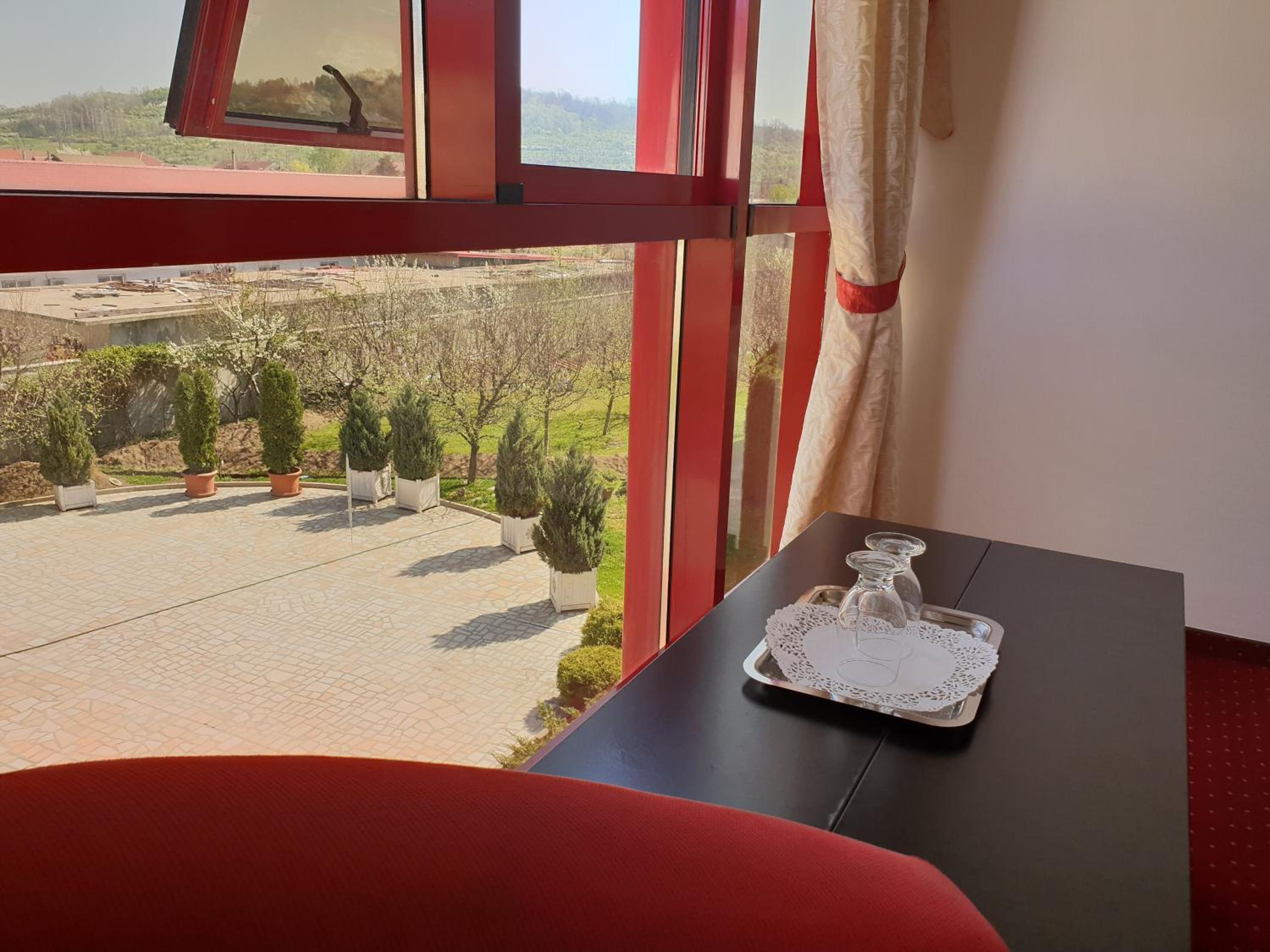 La recepție nu ne-a așteptat nimeni și nici nu a venit. Numărul de telefon care apare pe Booking după rezervare, nu mai este valabil. Am ajuns acolo, am așteptat minute bune până am hotărât să întreb o ospătăriță (au sala de evenimente) cum se procedează și mi-a indicat să mă adresez paznicului din parcare. Domnul a fost foarte amabil, dar nu cred că era de competența sa primirea oaspeților. A fost neplăcut să așteptăm în recepție în miez de noapte, după 7 ore de condus.