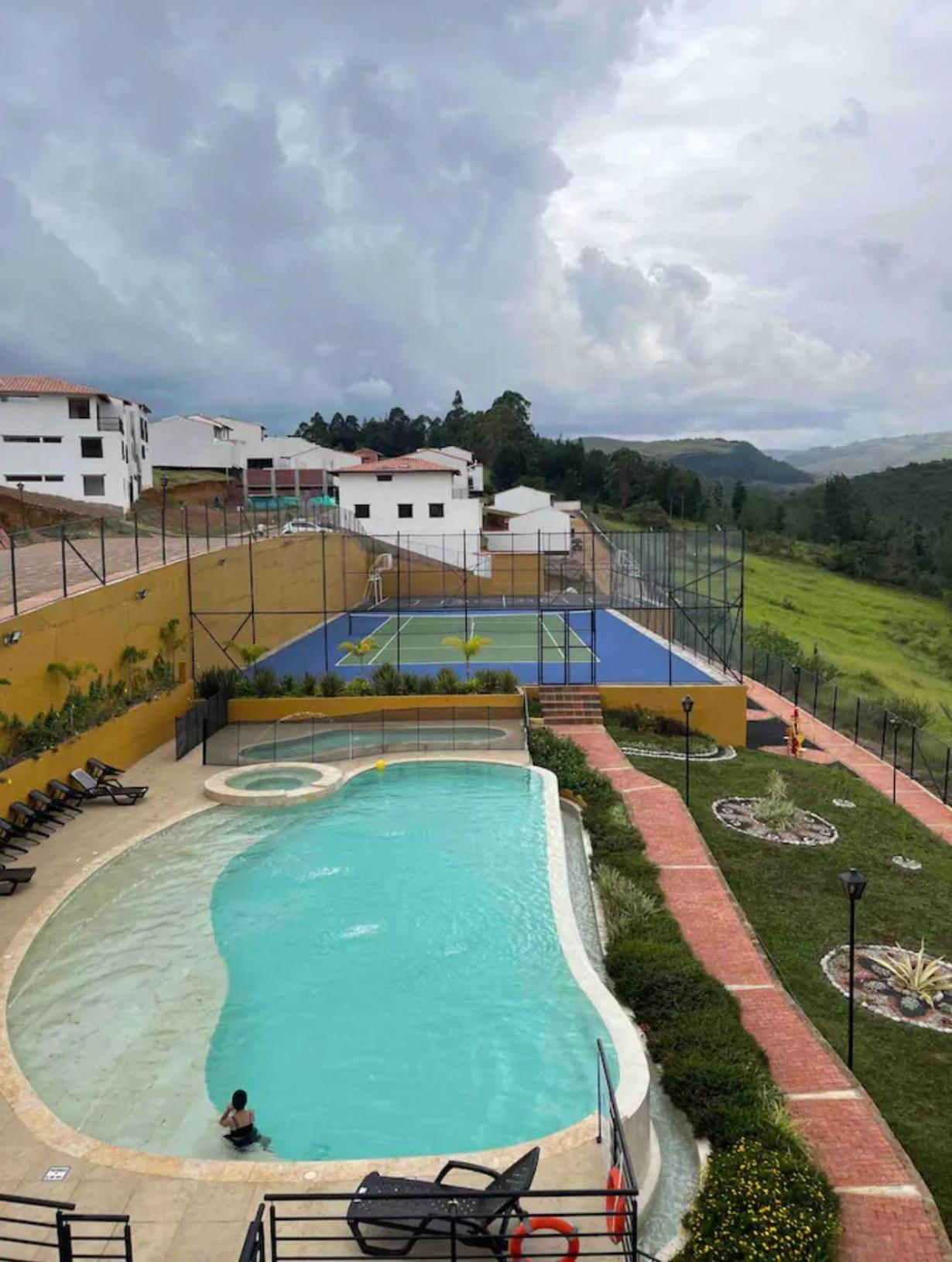 Located in Curití, Condominio buragua offers a luxurious escape near Chicamocha National Park. Indulge in Premium Amenities such as a hot tub, fitness room, and infinity pool, perfect for relaxation. Family-Friendly Facilities include kids' pool, play area, and outdoor equipment. Enjoy Comfort and Convenience with a well-equipped kitchen, terrace, and free WiFi. Immerse yourself in nature with cycling and garden activities. Book now for an unforgettable stay at Condominio buragua.
