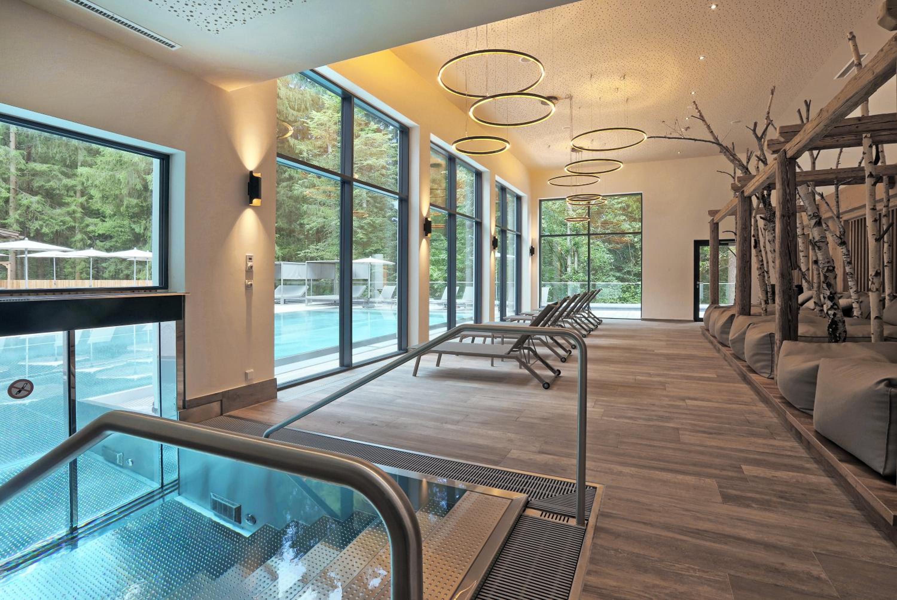 Indulge in relaxation at Aktivhotel Waldhof's large spa area, boasting both an indoor and heated outdoor pool. Unwind in various saunas, including a unique Tyrolean log cabin sauna, steam bath, and gym. Treat yourself to a range of beauty and massage treatments for the ultimate pampering experience.