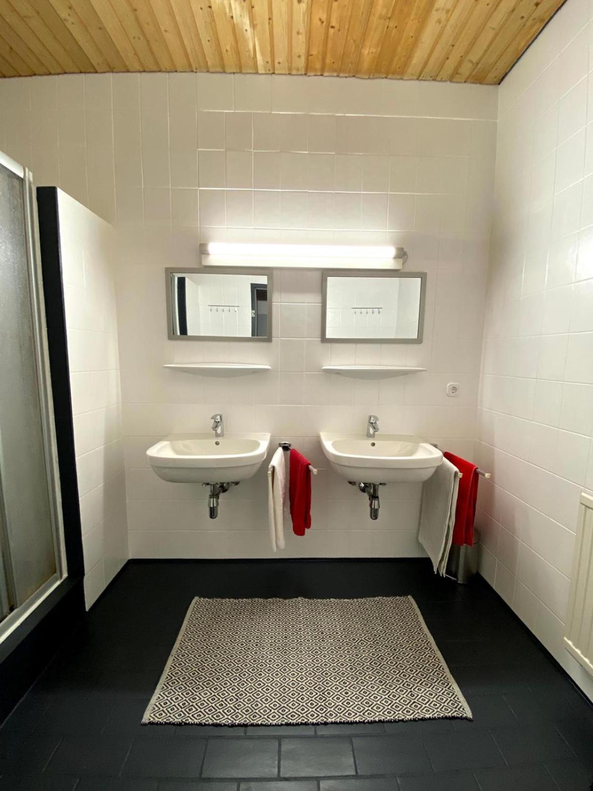 Ein großes Zimmer mit Dusche in den Bergen.