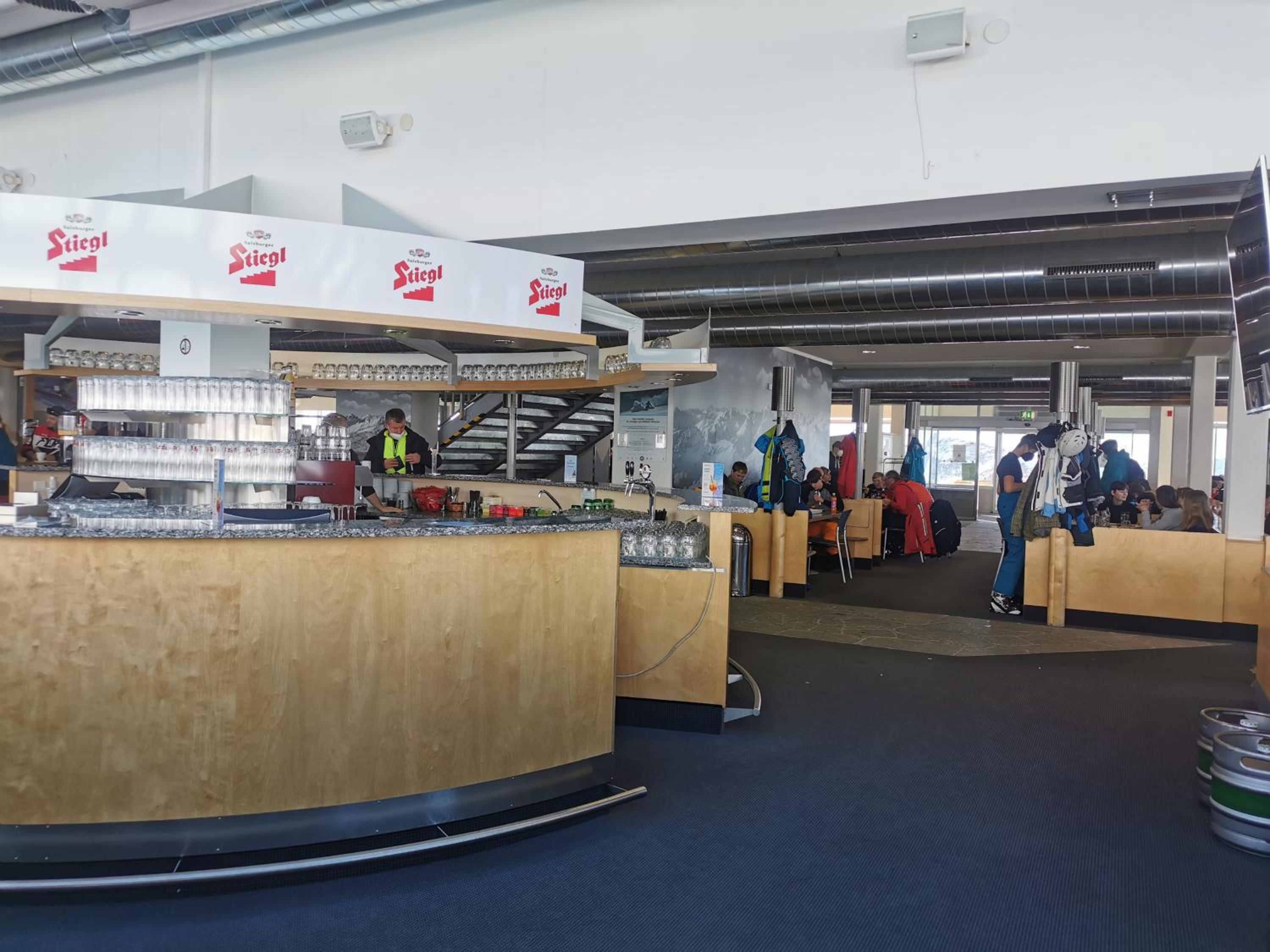 Restaurant food, mountain view from window, direct access to skiing