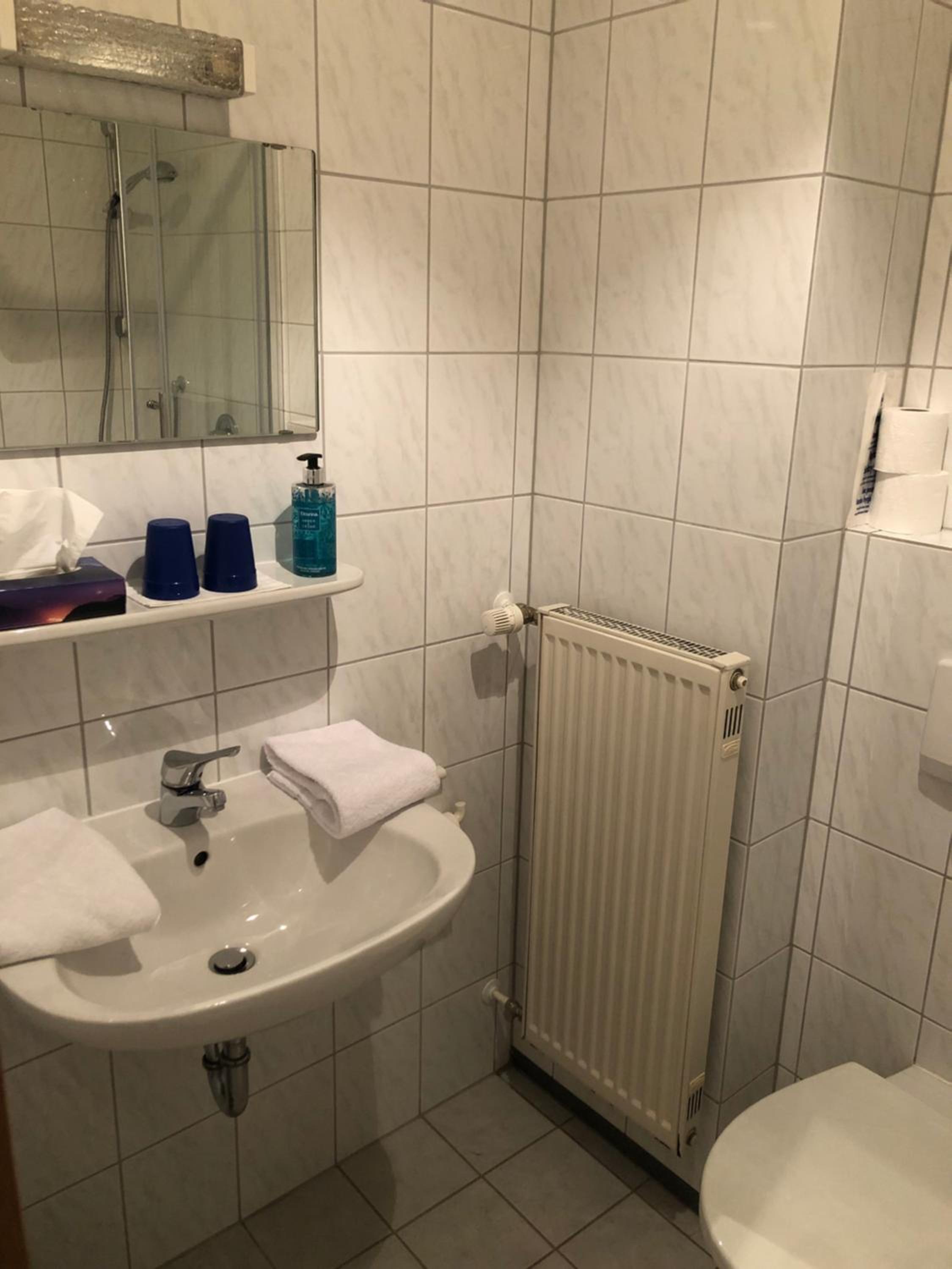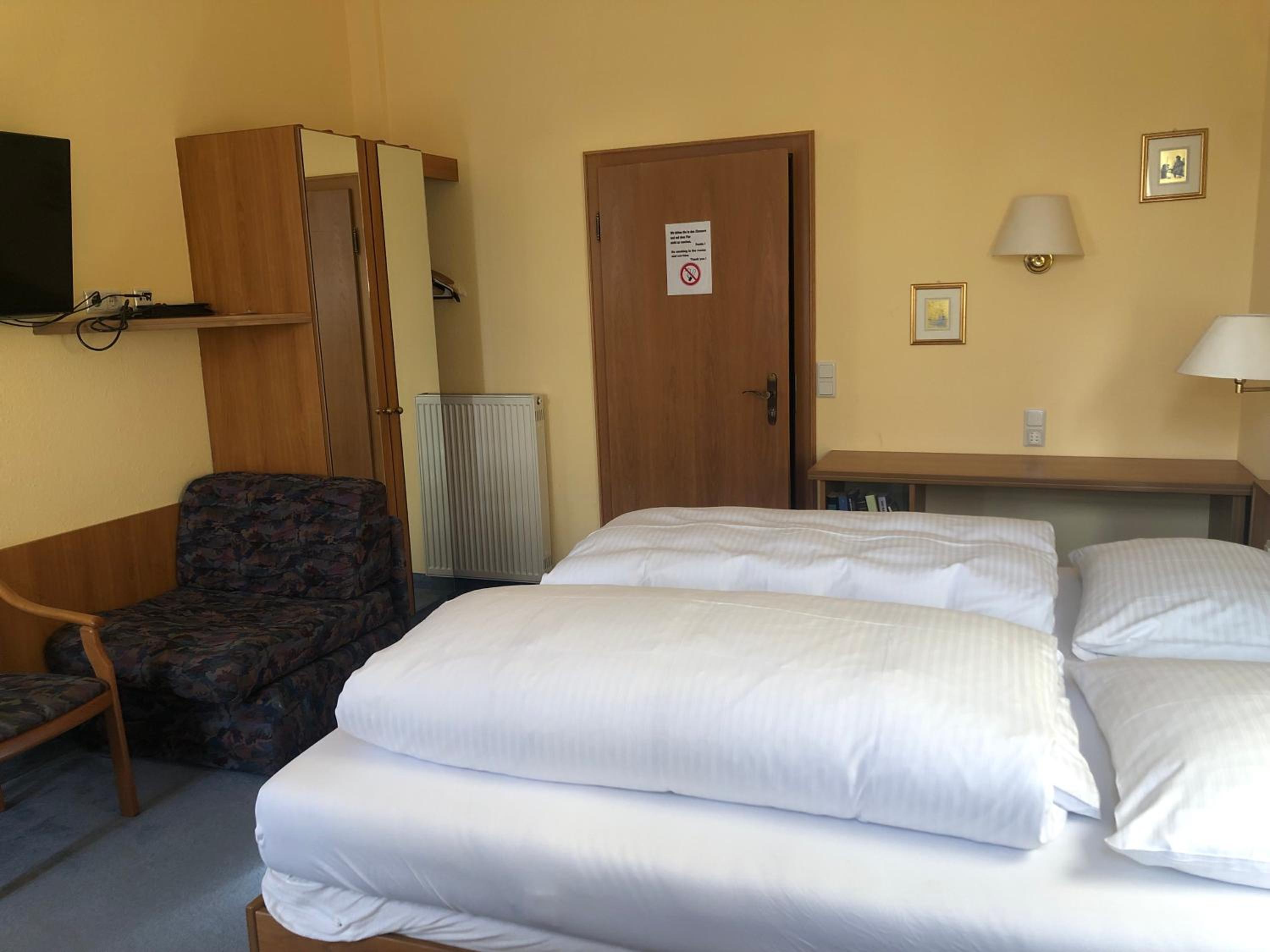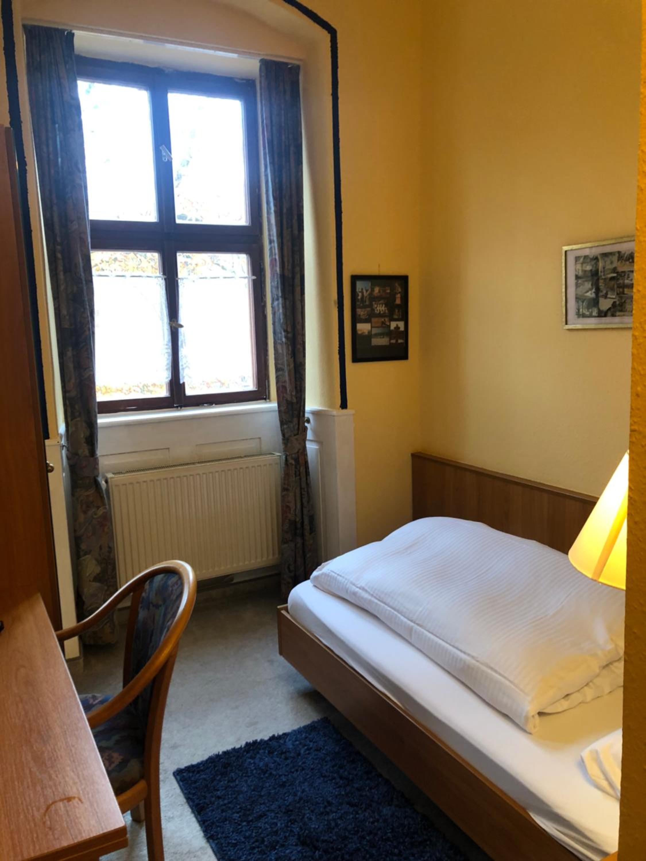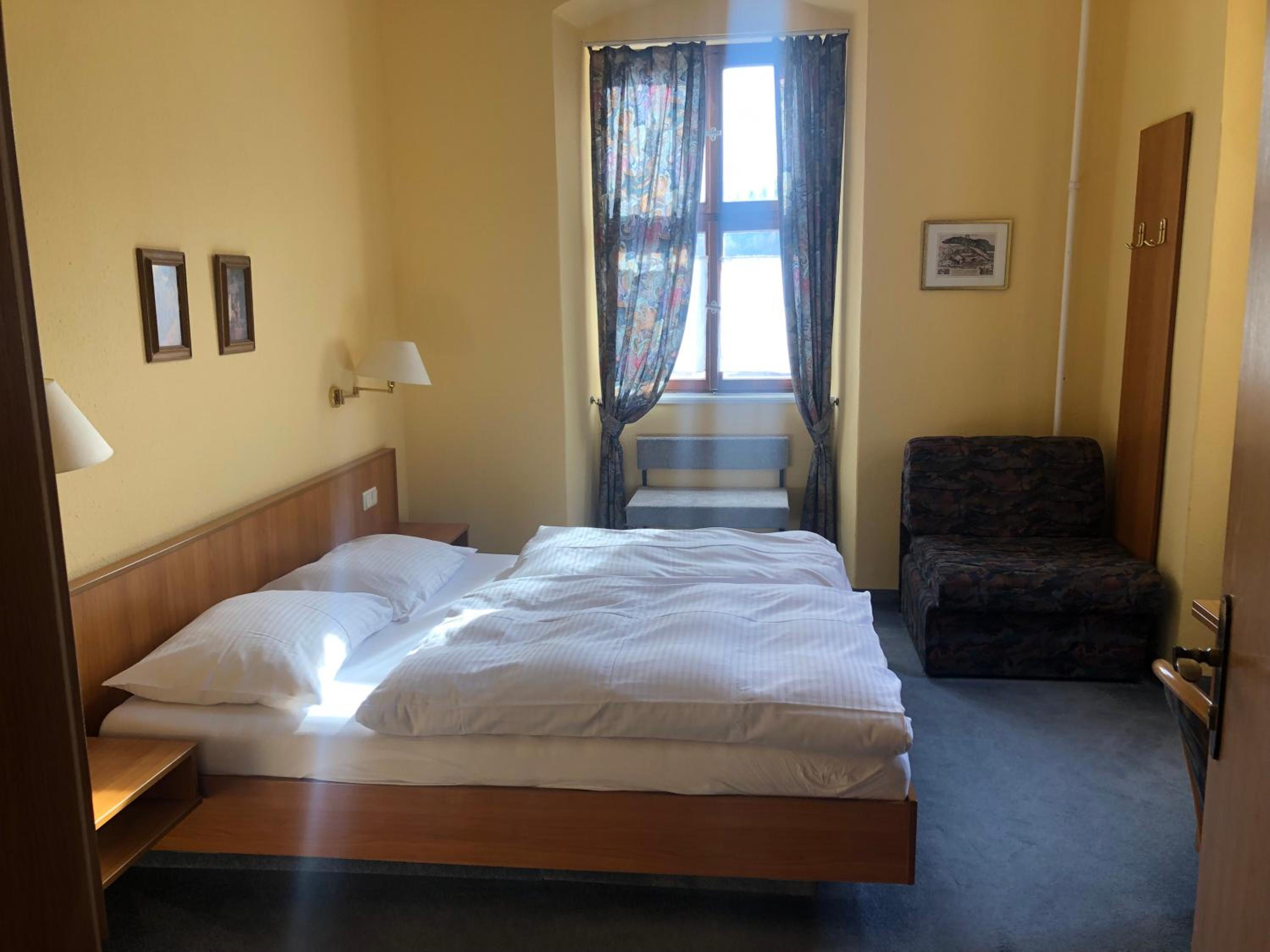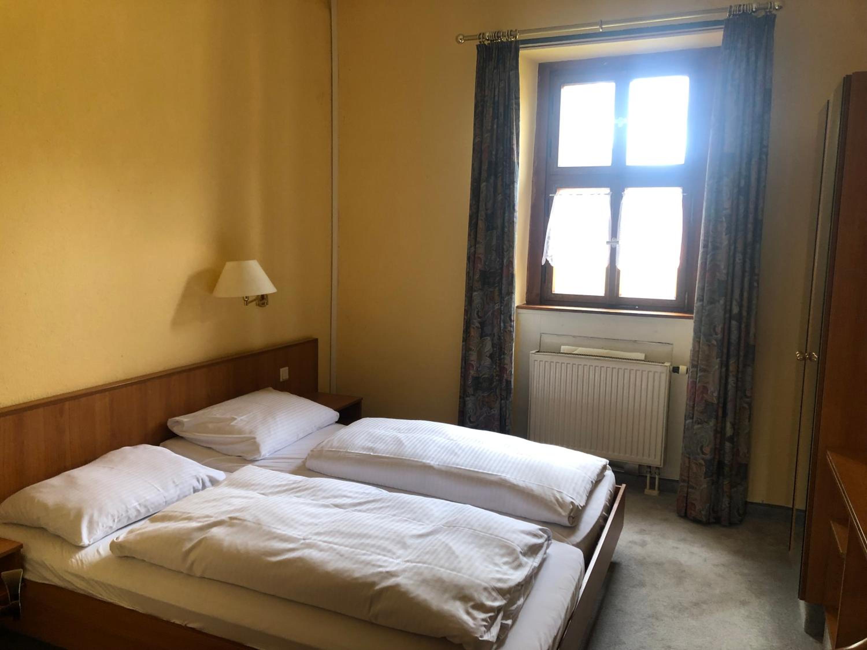 Kleine Zimmer in altem historischem Gebäude, sehr sauber und mit SAT-Fernseher ausgestattet. Genügend Steckdosen im Zimmer vorhanden. Wallbox für E-Auto gegenüber und kostenlose Parkplätze direkt vor dem Gasthof.