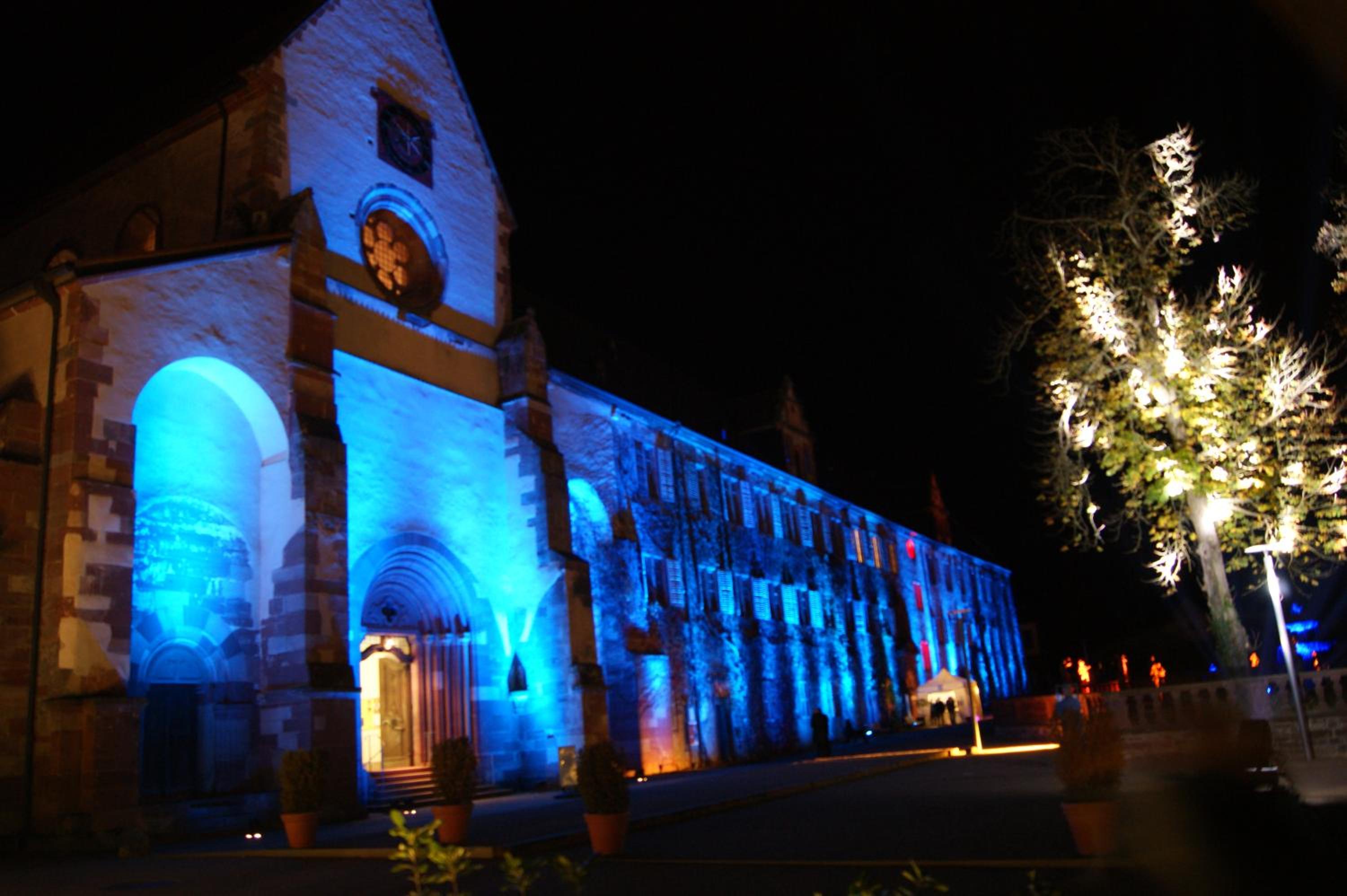 Lage gegenüber des Kloster Bronnbach das nachts schön indirekt beleuchtet wird. Sehenswürdigkeit direkt über die kleine kaum befahrene Landstraße erreichbar.