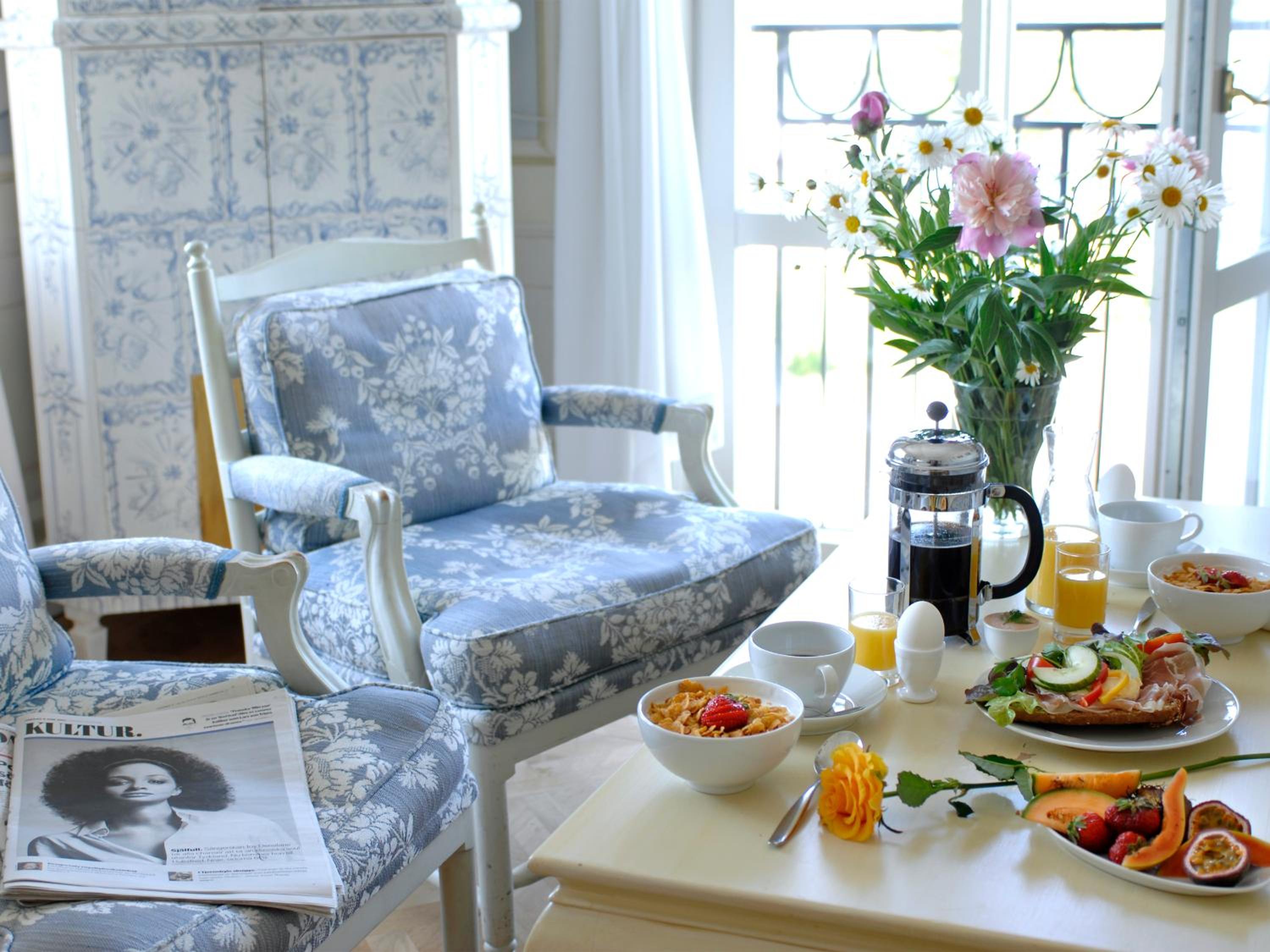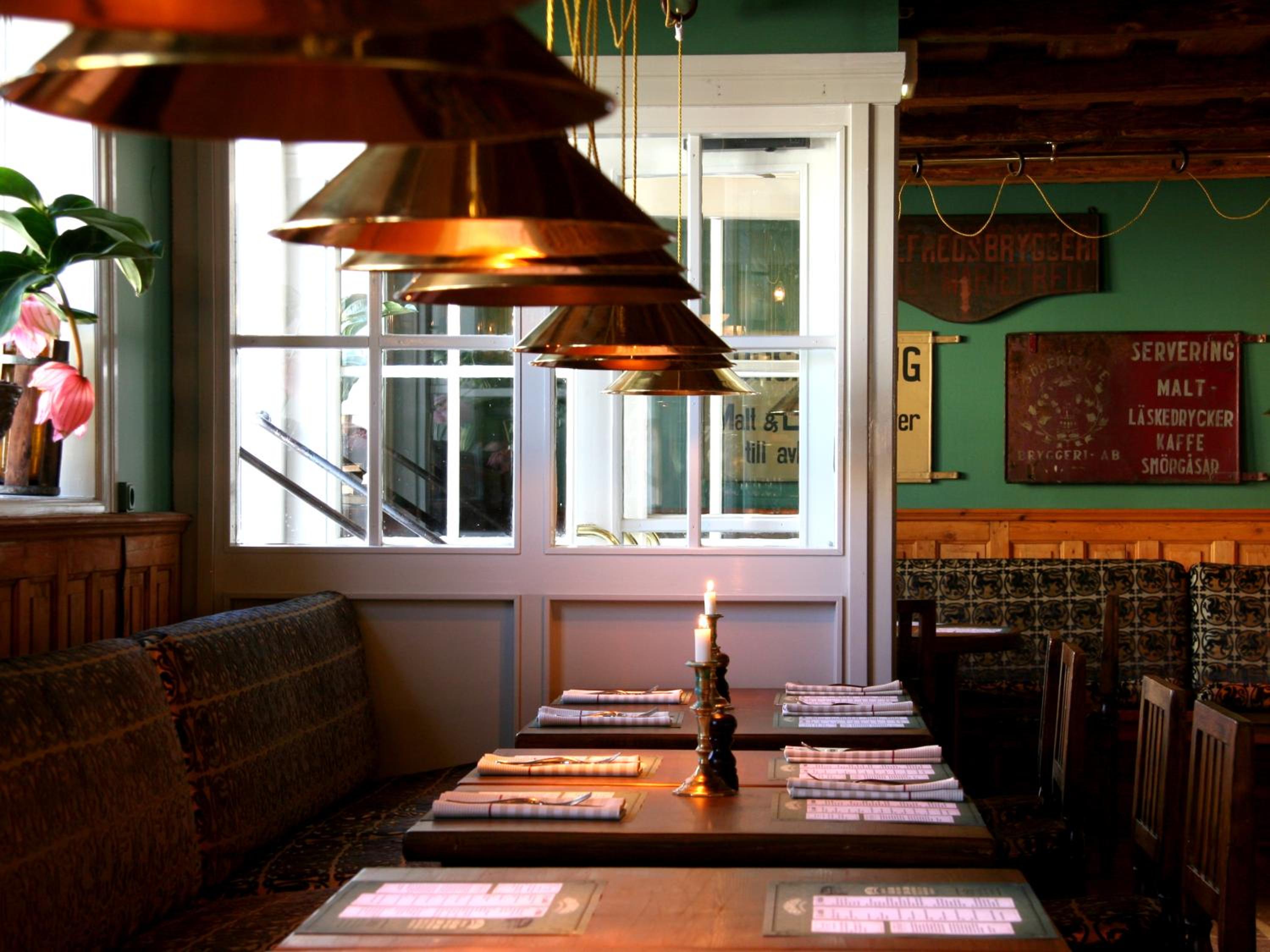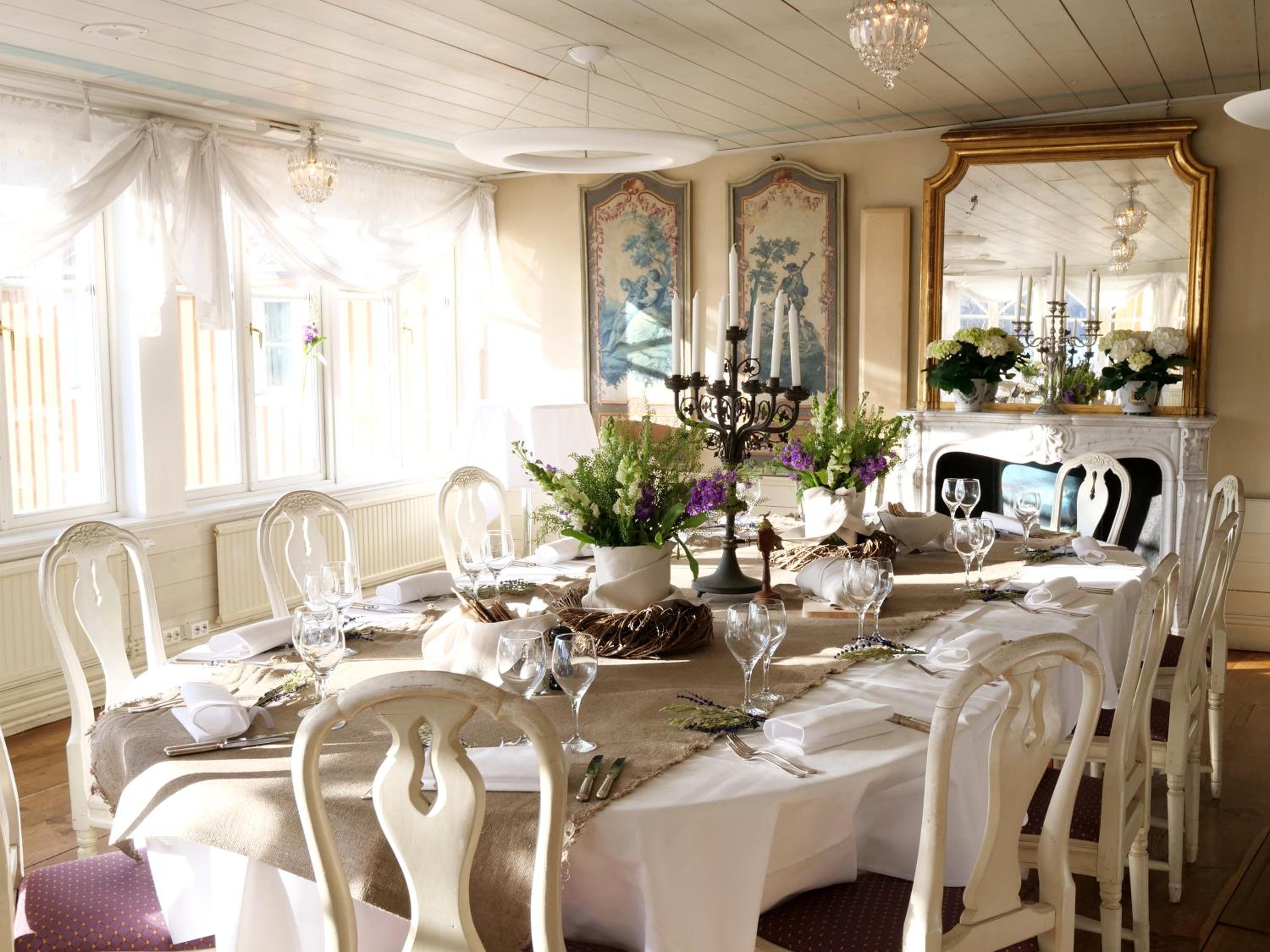 Den gammaldagsa stilen och känslan som passar ihop med slottet mitt emot. Fint i alla olika rum. Fint dukat i matsalen.Fin och trevlig personal.