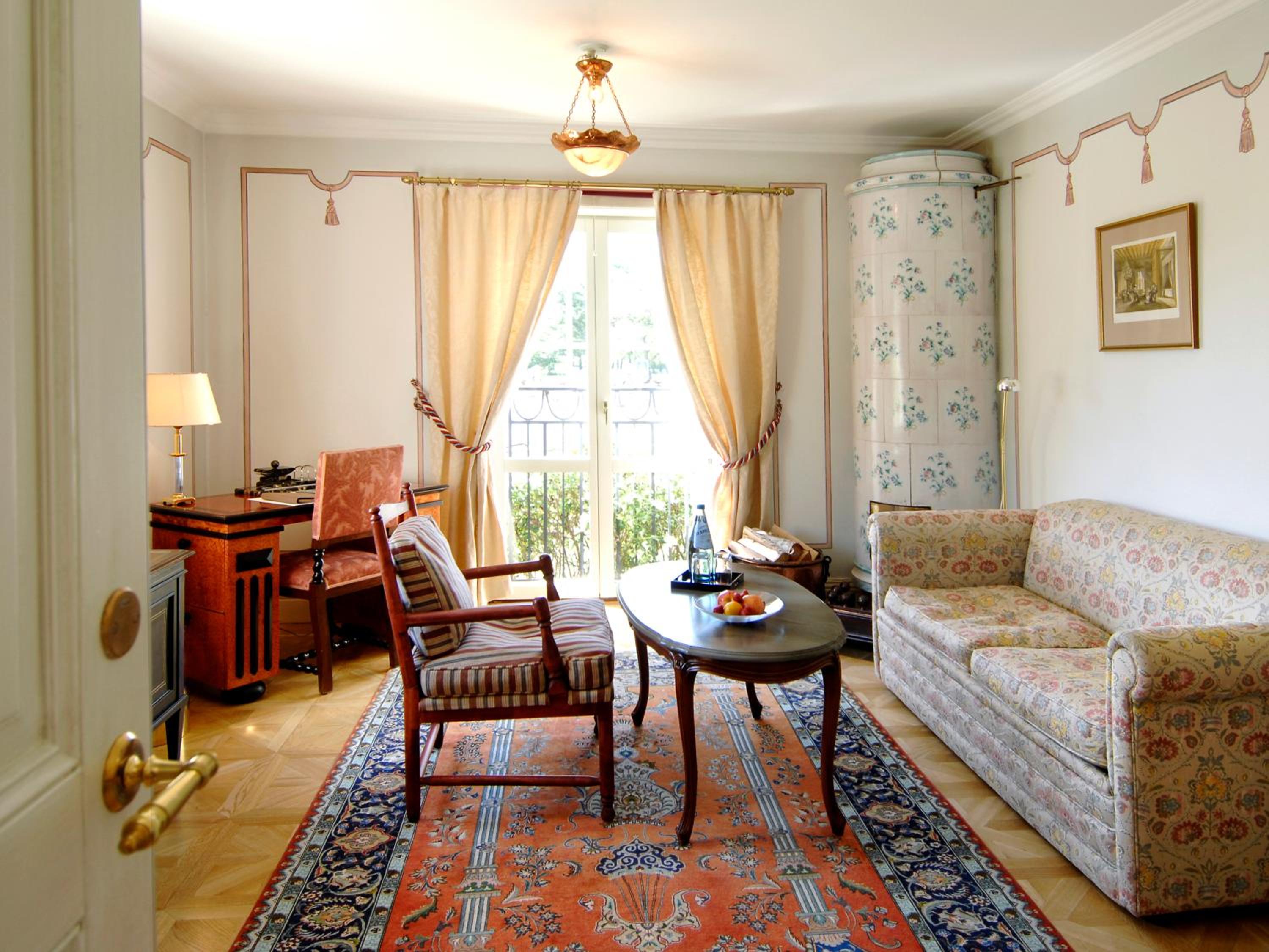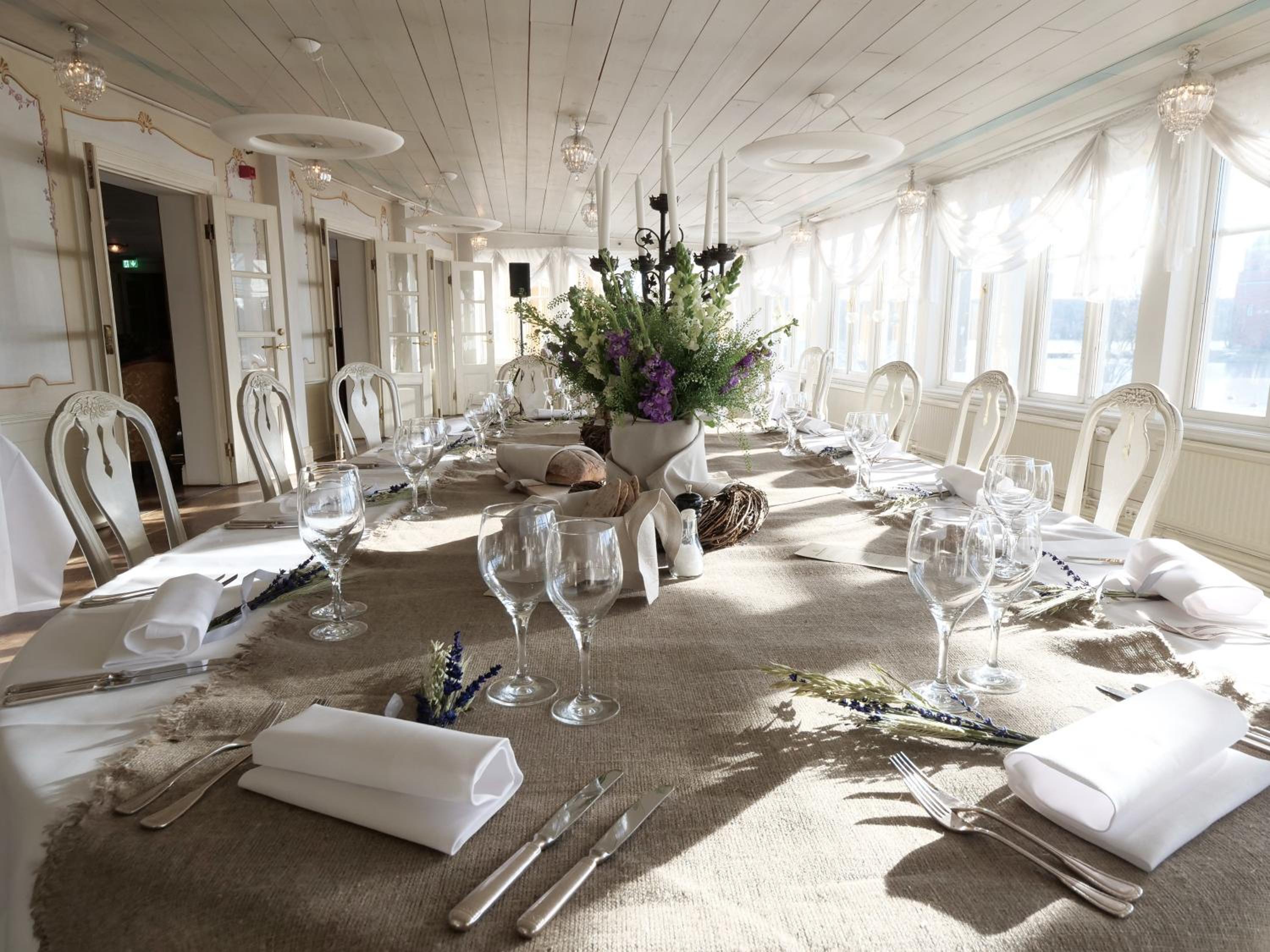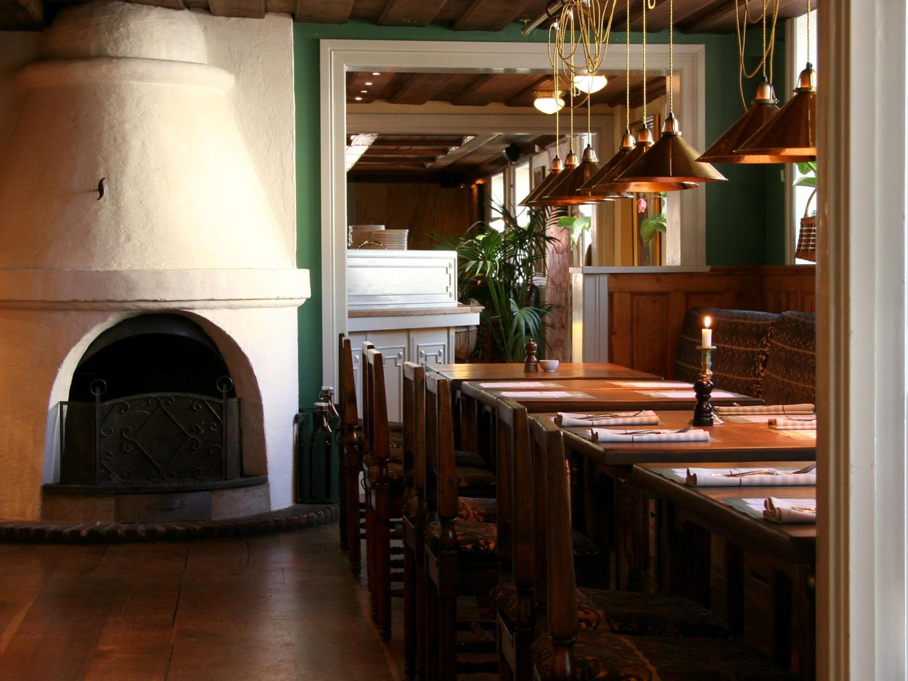 Den gammaldagsa stilen och känslan som passar ihop med slottet mitt emot. Fint i alla olika rum. Fint dukat i matsalen.Fin och trevlig personal.