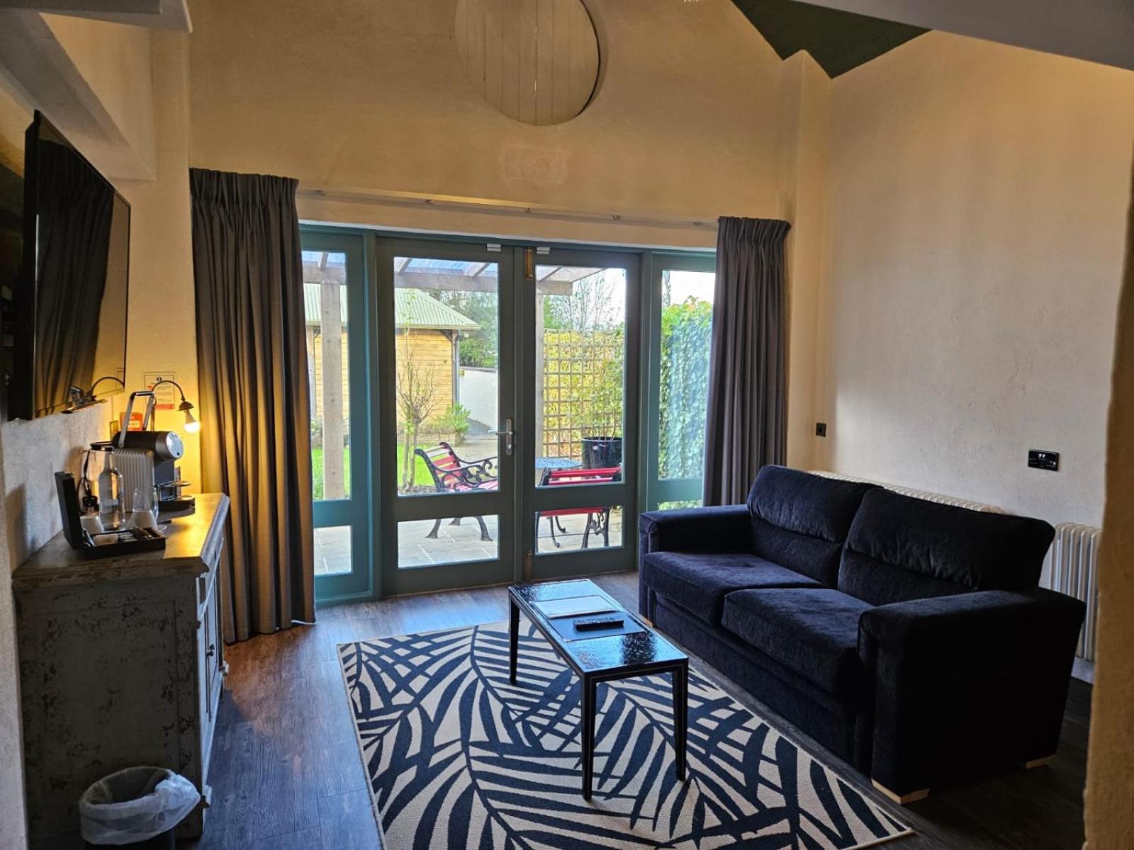 The patio room was very nicely laid out and had a separate sitting area. My daughter had to take an on line class late at night from the US, so having a separate spot with a desk was perfect. Although in Oct the outside patio was alittle too chilly it would be very nice in warmer months. Loved it gere!