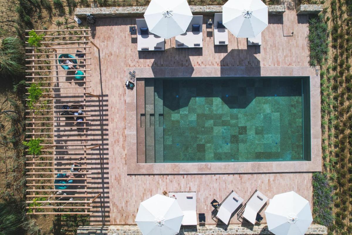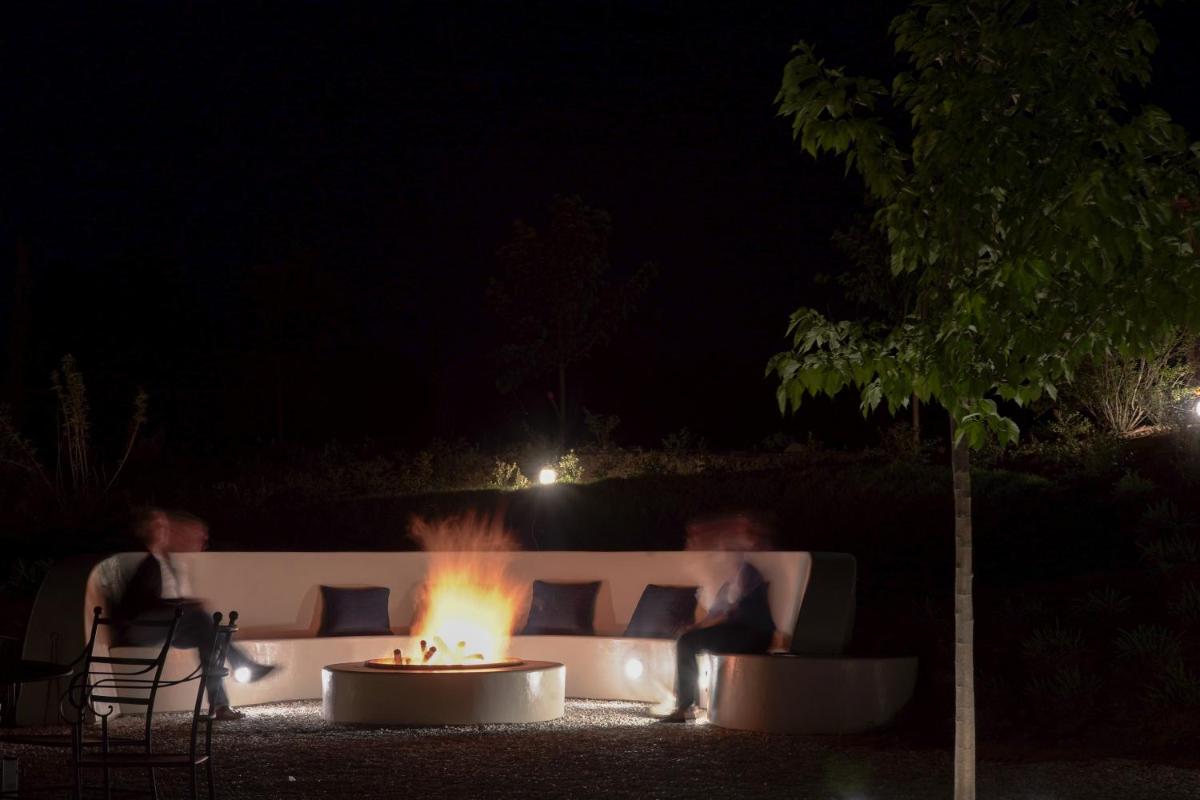 Everything - the location, the rooms, the swimming pool, the fire area at night.