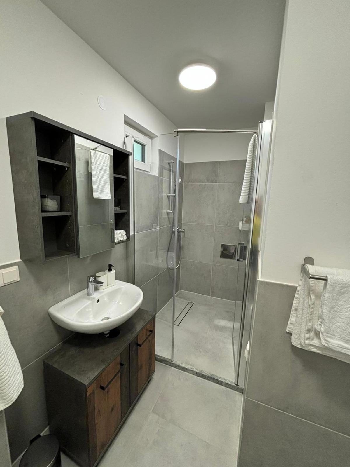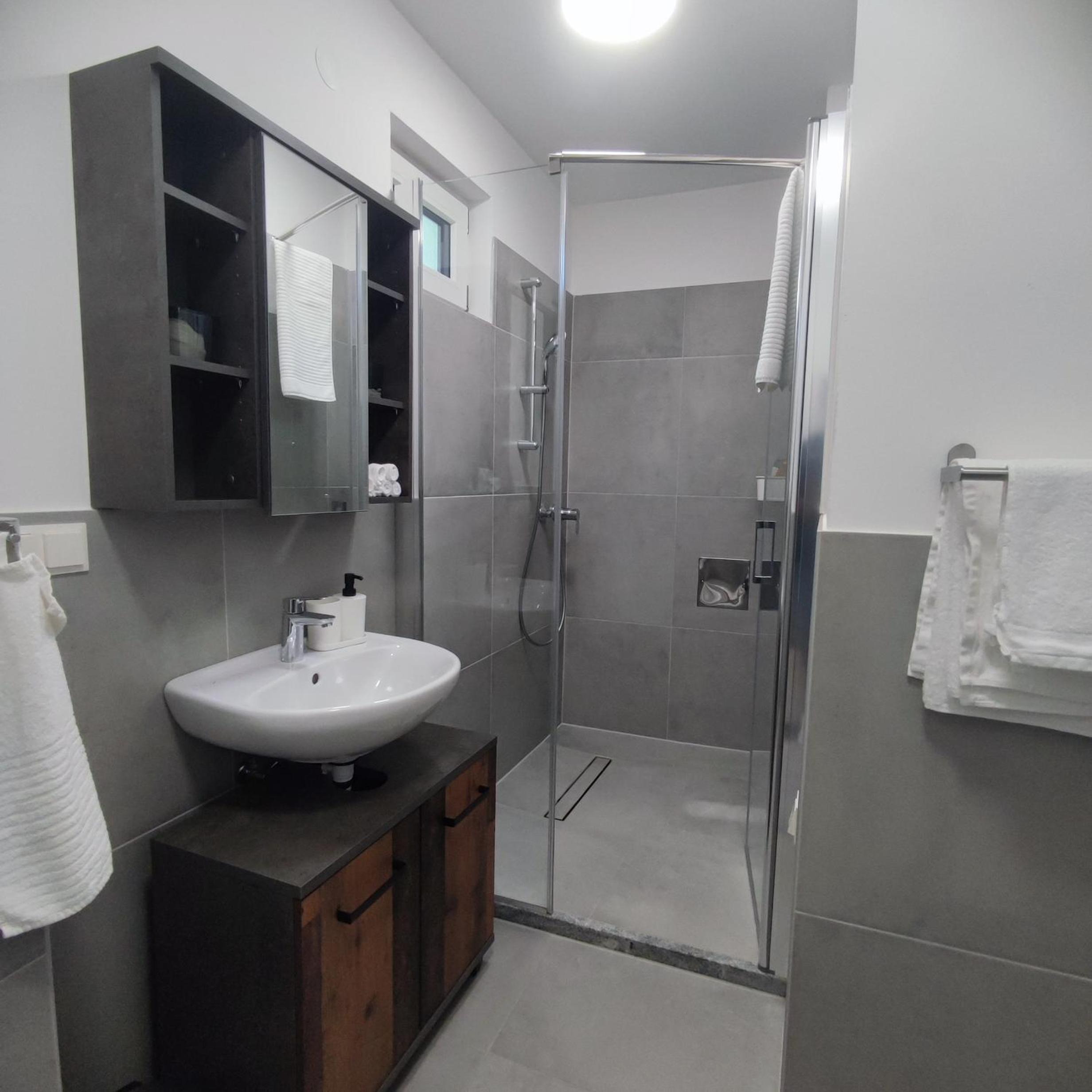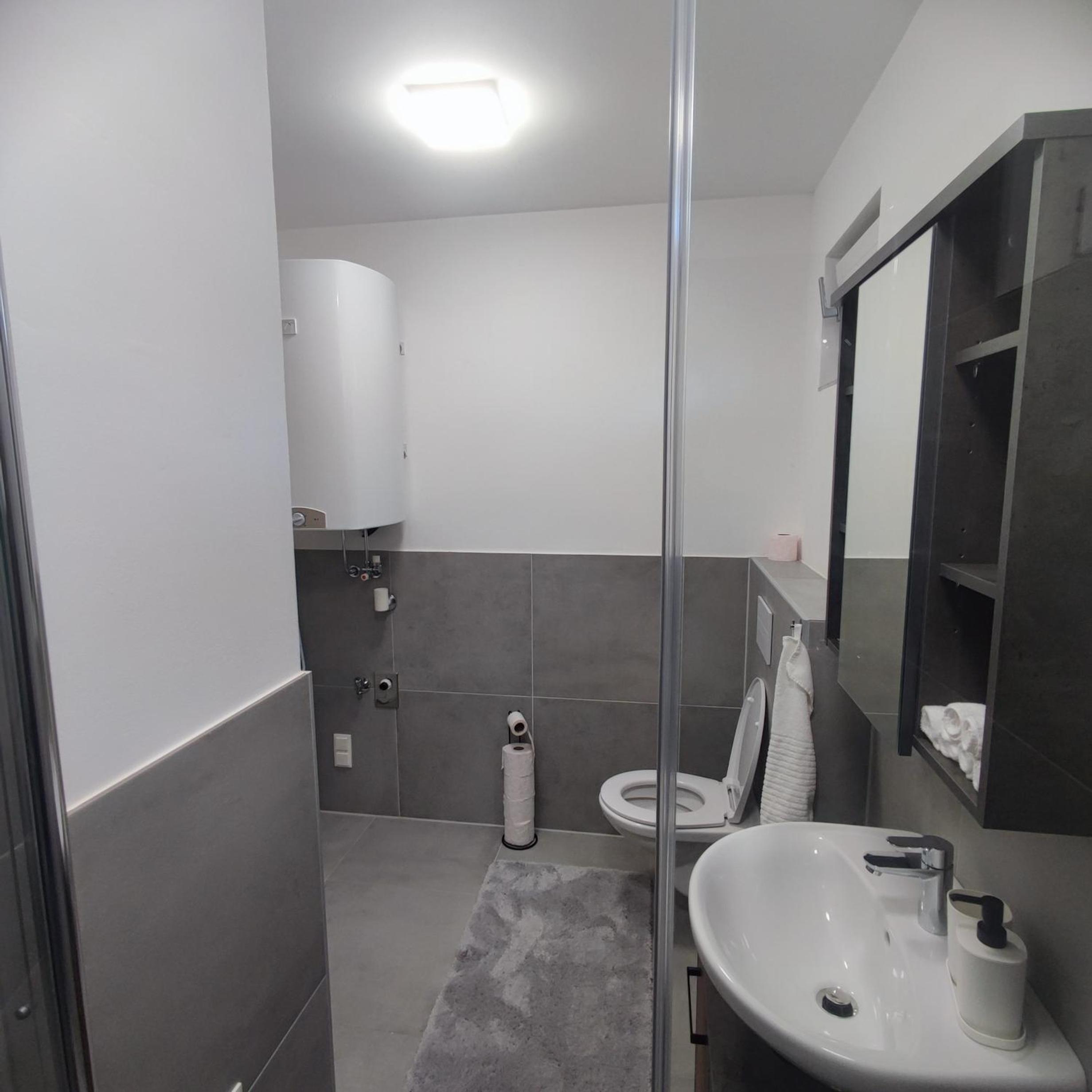 Apartment is in a newly built building, behind a gate, on the ground floor. Parking spot is like 10 steps from terrace doors, so you can get to your car really easily. There are two chairs and a table on the outside terrace. The whole place feels pretty new. The kitchen is well equipped with all the essentials, there even is a dishwasher. Big kitchen table is a plus and two comfy sofas. I loved the blinds in the bedroom. The shower is just huge, four people could easily fit in. Floor heating throughout the property is a huge plus that heats up the space efficiently. The location is top notch, within ten minutes you can get to Florisdorf station, where you can catch either S-train, REX train or U6. I highly recommend accomodation in the vicinity of this station, it really is a game changer for transportation in Vienna. Overall this apartment is stupid great value for money and definitely worth visiting.