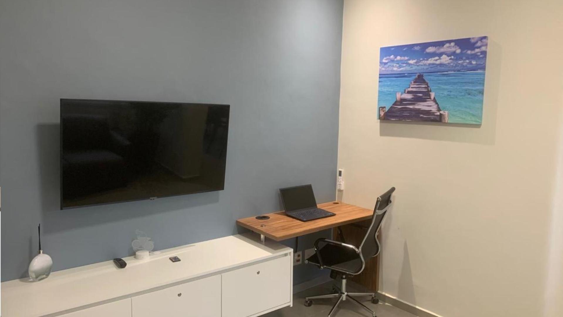 Tudo bem completo, cozinha bem equipada com tudo que precisa, tem até máquina de lavar!!!