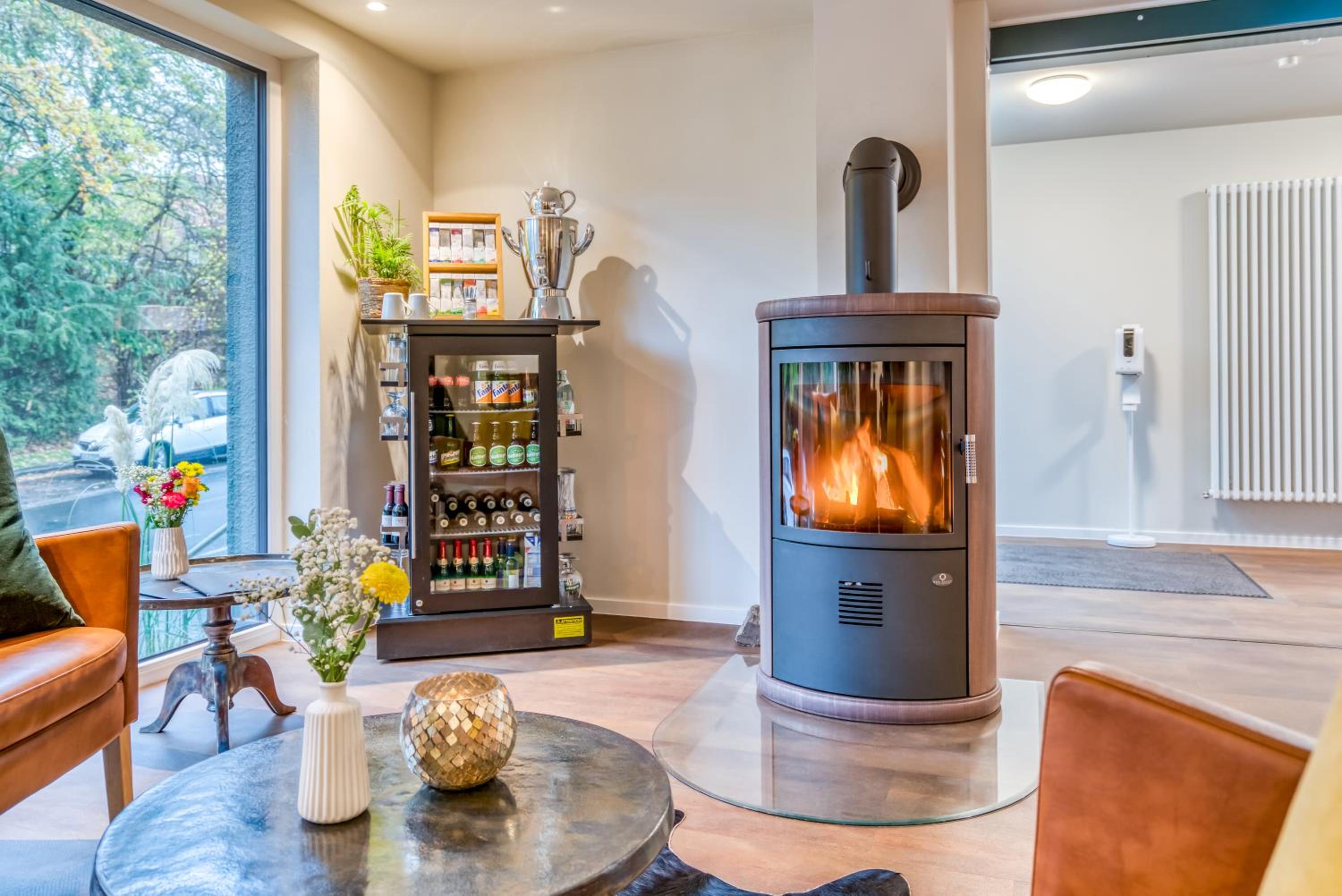 leider gibt es in den Zimmern keinen Wasserkocher und keinen Kühlschrank