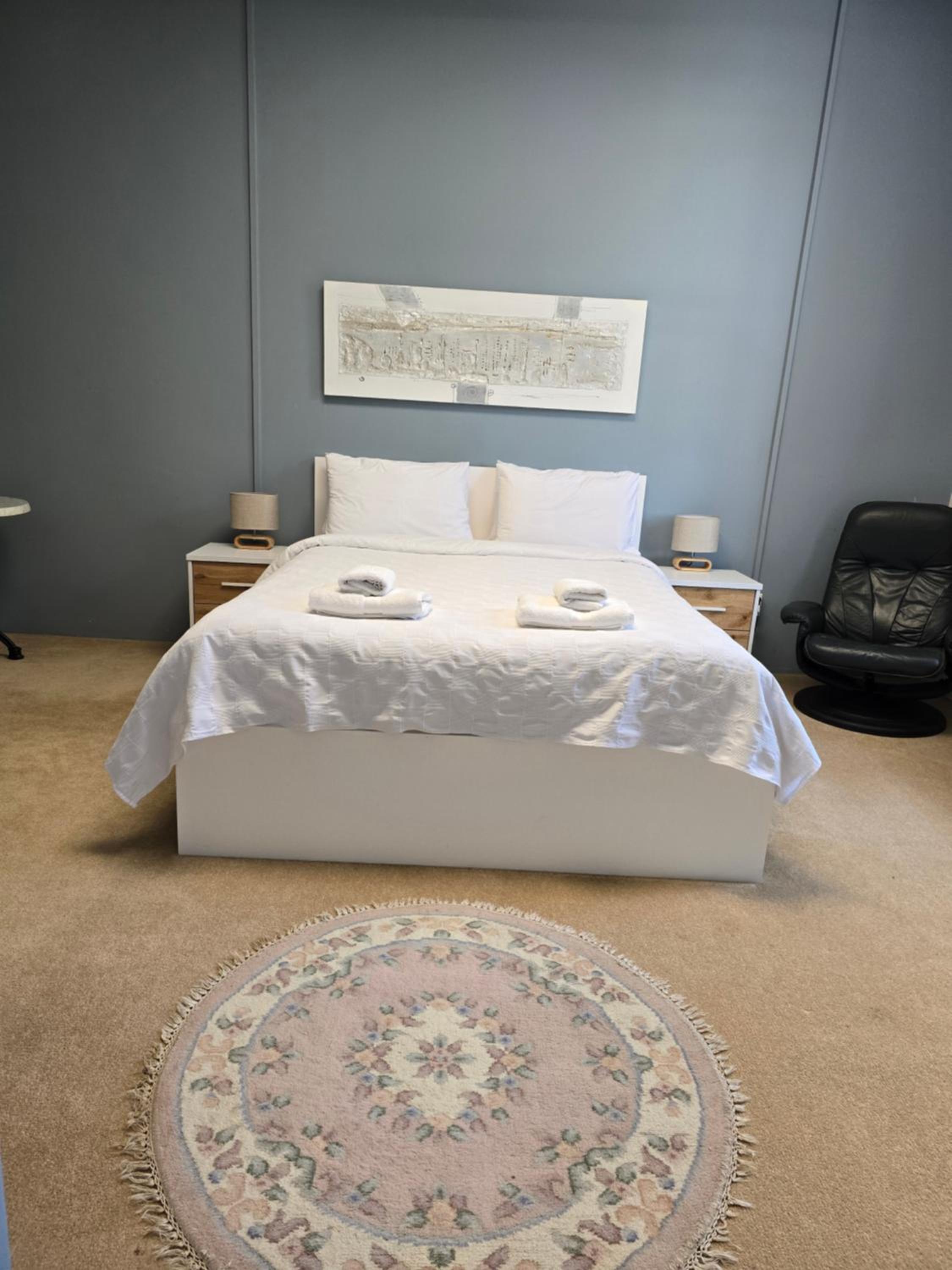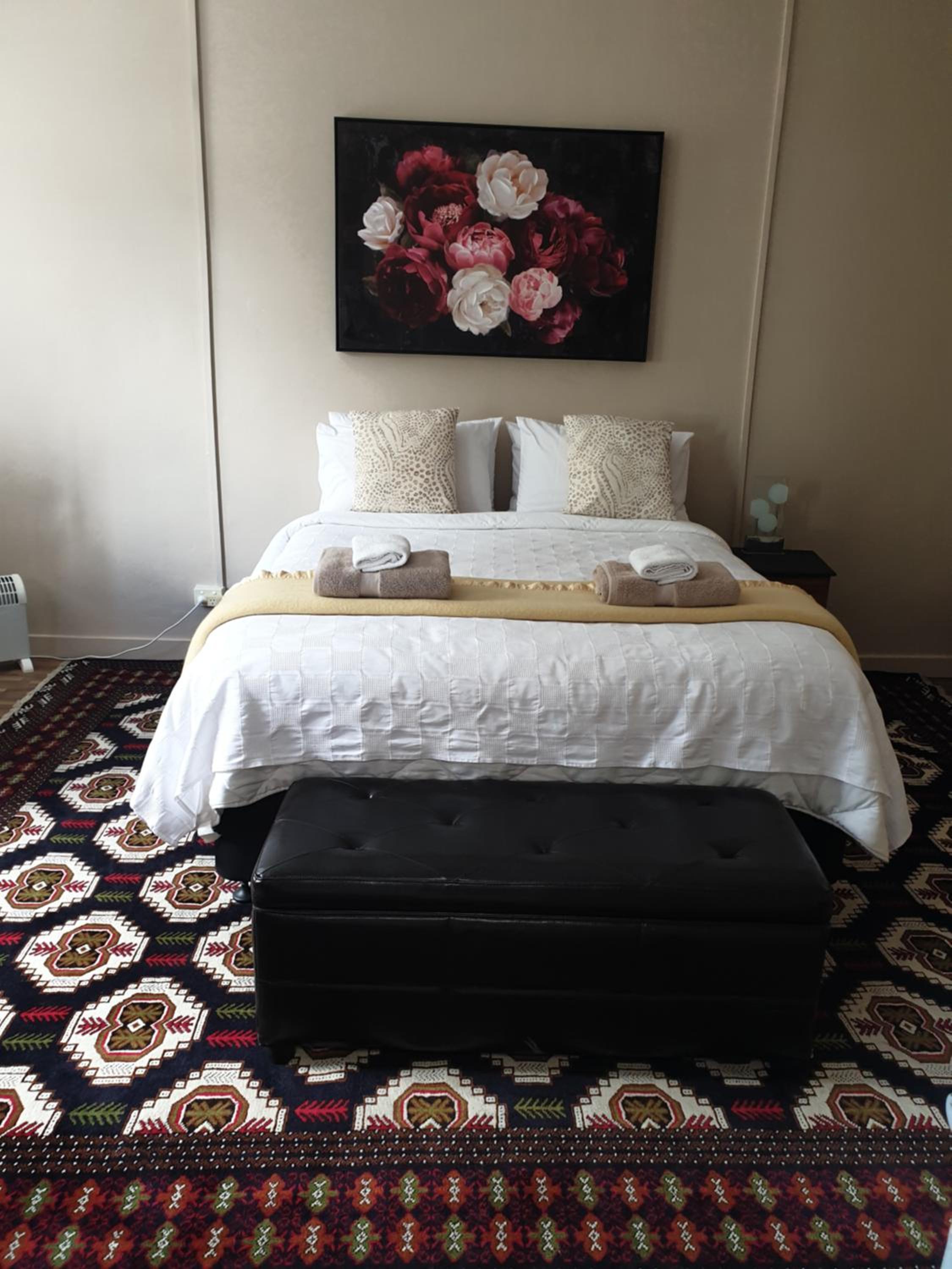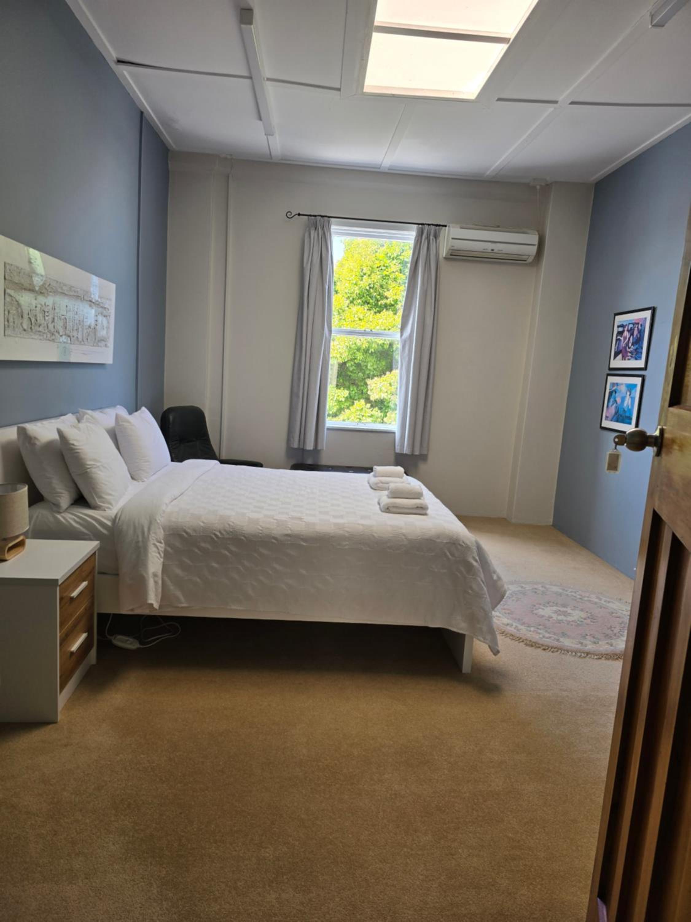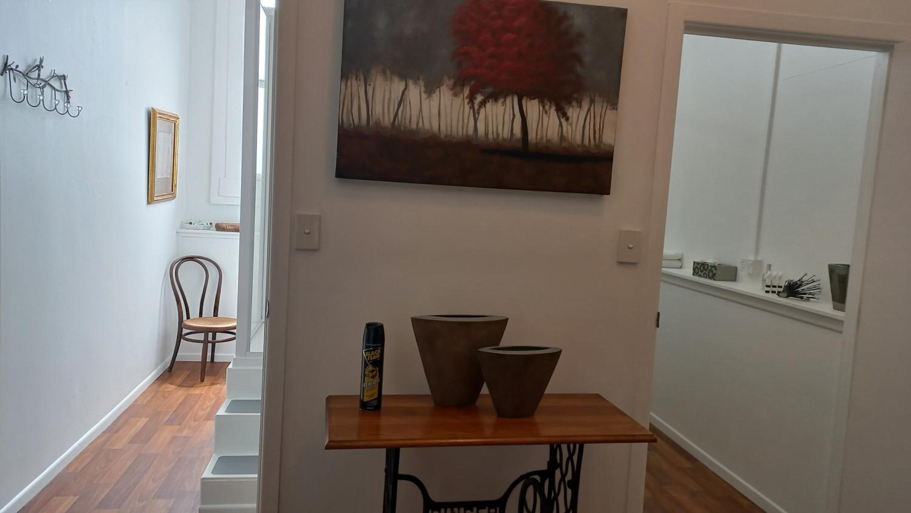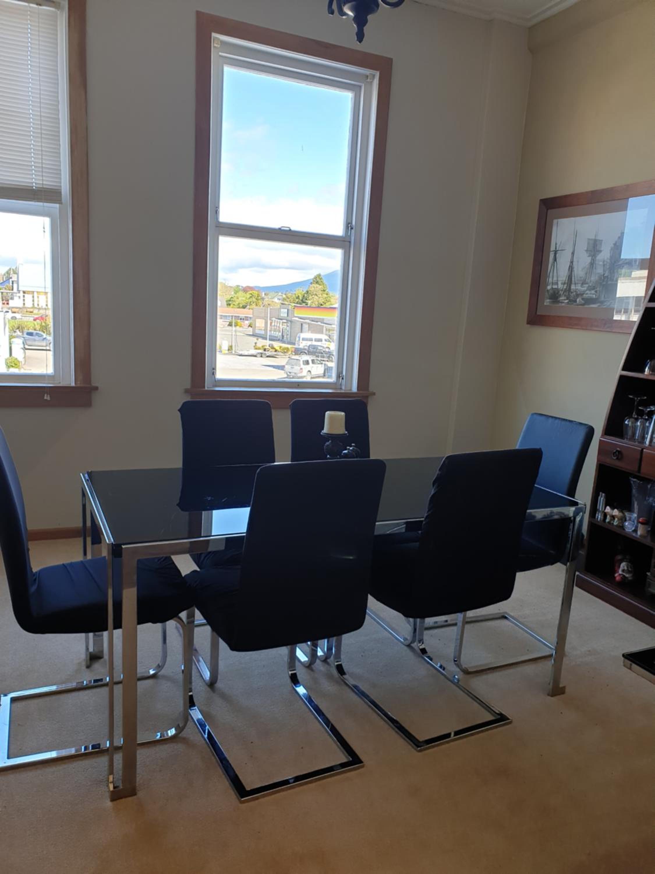Location is very convenient right in town centre. Just a 5 minute walk to restaurants etc. Easy to find thanks to exact instructions texted to my phone. Staff were excellent, the owner offered the use of her personal garage to store our touring motorbikes which was wonderful. One small concern we had with bedding was attended to right away by a lovely helpful lady.The bathrooms were exceptional for cleanliness and decor. The kitchen was super clean and spacious and the adjacent dining room was a delight with lovely decor and a view of Mt Egmont. The owner has decorated to n excellent standard.
