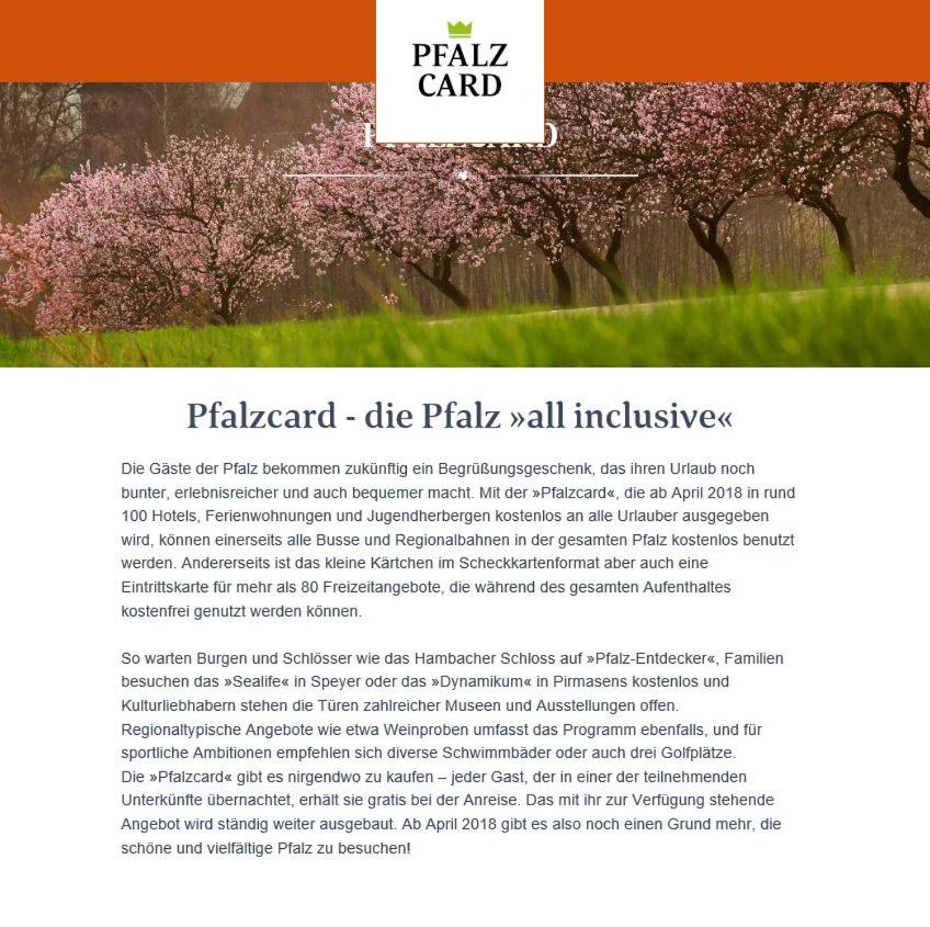 Guests booking this accommodations receive the Pfalzcard which allows reduced fares for public transport.