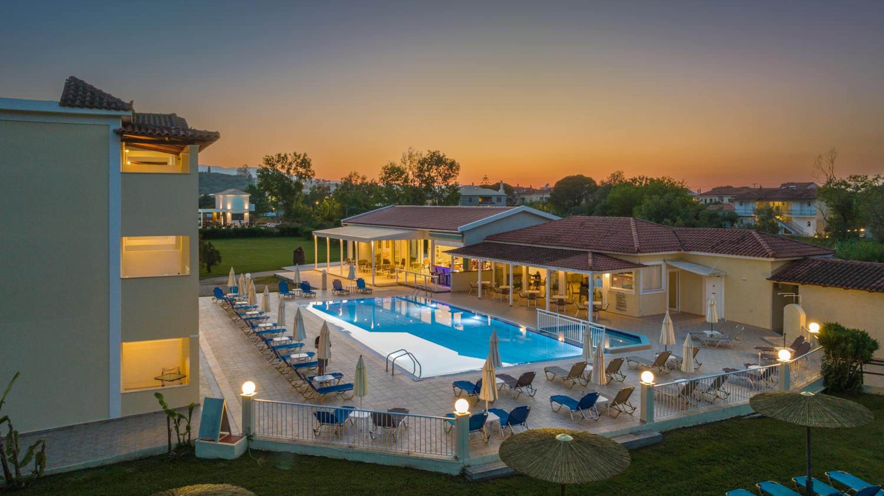 Resort is rustig gelegen en op loopafstand van het strand en het drukke centrum. Prima uitvalsbasis om met de auto Zakynthos te ontdekken.