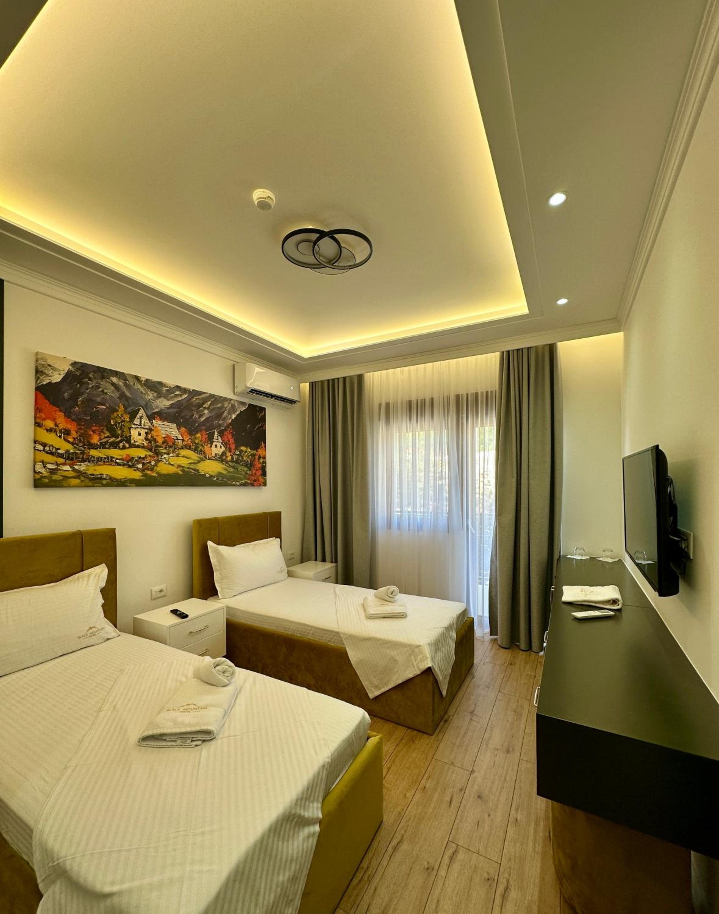 Experience breathtaking mountain views from our terrace, enjoy modern amenities like air conditioning and flat-screen TVs, and benefit from our convenient location near Visoki Dečani Monastery. Book your stay at BlackMountain Hotel now to enjoy a memorable getaway in Bajram Curri.