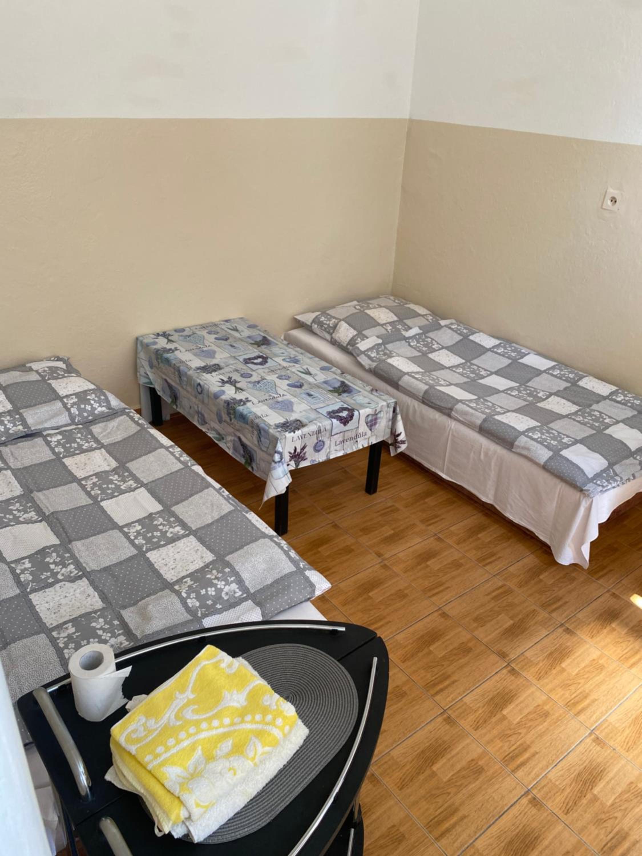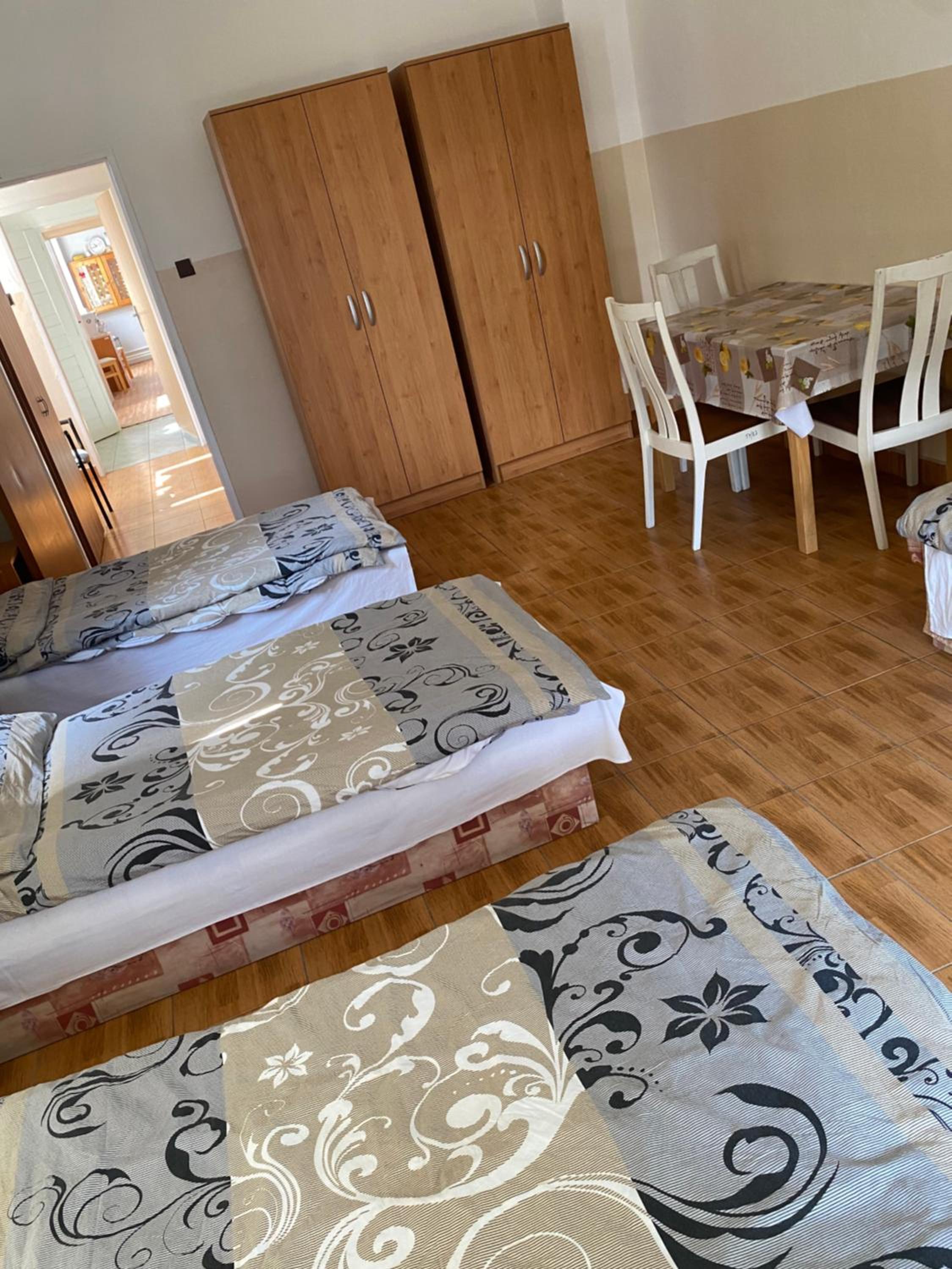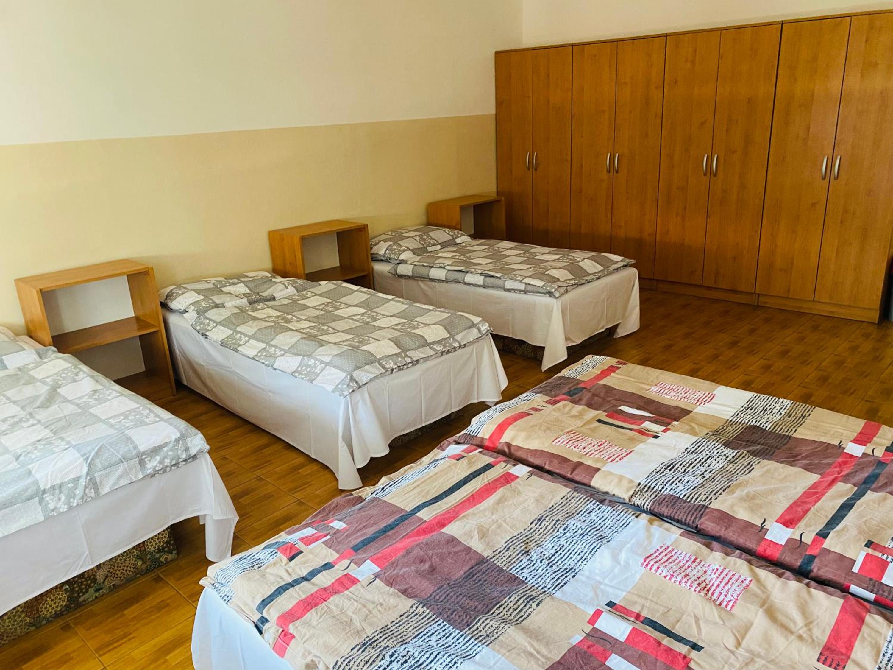 Az ágyak fekvőbetéteinek egy része már cserére szorulna. A négy szobánkból kettő egymásból nyílt, ami a folyosókon elhelyezkedő vécék éjszakai igénybevételekor kissé zavaró volt, a külső szoba ajtaja műanyag kulccsal volt "zárható".
