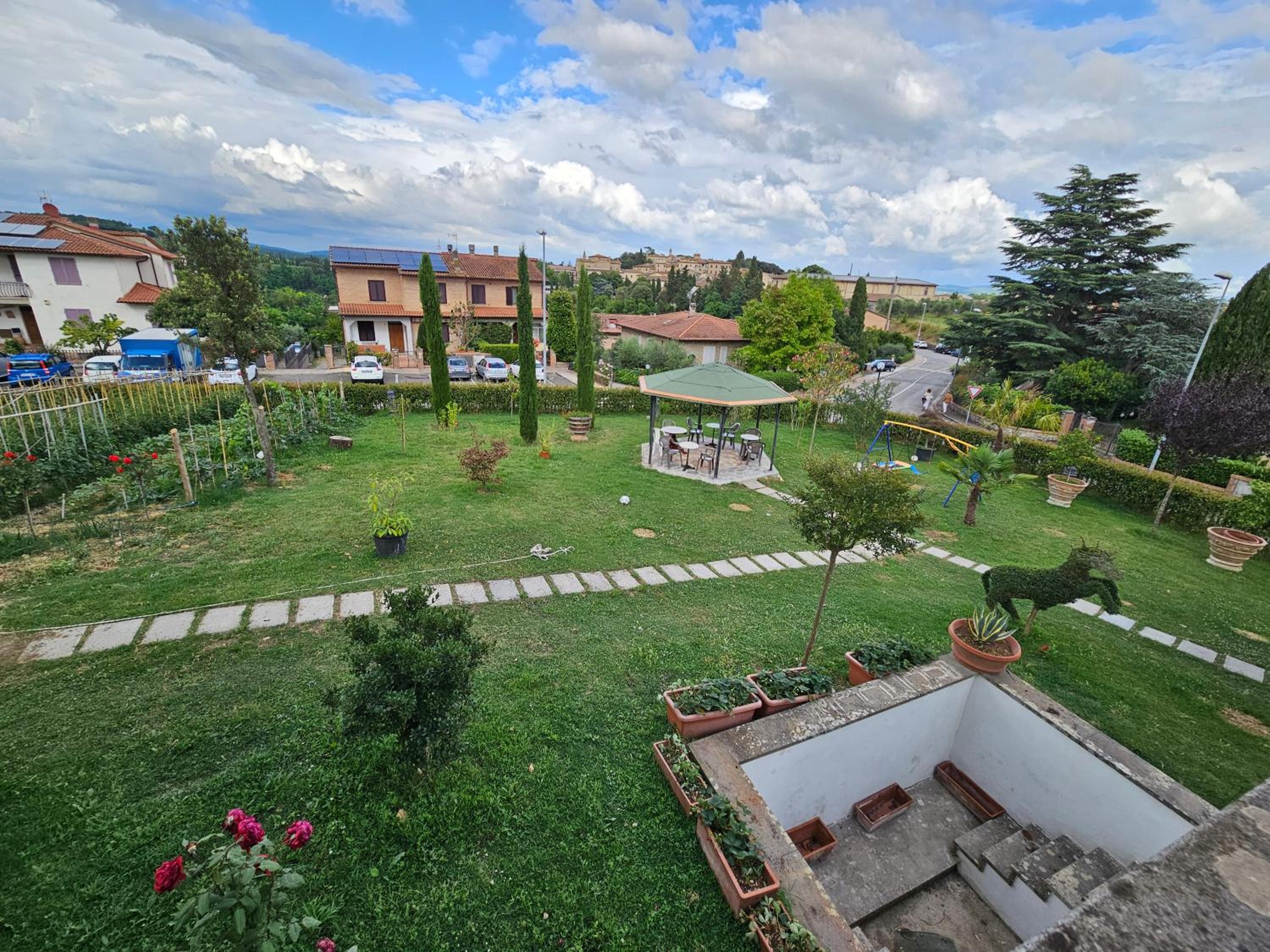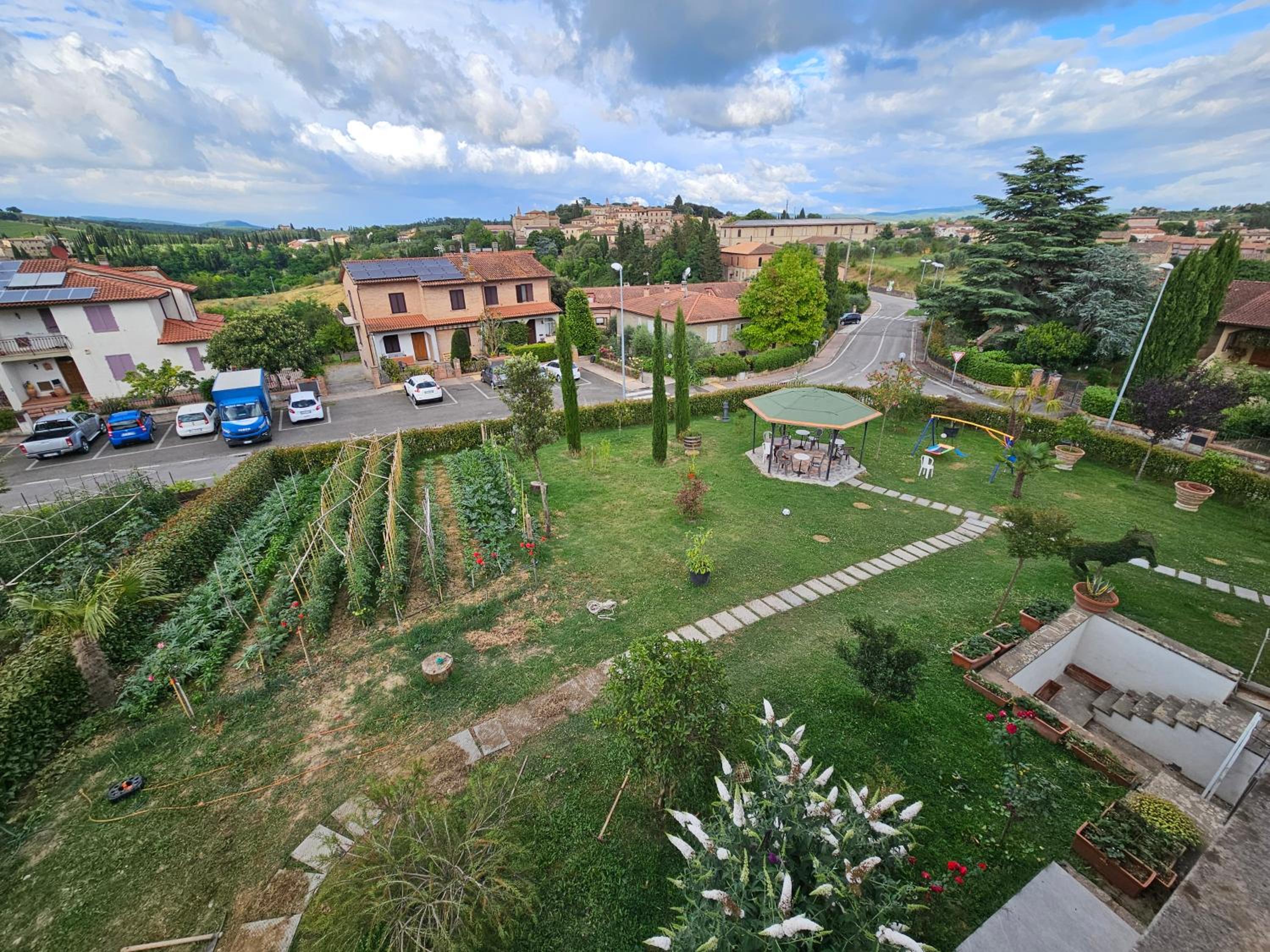 This property is located on a quiet street with street parking. It’s a short drive from Siena and there is a pizzeria and convenience store a short walk away. Our host was fantastic.