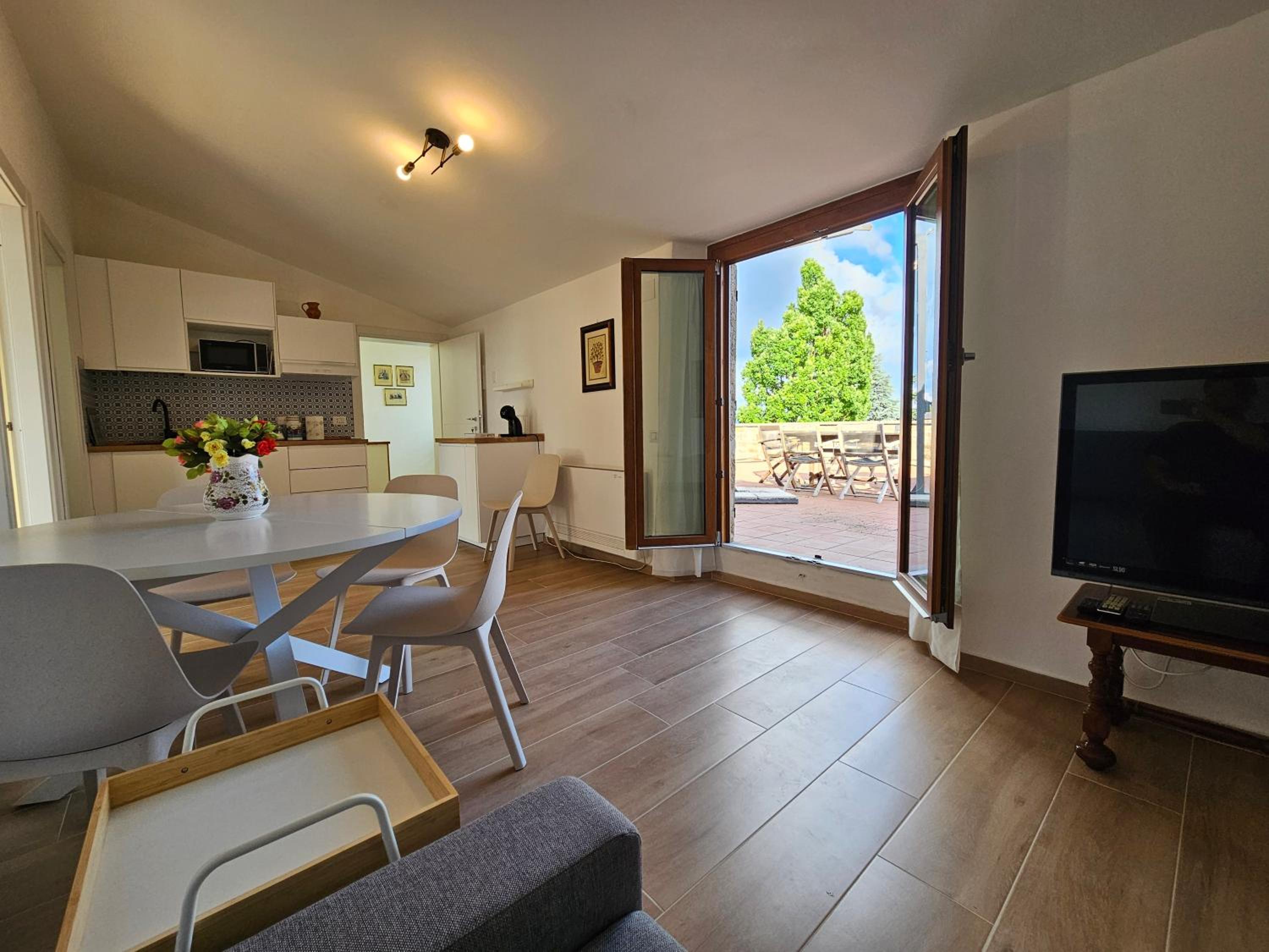 Localisation is great to visit Tuscany and the village close to the appartment is very nice and provides everything you need. The appartment is big, very functional, fully equipped. Huge terrace Wichelen a magical view on tuscan countryside. The place was super clean and the owner is very nice and welcoming.